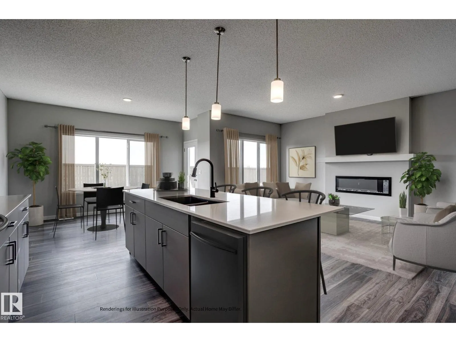 Built by Sterling Homes, this front-attached home in Edgemont Place blends modern comfort with thoughtful design in a west-end community rich in parks and trails. Triple-pane windows and 9â ceilings brighten the main floor, where a foyer leads to a 3-piece bath and versatile den. The open kitchen features quartz counters, island seating, upgraded cabinetry, tile backsplash, chimney hood fan, and spice kitchen with sink. Upstairs offers a bright primary suite with 5-piece ensuite and walk-in closet, plus a bonus room, full bath, laundry, and three bedrooms. Complete with electric fireplace, side entrance, double garage, and basement rough-ins. (id:27476)