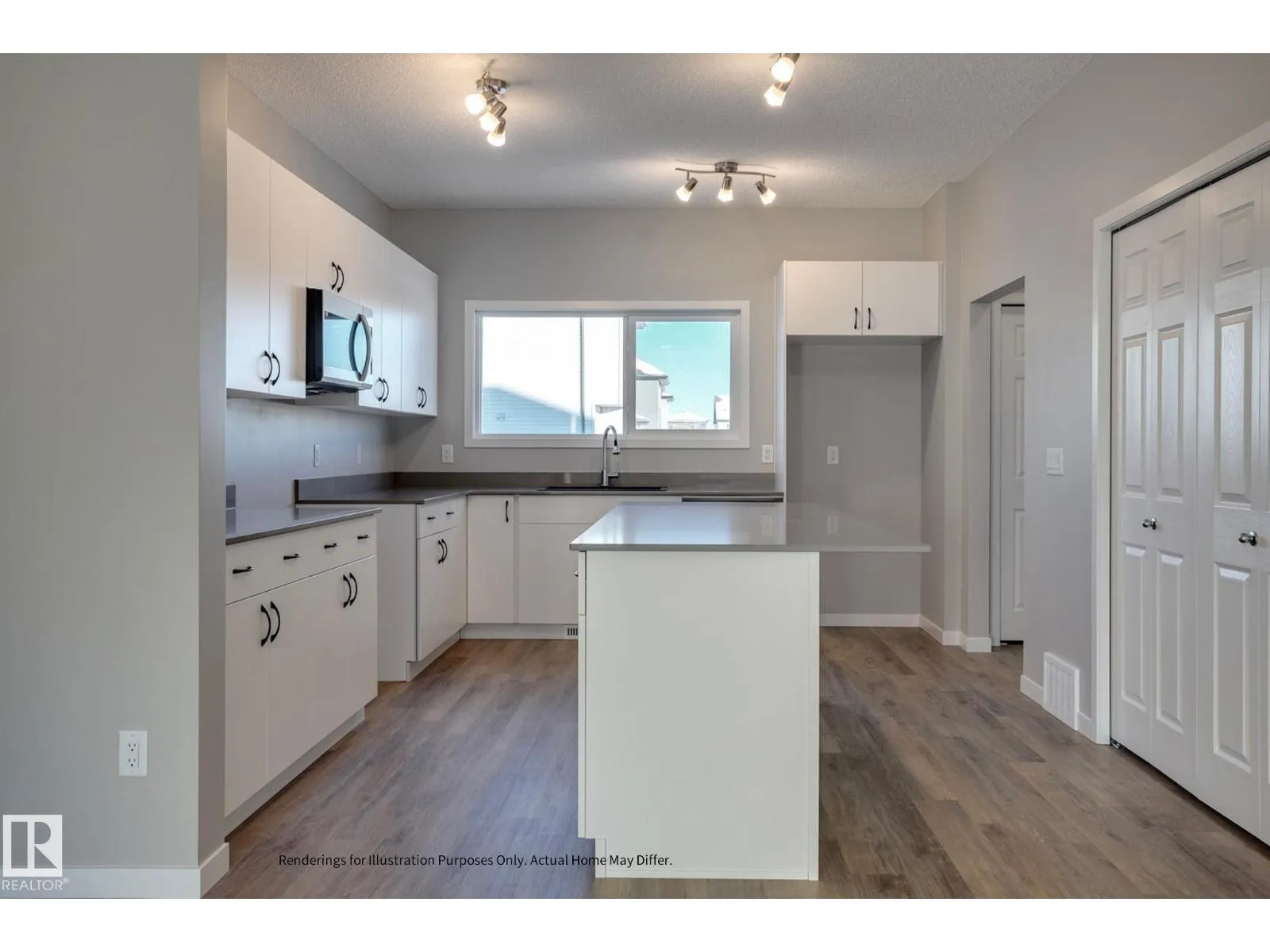 Built by Sterling Homes, this bright laned home in McConachie offers modern comfort near schools, parks, and amenities. Triple-pane windows and 9â ceilings fill the open main floor with light. The kitchen features quartz countertops, island seating, upgraded cabinetry, tile backsplash, soft-close drawers, and a spacious pantry, while a rear dining nook and half bath add function. Upstairs, the primary suite features a walk-in closet and a 3-piece en-suite, as well as two bedrooms, a full bath, laundry facilities, and a loft. Complete with vinyl plank flooring, side entrance, parking pad, and basement rough-ins. (id:27476)