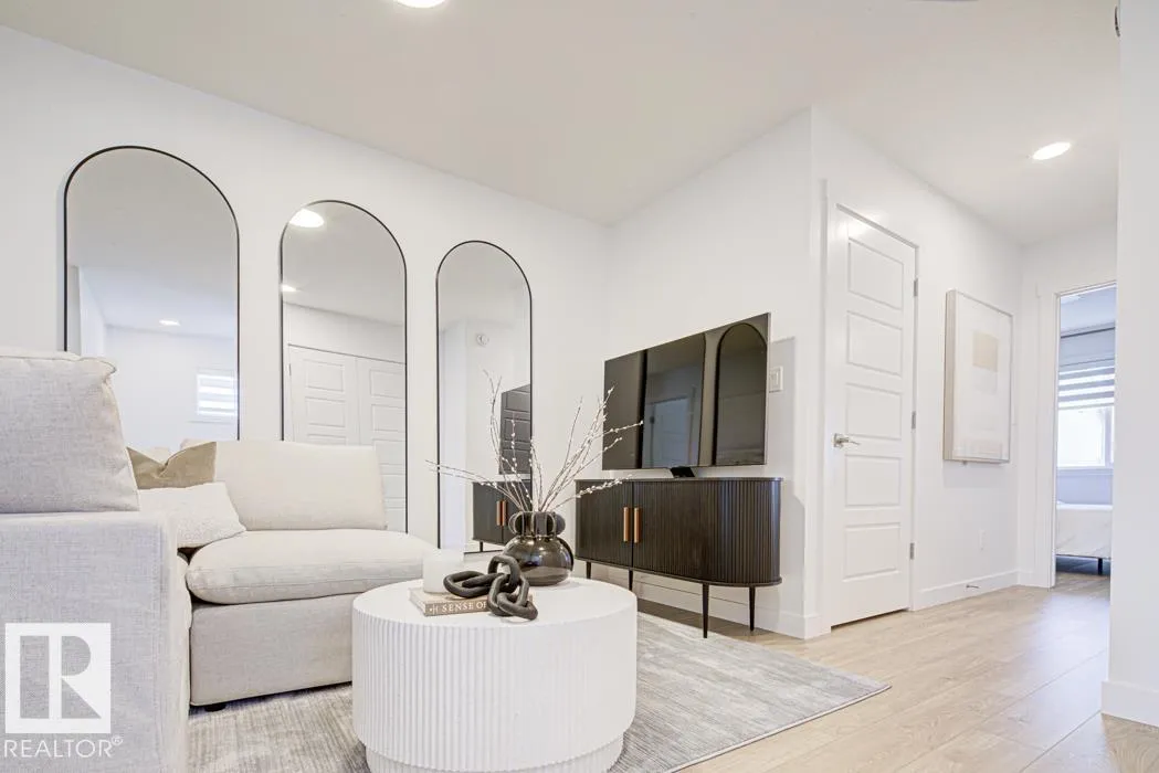 Discover the versatility of this Sterling Homes masterpiece in Edgemont Place, uniquely featuring a main-floor bedroom and full bathroom ideal for guests or a home office. Triple-pane windows and an open-concept layout ensure the interior is consistently bright and welcoming. The functional kitchen overlooks the backyard and is fully equipped with quartz countertops, a central island, and a corner pantry. The upper level is designed for family connectivity, offering a cozy bonus room for movie nights alongside a primary suite with a walk-in closet and private ensuite. Two additional bedrooms and upper-floor laundry provide ultimate convenience. This home is built for the future with luxury vinyl plank flooring, a separate side entrance, and a powered rear parking pad. Located in a prime west-end community near trails and new schools, it perfectly balances modern comfort with long-term flexibility. (id:27476)