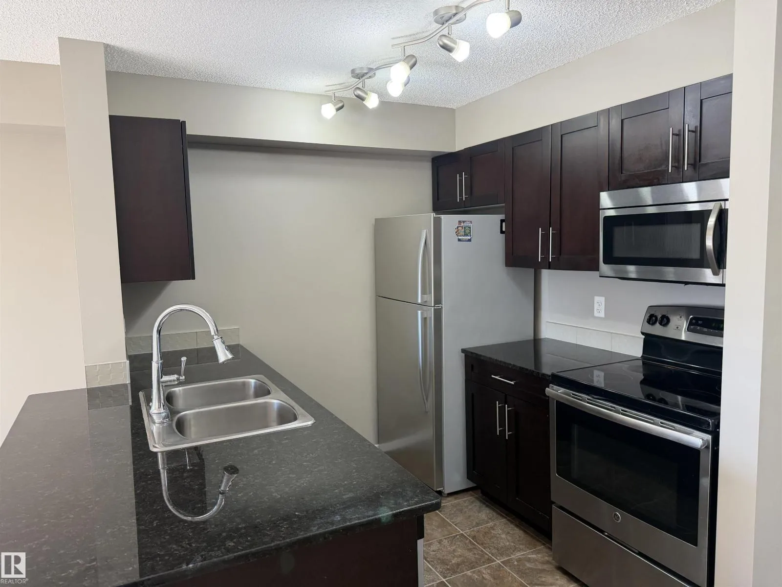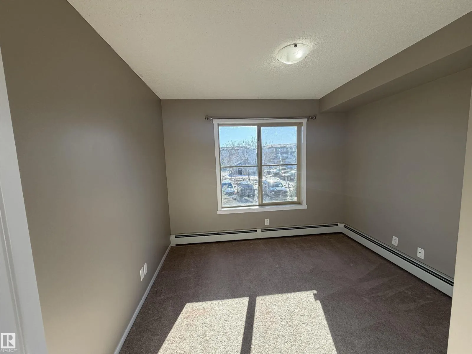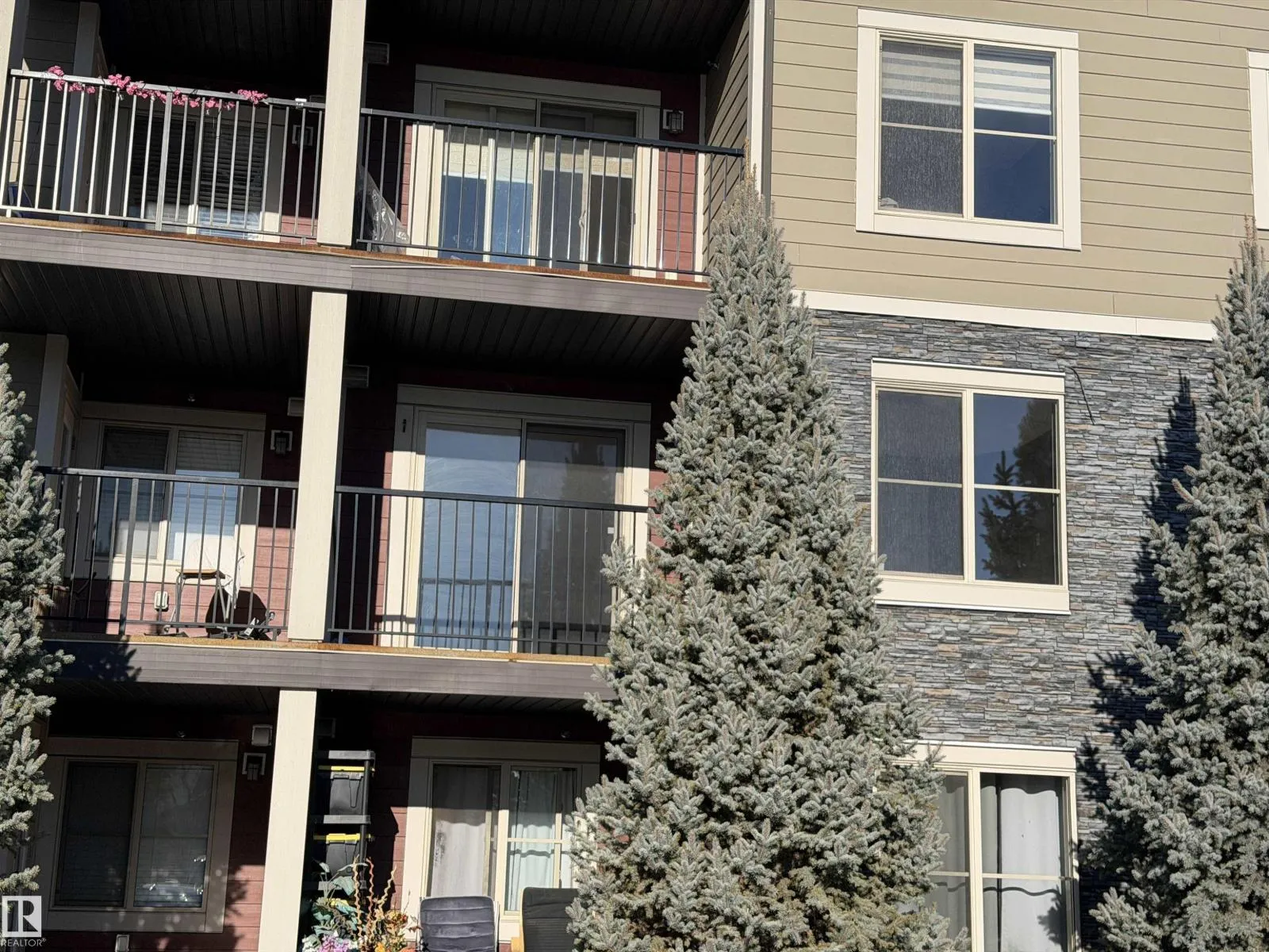 Don't miss out on this great opportunity to own 2 bedroom + 2 bathroom condo in the growing community of Chappelle. With an open layout & large patio doors leading out onto a covered balcony, there is no shortage of natural light here. The kitchen is modern featuring GRANITE countertops; stainless steel appliances & raised bar countertop. A large dining area separates the kitchen from the spacious living room - perfect for entertaining your family & friends! The 2 bedrooms are privately tucked away from the main living area & includes a large master bedroom featuring a full ensuite. Both bathrooms also have Granite countertops. The laundry room has front load washer and dryer with a good storage space. . It is also roughed-in for future Air Conditioning. Also features Titled UNDERGROUND Parking. Close to shopping; golf; parks; public transportation; Henday; walking distance to the new Don Getty K-9 school & more! Property was just painted and carpets has been washed. (id:27476)