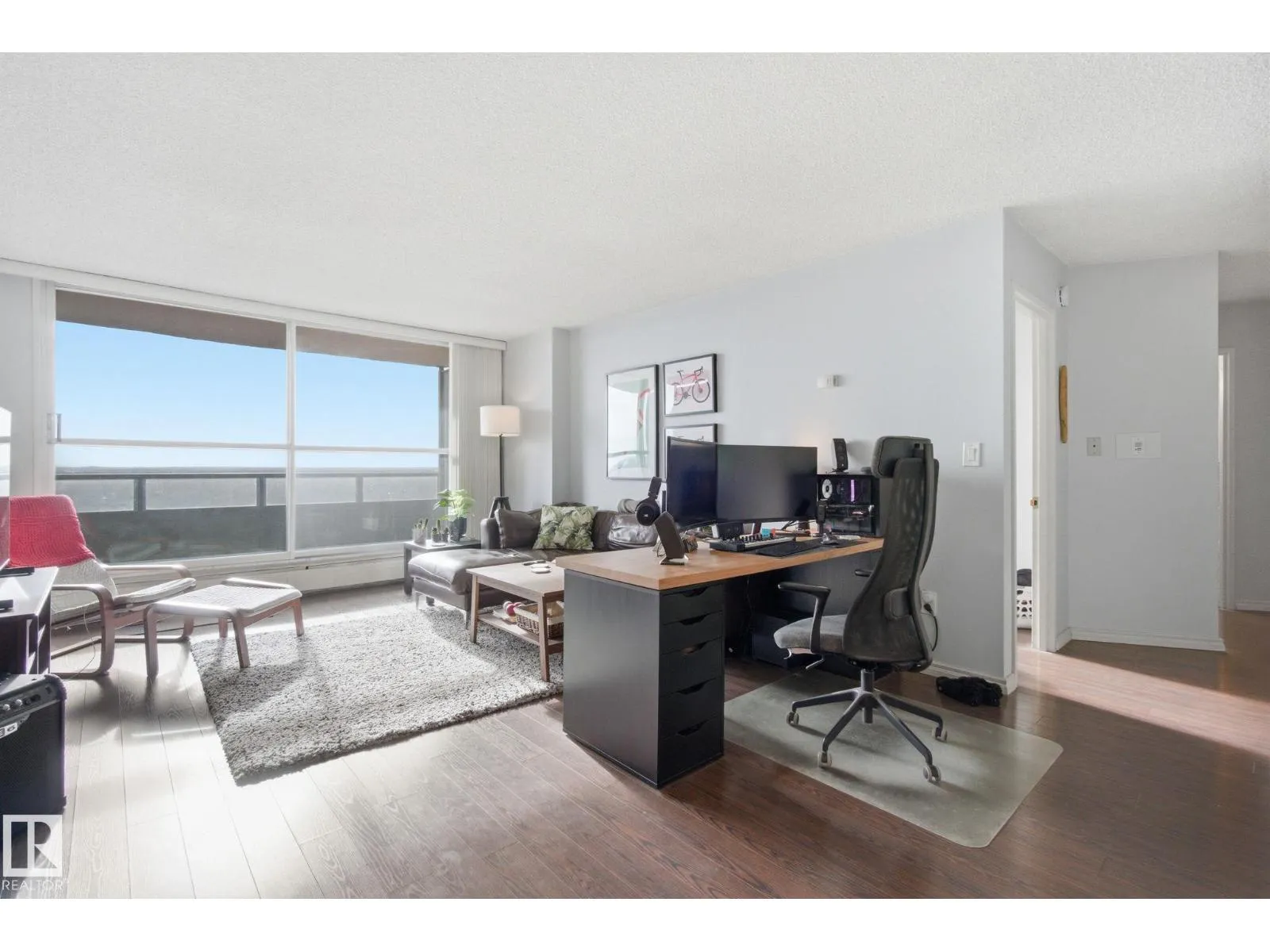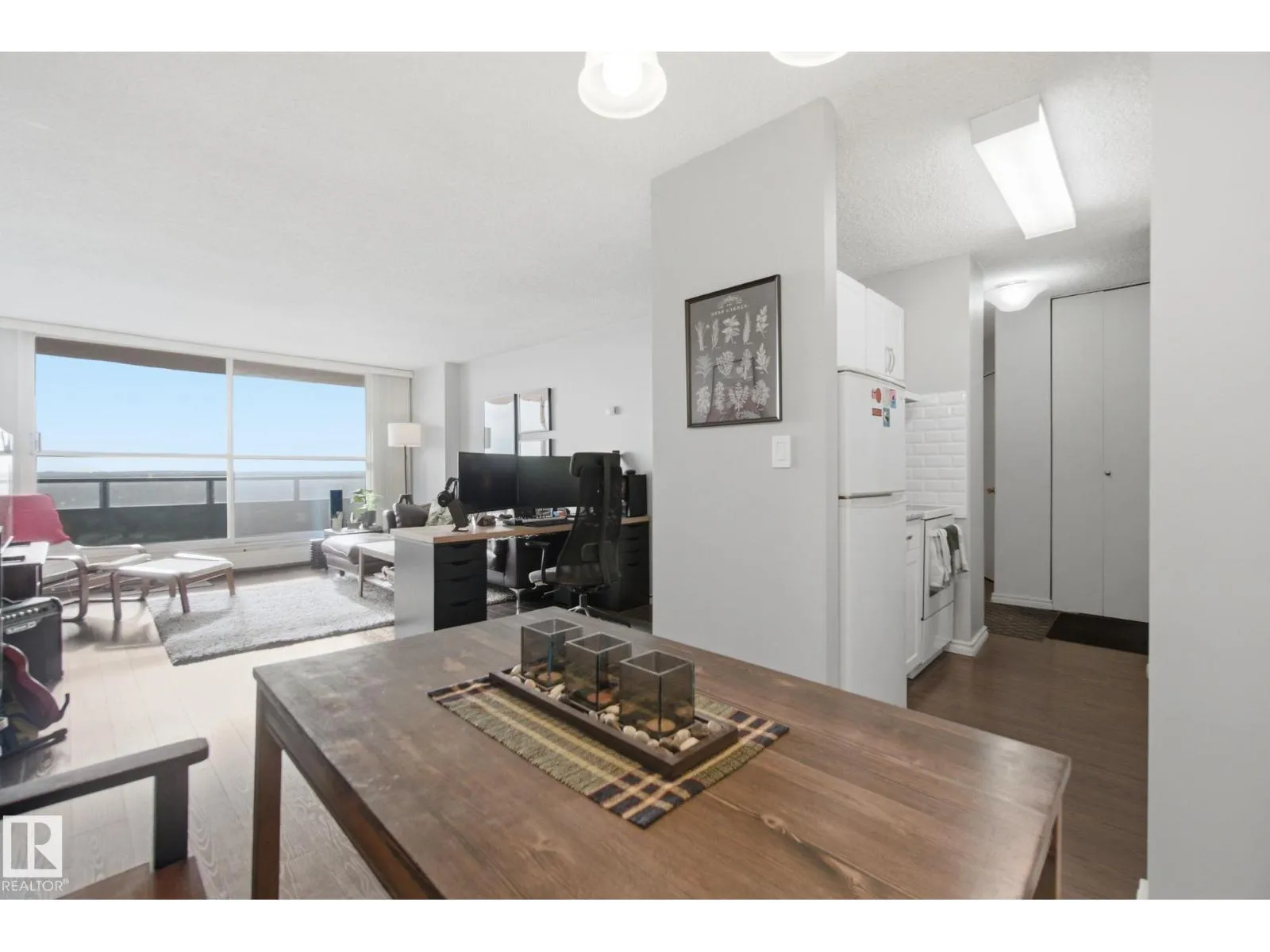 Spectacular south-facing views of Edmonton from this beautifully maintained 1-bedroom condo in prestigious Glenora. Freshly painted and spacious, this bright home features laminate flooring throughout, an oversized living room, and a generous dining area ideal for entertaining. The kitchen was stylishly renovated in 2021 with new cabinetry, modern backsplash, stove, and dishwasher. The large bedroom comfortably accommodates a king-sized bed and offers two ample closets. A 4-piece bath, sizeable front entry closet, and an exceptionally large in-suite storage roomâperfect for bikes and bulky itemsâadd outstanding functionality. This well-managed concrete building boasts premium amenities including a pool, sauna, fitness centre, games room, vending machines, and on-site management with extended hours. Condo fees include electricity, heat, and water for true worry-free living. Steps to transit and the future LRT, and just minutes to downtown, the River Valley, shopping, cafés, and restaurants. (id:27476)
