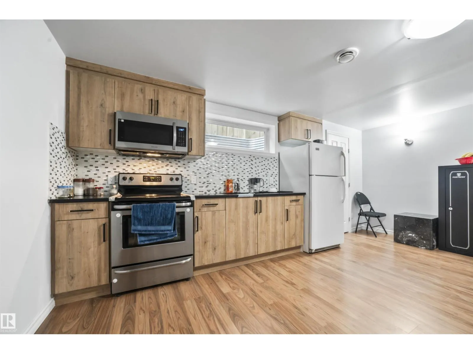 Backs onto a park in the vibrant community of Ellerslie, this upgraded 5-bedroom, 3.5-bath home offers modern design, space, and flexibility. The main floor features a bright open-concept layout with expansive windows, a stylish living area, and a contemporary kitchen with stainless steel appliances, granite countertops, and direct access to a large deck overlooking the fully landscaped yardâideal for entertaining. Upstairs includes three generously sized bedrooms, a sun-filled bonus room, and two full bathrooms, highlighted by a private primary retreat with a walk-in closet and sleek ensuite. The fully finished basement adds exceptional value with a second kitchen, two additional bedrooms, and a full bathroom, making it perfect for extended family or guests. Additional highlights include a double attached garage, brand-new driveway, and a prime location steps from schools, playgrounds, shopping, and public transit. This move-in-ready home delivers comfort, style, and an unbeatable park-backing location! (id:27476)
