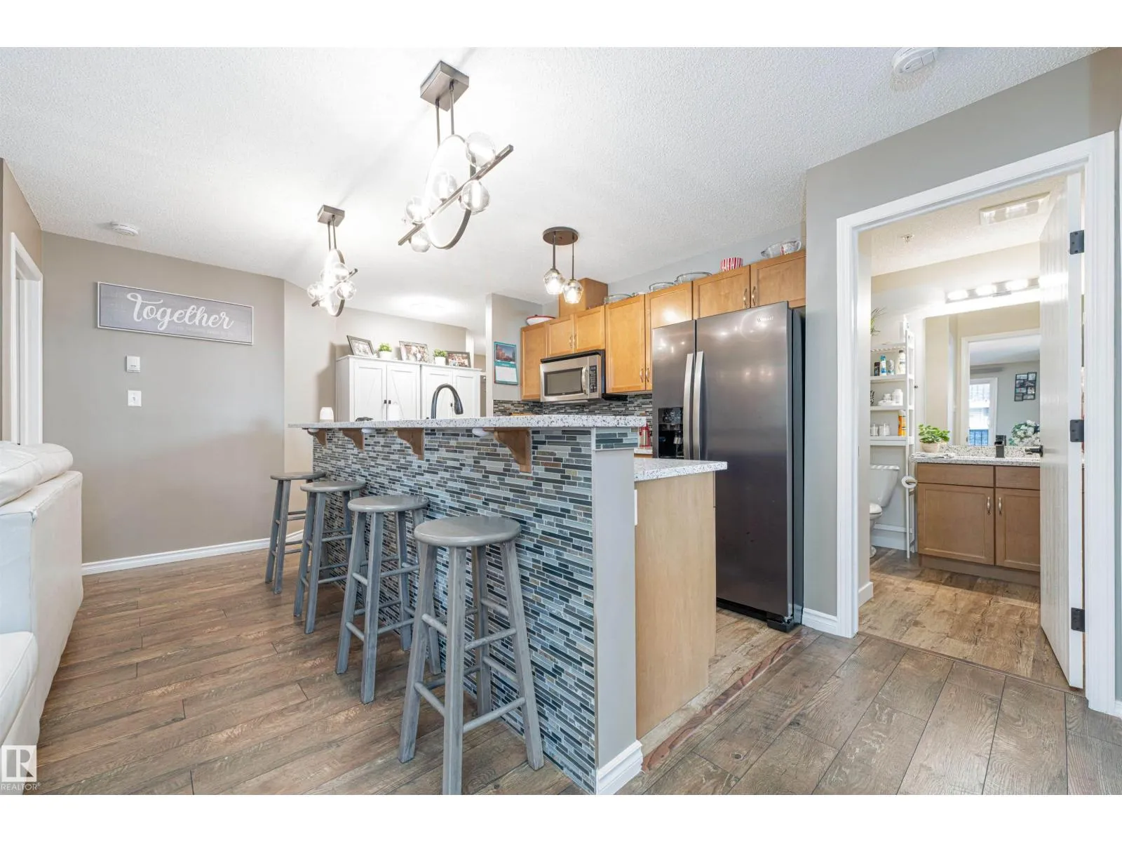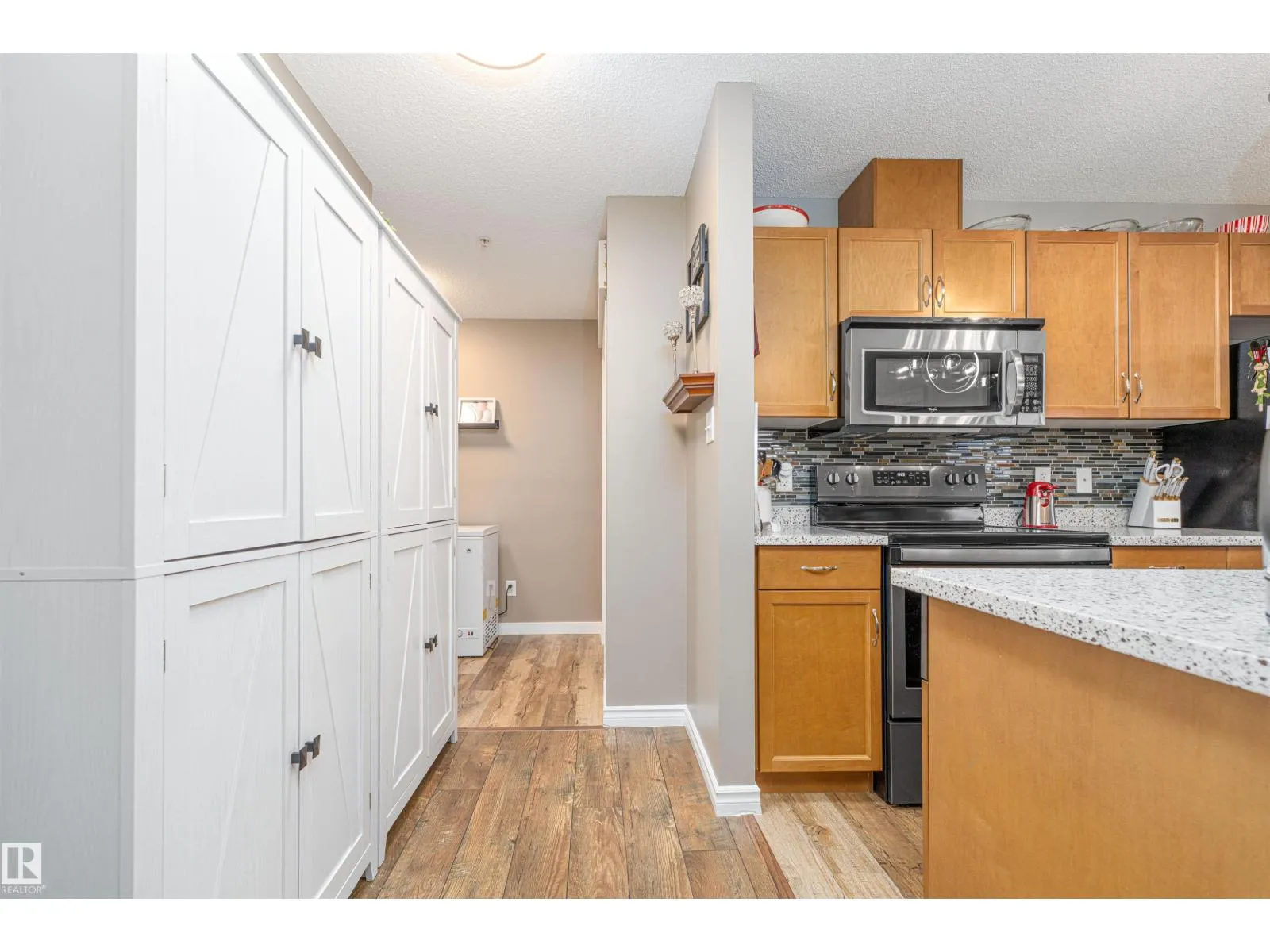 Do not miss out on this spacious, ground floor, corner unit in the very well kept low rise condo complex called The Avenue. This 2 bedroom home includes a master bedroom with walk through closet and 4 piece ensuite. The tastefully decorated open concept kitchen, living room and dining area separates the second bedroom from the master for privacy. A new washer and dryer are included in a larger laundry room with space for storage. This beautifully decorated home boast many upgrades including new appliances, paint 2025, flooring throughout 2017, kitchen and bathroom reno 2020. Extra large patio with privacy fencing surrounds this home for sheltered evenings outside. Close to Hermitage Park. Easy and quick access to Victoria Trail and the Yellowhead. Condo fees are going down!! (id:27476)