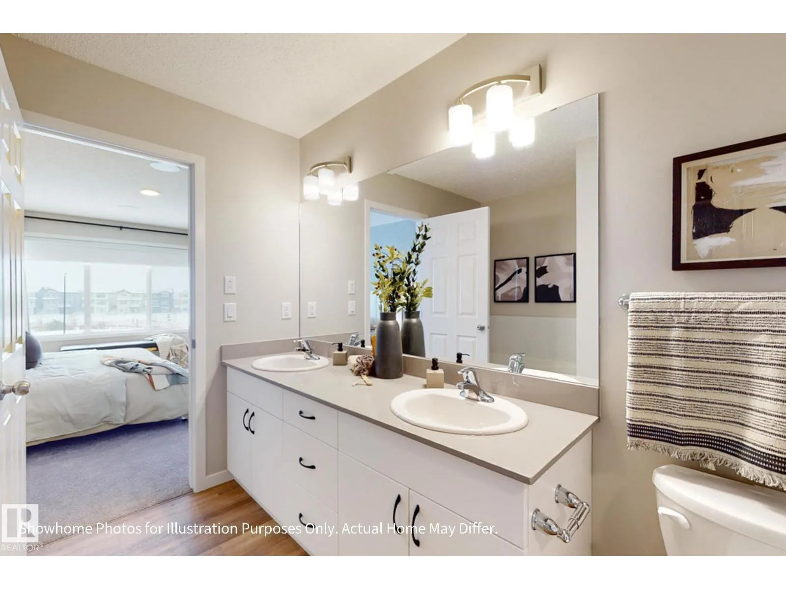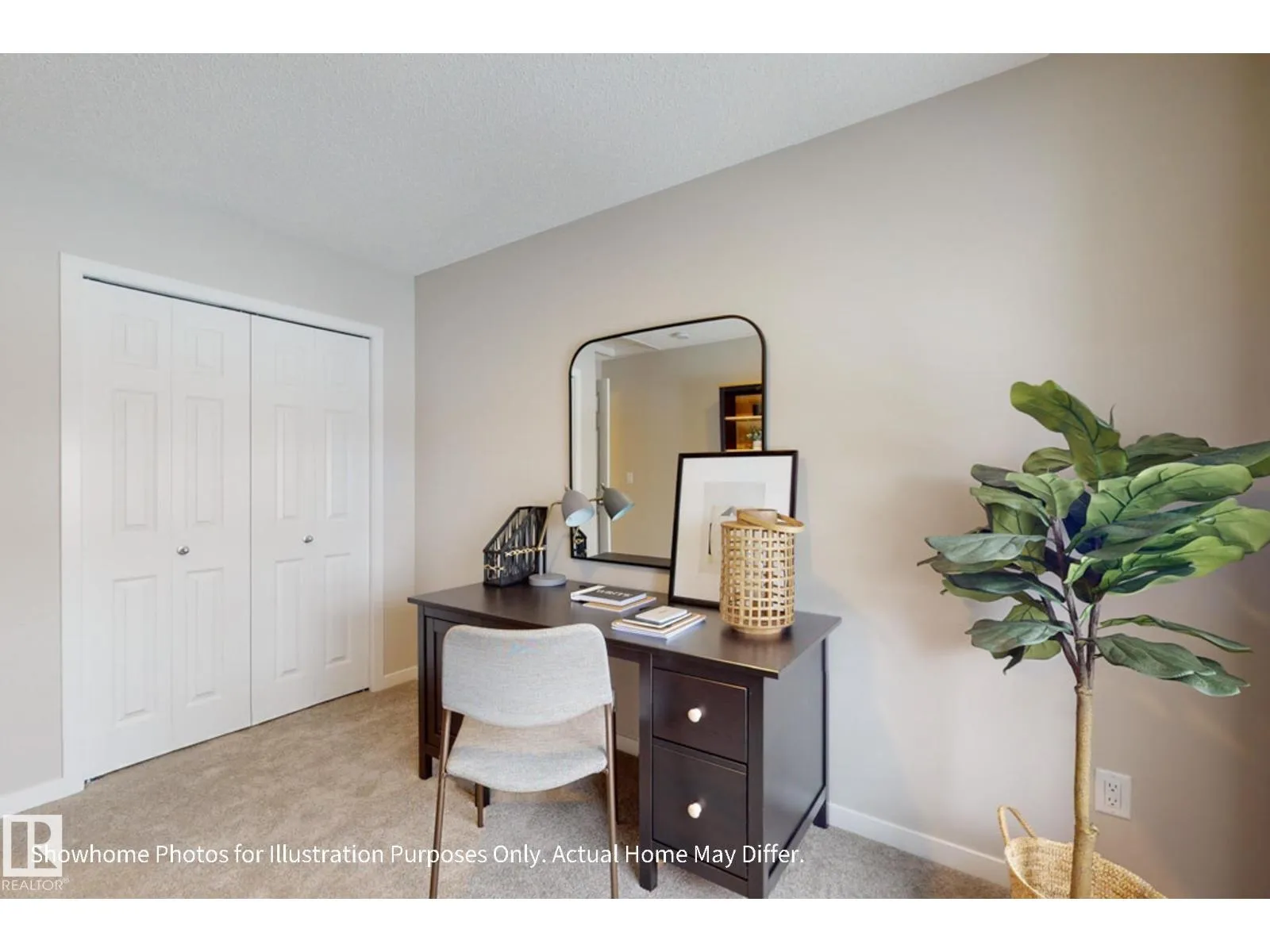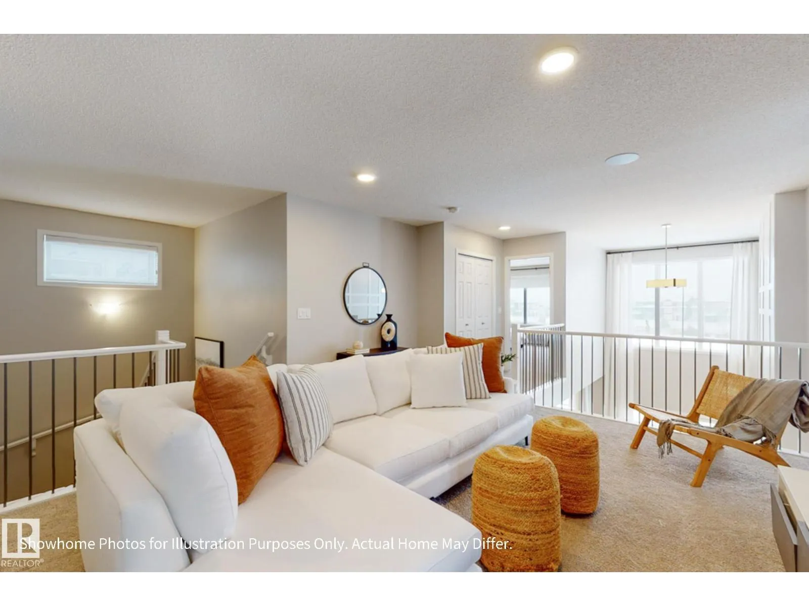 Built by Sterling Homes, this beautifully finished front-attached home in McConachie offers bright, modern living in a family-focused community known for its nearby schools, parks, and convenient amenities. Triple-pane windows and 9â ceilings fill the main floor with natural light, creating an inviting atmosphere from the moment you enter. A versatile den with a walk-in closet adds flexibility for work or guests, while the stylish kitchen features quartz countertops, a spacious island with seating, a chimney hood fan, and ceiling-height cabinetry. The great roomâs electric fireplace and large windows make the space warm and welcoming, with a garden door leading to the backyard for easy indoor-outdoor living. Upstairs, the primary suite offers a spa-like 5-piece ensuite with double sinks and a soaker tub. A central bonus room provides a second living area, while three more bedrooms and upper-floor laundry complete the layout. With a side entrance and double garage, this home is perfect. (id:27476)