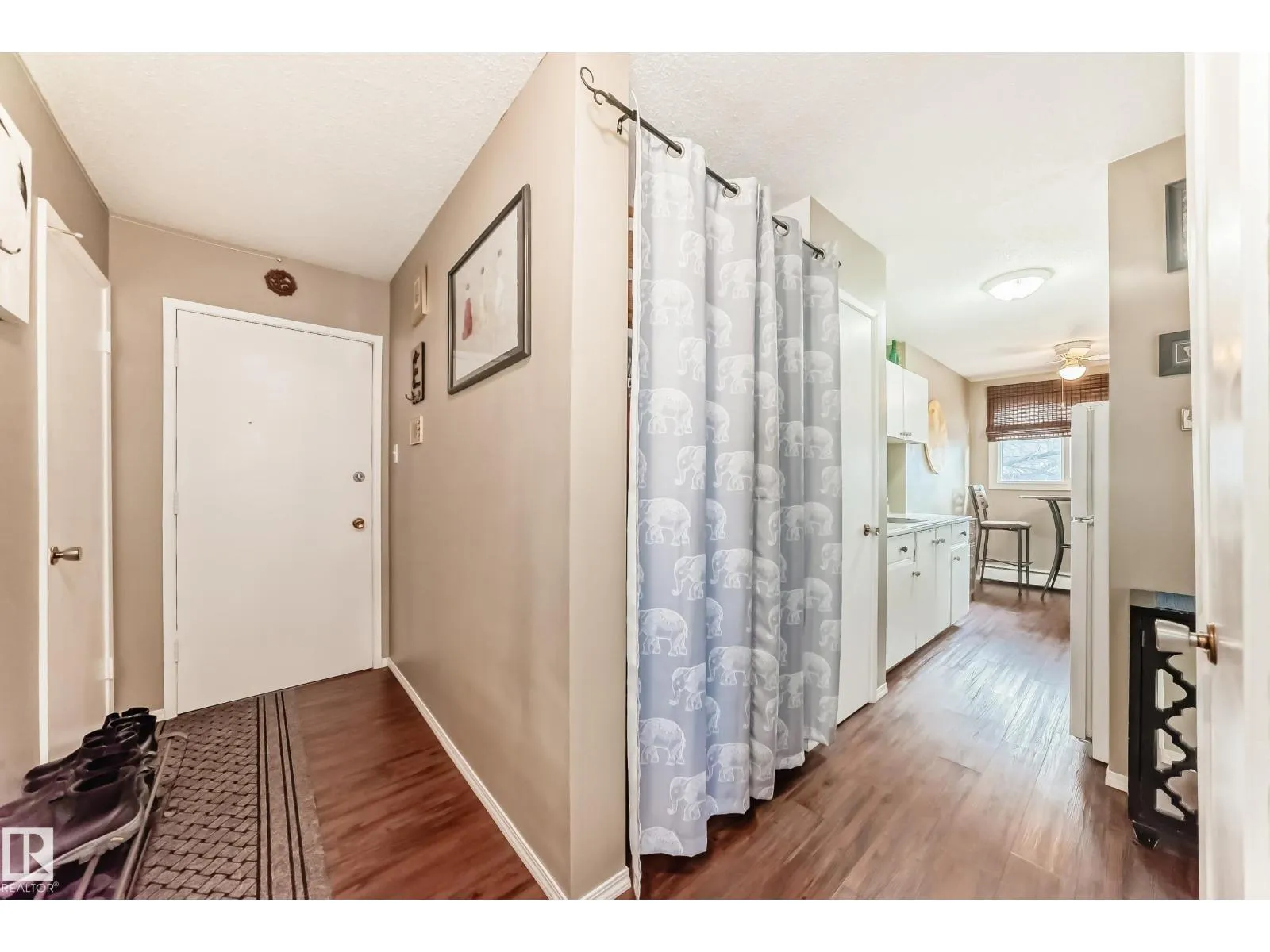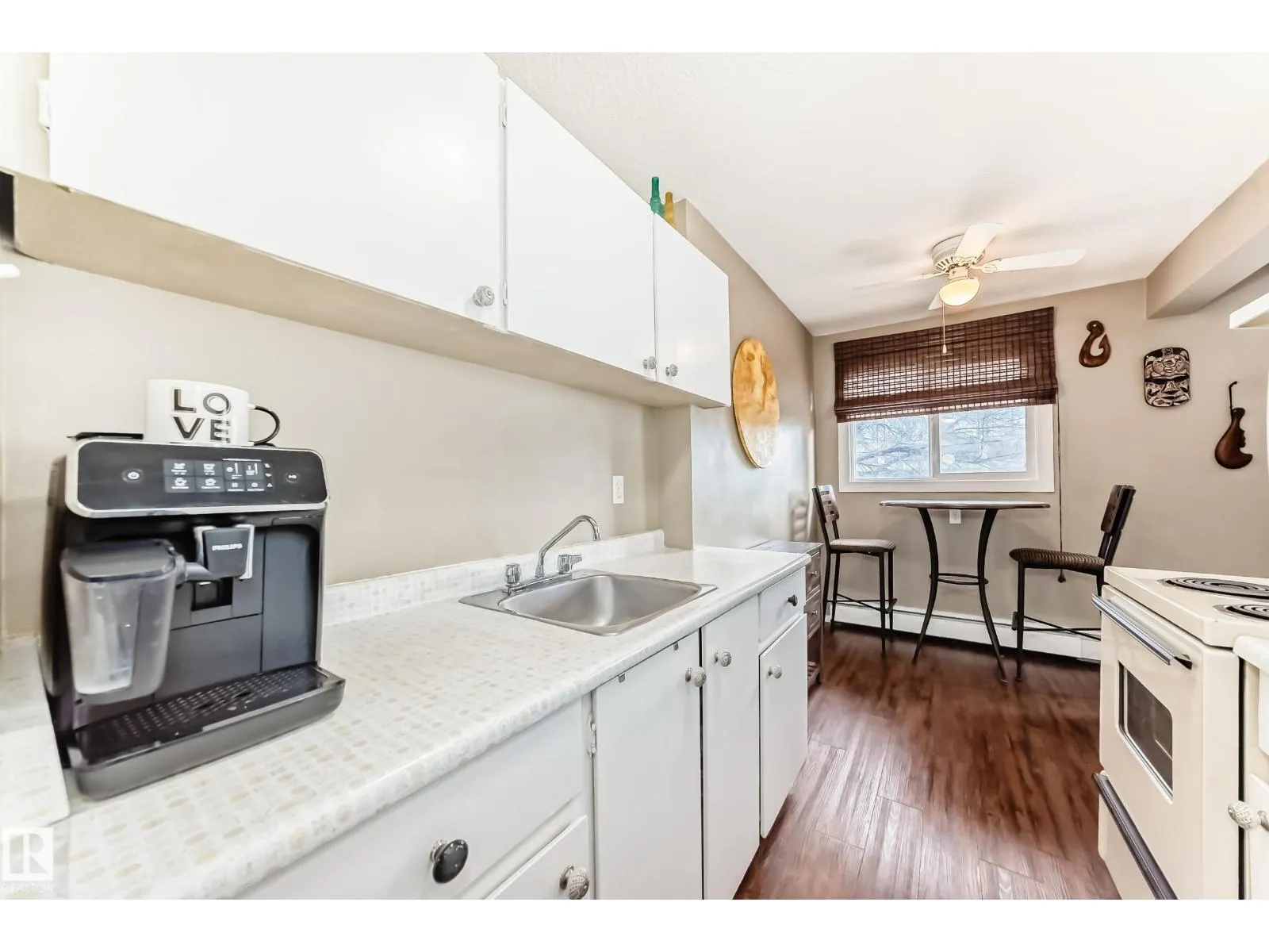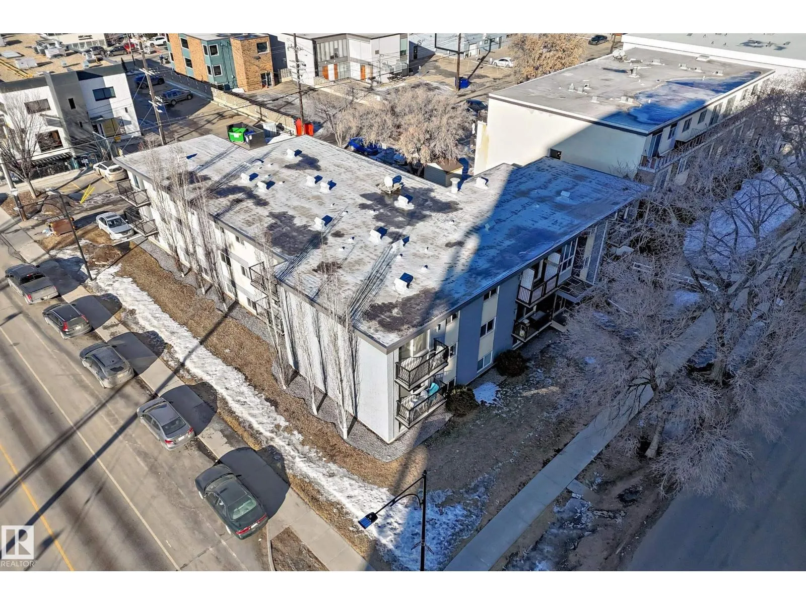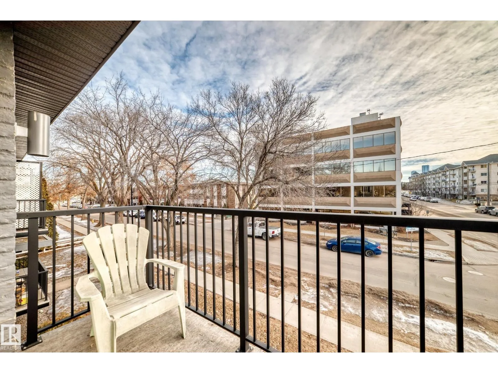 Top-floor 1-bedroom condo in a prime, walkable location just steps to 124 Street shops, restaurants, and the Brewery District, An ideal opportunity for professionals or investors seeking low-maintenance living and strong rental appeal. With only one shared wall, the unit offers excellent privacy and quiet enjoyment. Thoughtfully updated with luxury vinyl plank flooring, newer windows, patio door, and new balcony. A modernized bathroom with new tub and clean, functional finishes throughout. The efficient kitchen comes fully equipped, and convenient in-suite storage adds everyday practicality. Situated in a well-managed, pet-friendly building featuring refreshed common areas, new paint and carpet, an upgraded boiler, and a newer roof for long-term peace of mind. Powered parking with an outlet directly connected to the suite, perfect for an electric or hybrid vehicle. Move-in ready and turnkey, this property is equally suited as a comfortable home or a reliable income-generating rental. (id:27476)