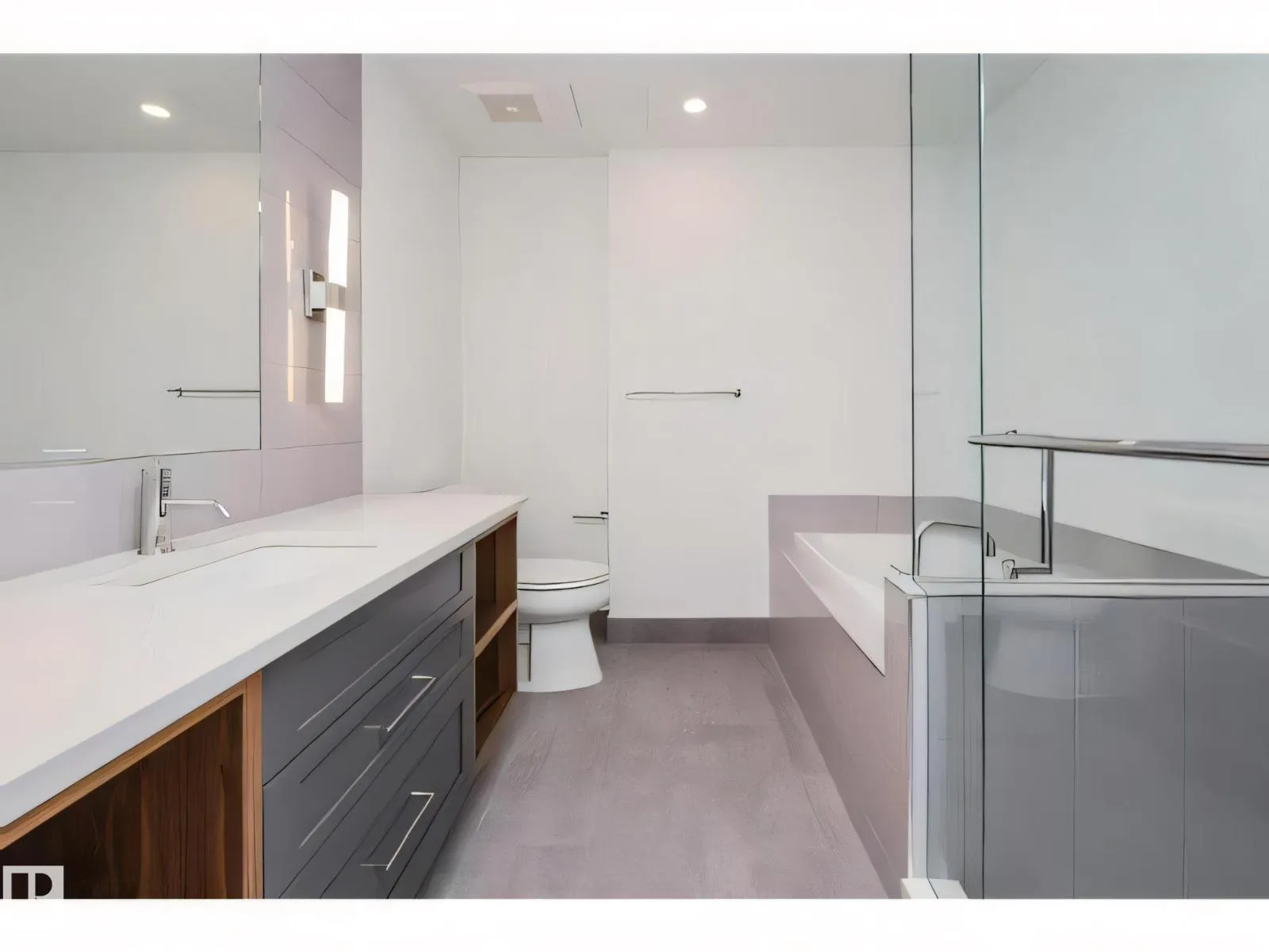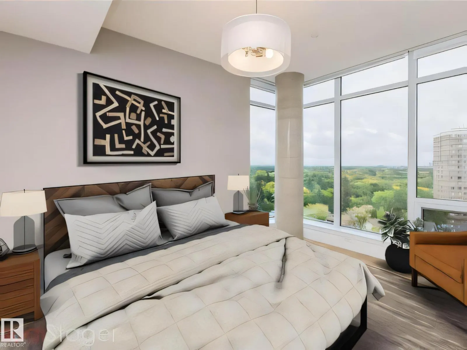 Welcome to elevated living at West Block! Perched on the 9th floor, this exquisite 2-bedroom, 2-bath condo showcases sweeping city views through dramatic floor-to-ceiling windows and soaring ceilings that flood the space with natural light. From breathtaking winter sunrises to peaceful evenings on the expansive balcony, every moment feels extraordinary. Enjoy the convenience of two titled parking stalls and a titled storage unit. Residents indulge in premium amenities, including a state-of-the-art fitness centre, boardroom, stylish party lounge, outdoor sundeck with a cozy fire table, dog run, and a private guest suite for visitors. Ideally located steps from top restaurants, boutique shopping, and the river valley, West Block offers the perfect balance of sophistication, comfort, and urban convenience. Some photos are virtually staged** (id:27476)