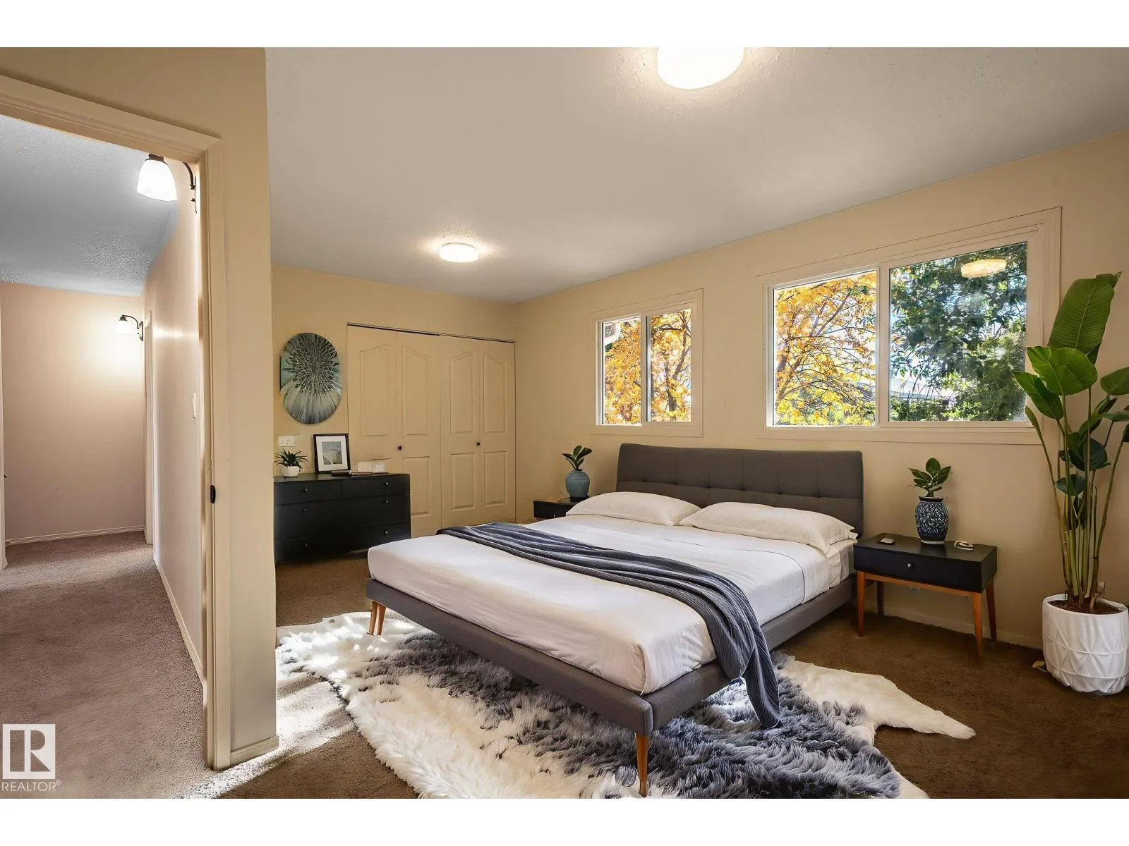 Beautifully renovated 3 bedroom townhouse in Sifton Park in NE Edmonton. The oversized primary bedroom could easily be divided to make 4 full bedrooms upstairs if wanted. This condo is nearly 20% larger than most in the complex, a rare opportunity. Fully renovated with new appliances, new bright kitchen, renovated bathrooms, new flooring, and fresh paint throughout. Includes 1.5 bathrooms, an unfinished basement, and lots of low maintenance upgrades. The private backyard is enclosed in vinyl fencing and the entire building has been well renovated, including vinyl windows and newer roofs. Sifton Park Ravines is a pet friendly condo association and backs onto the field of Sifton Elementary School. Your kids can walk to school while you enjoy the peace and tranquility of this corner end unit renovated townhouse. (id:27476)