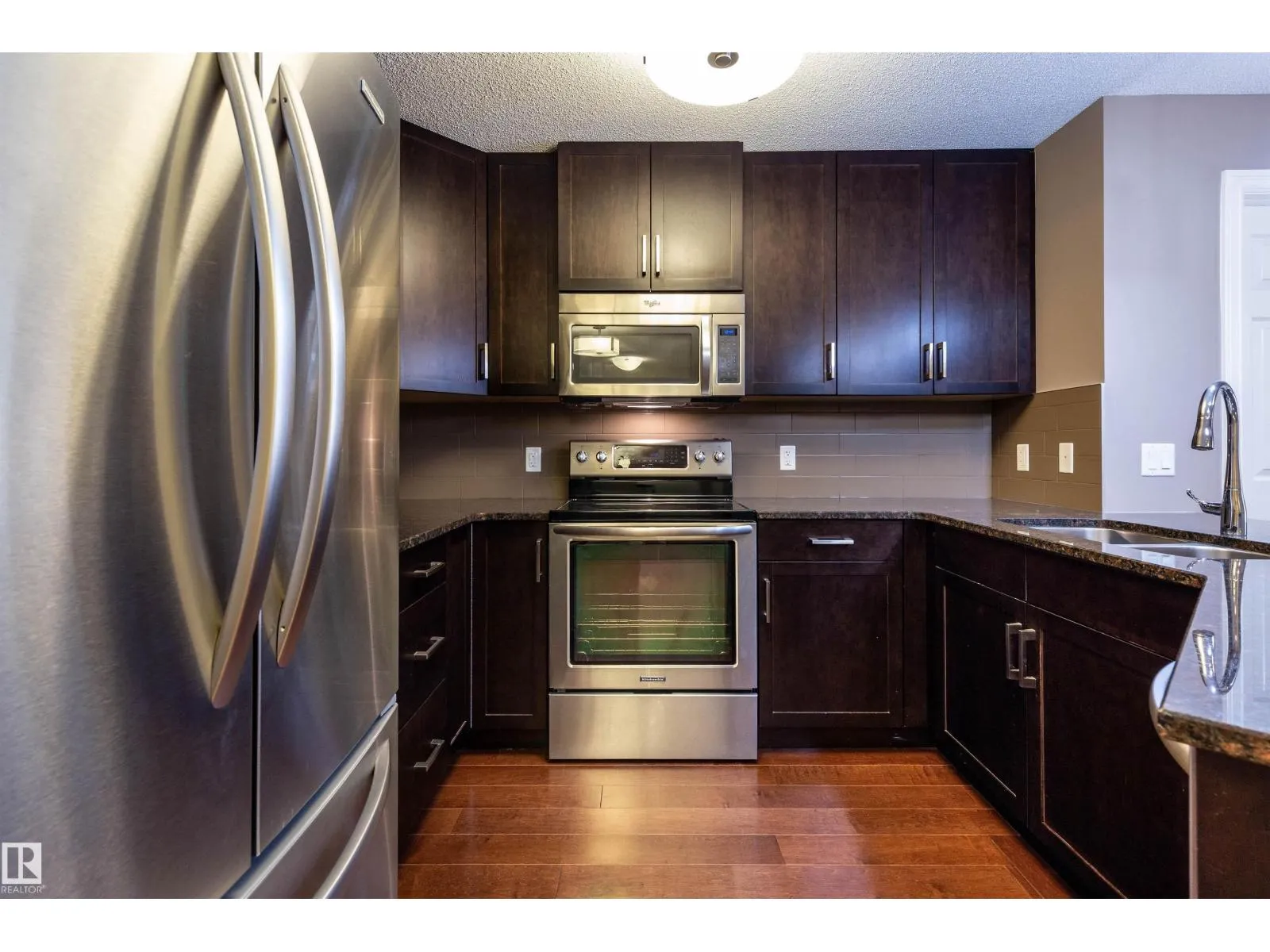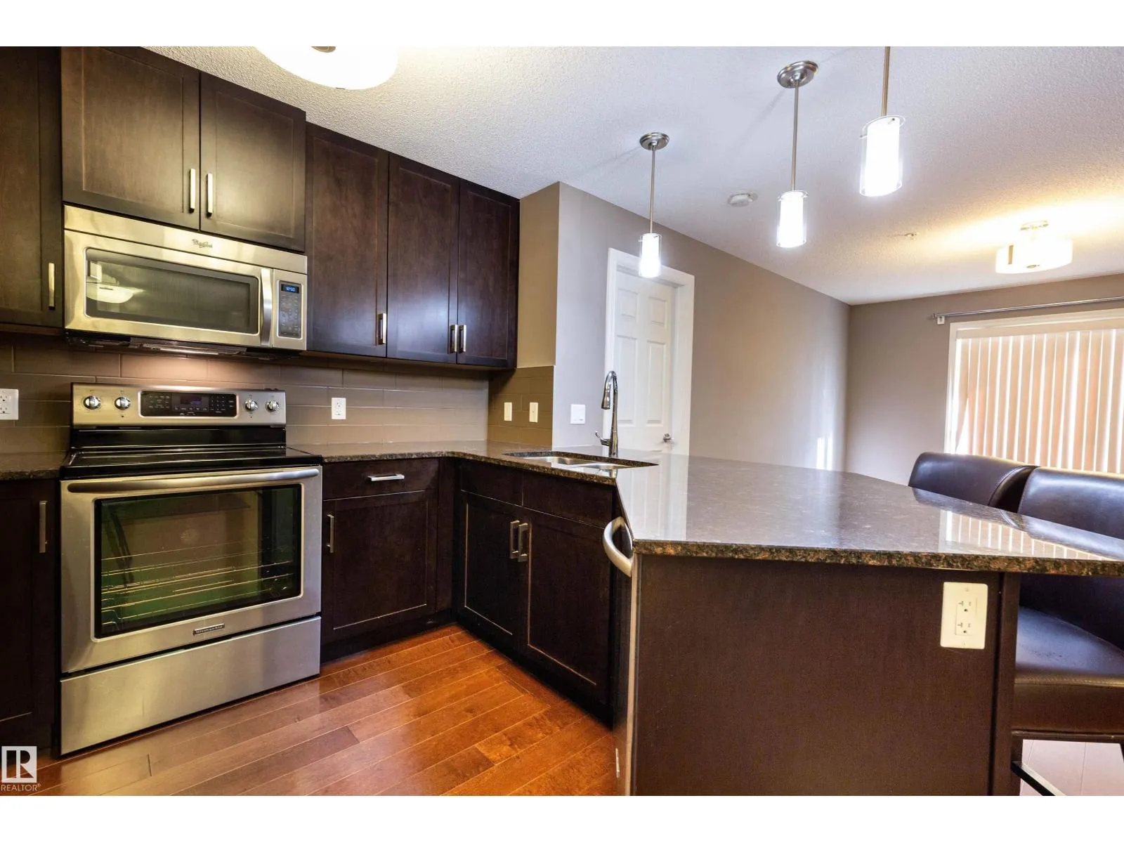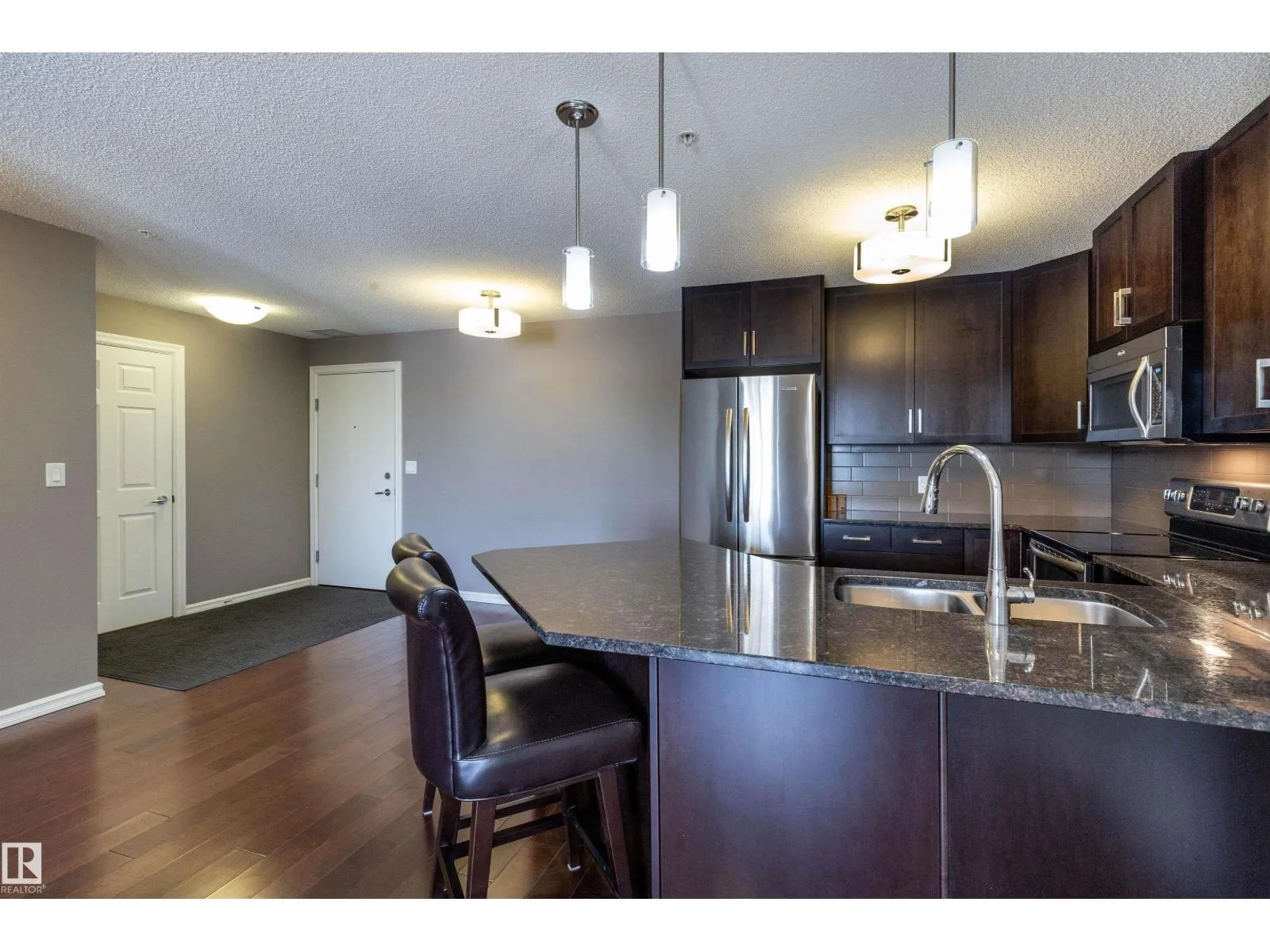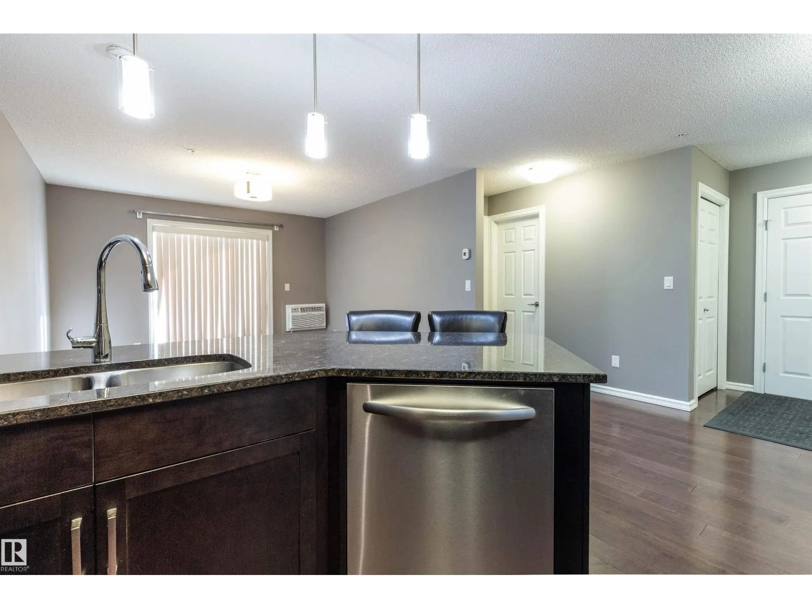 OPEN CONCEPT....2 BED/2 FULL BATHS...GREAT LOCATION...HARDWOOD FLOORS...CLOSE TO EVERYTHING...~!WELCOME HOME!~...Well managed Aspen Meadows complex, in the community of Larkspur! Living/dining/kitchen has hardwood flooring. The kitchen comes w/stainless steel appliances, to-ceiling cabinets & granite countertops, and eating bar. The Primary is well-sized, offers ample closet space, & 3pc en-suite. Another spacious bedroom that can be used as home office as well! Enjoy the convenient in-suite laundry w/storage, as well as another full 4 pce bath. This unit includes a tiled underground parking stall. Well-maintained complex features an exercise, social room, and good amount of visitor parking too! Perfect for the first time buyer, empty nester, or investor! Close to shopping, walking/bike trails, transit, and Whitemud & Anthony Henday. (id:27476)