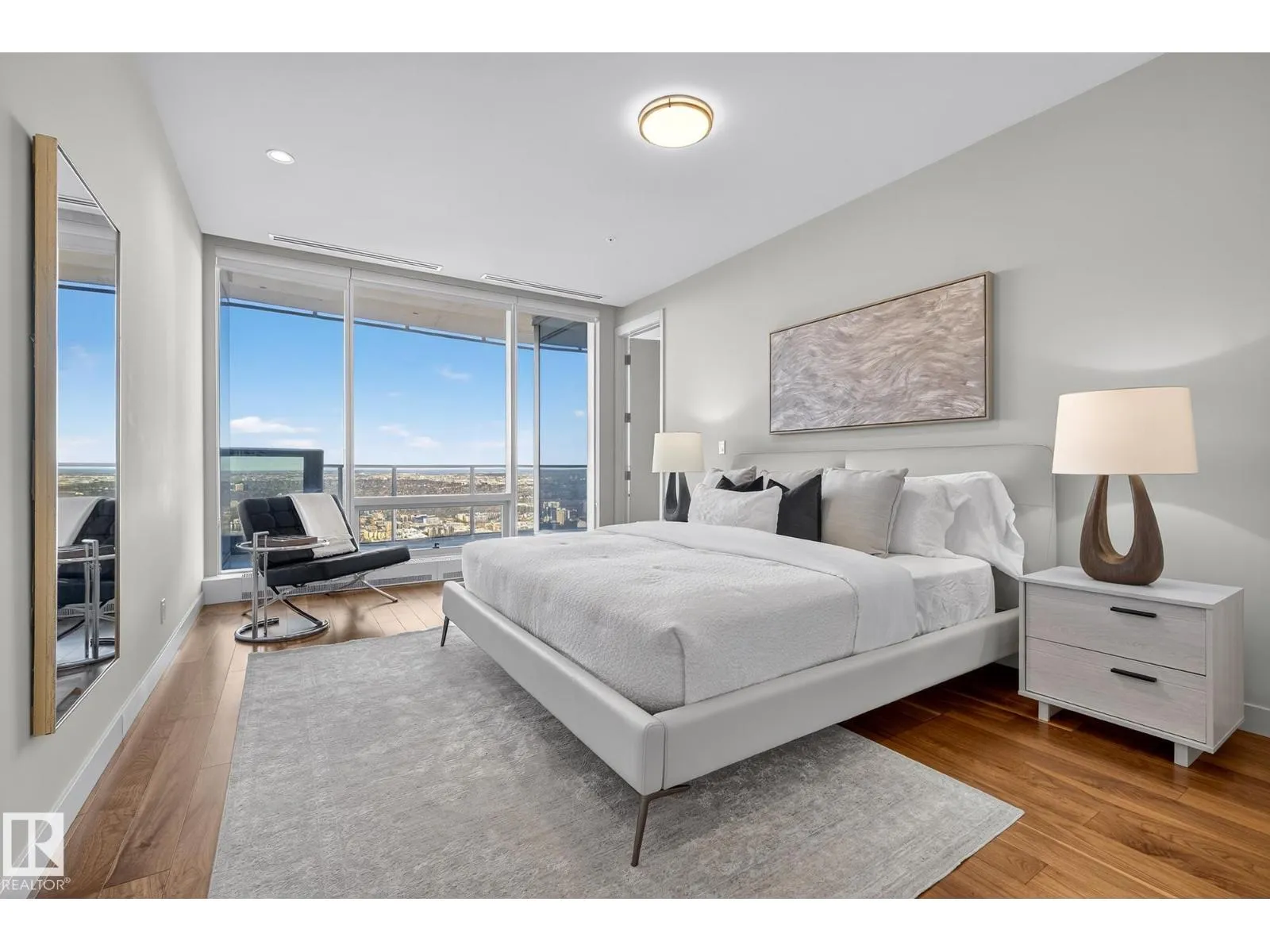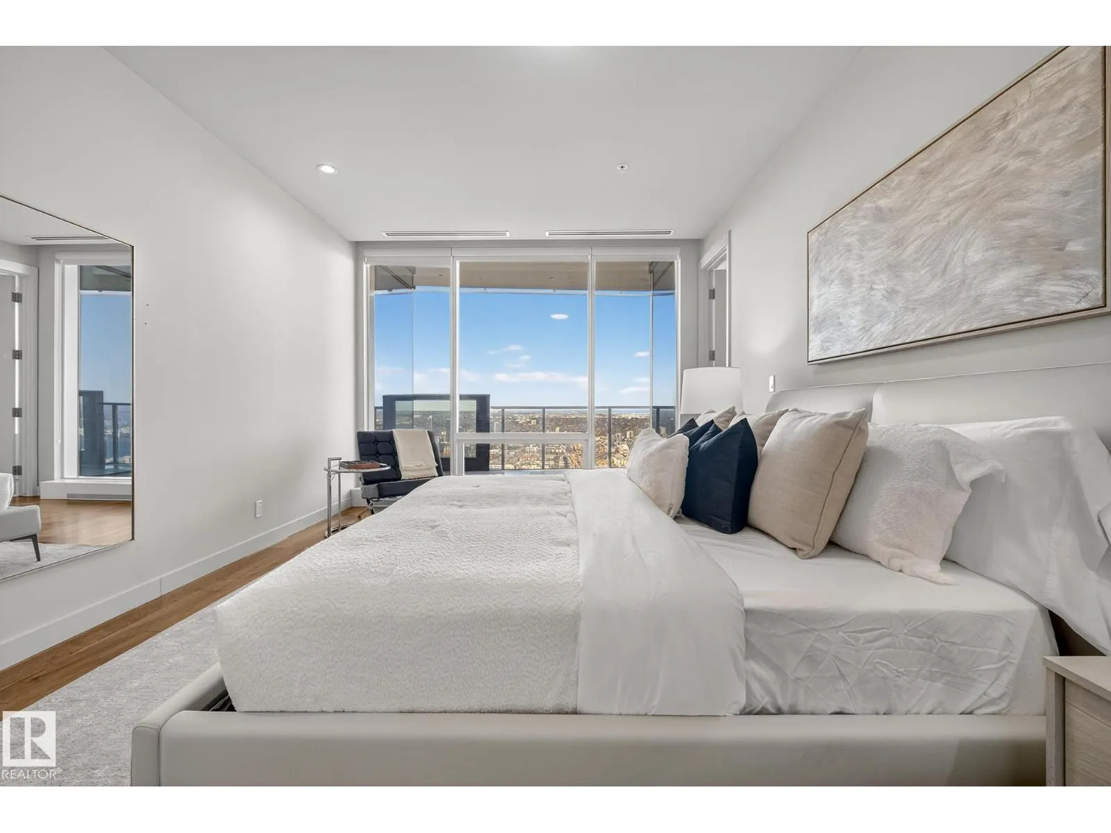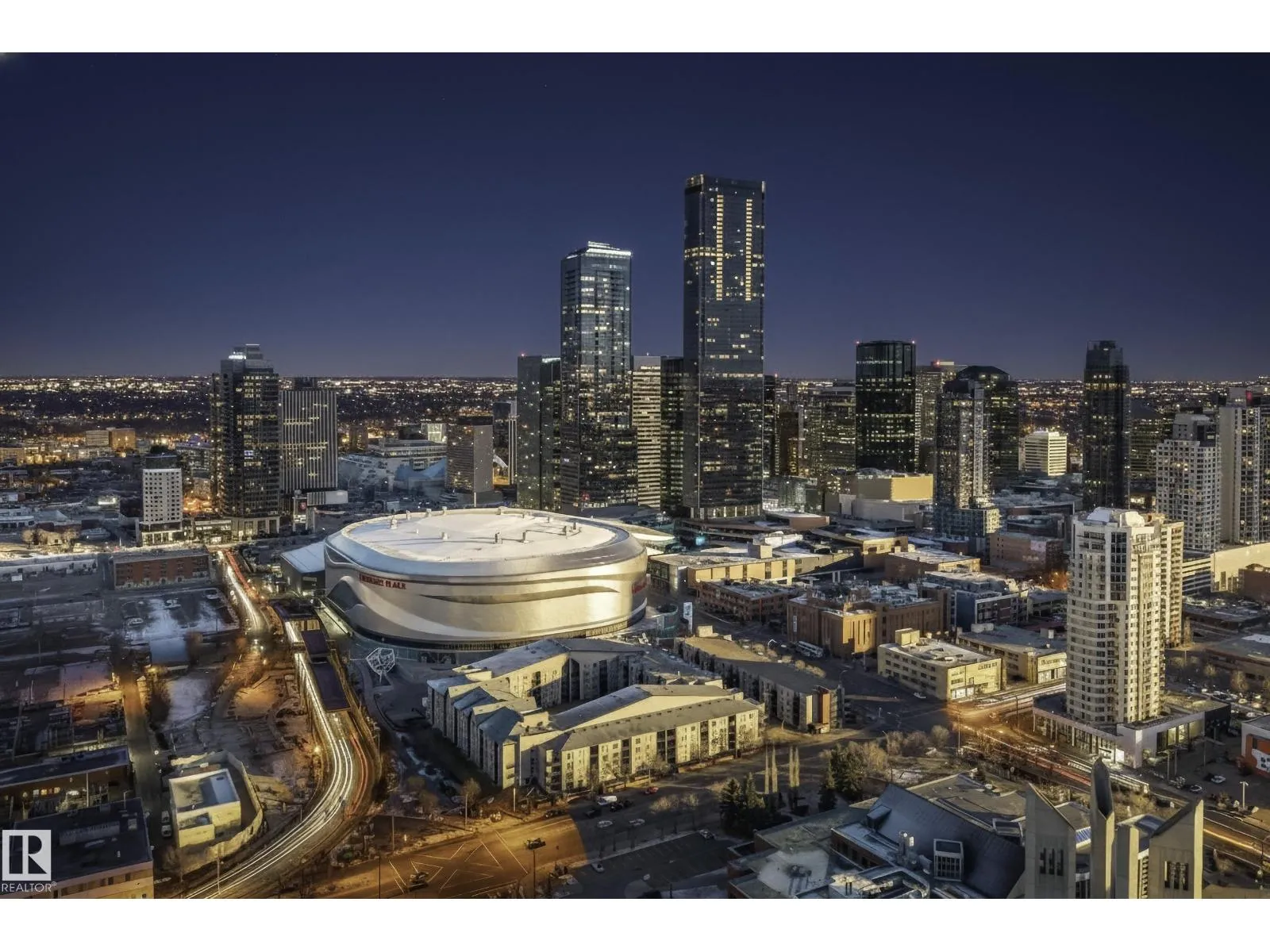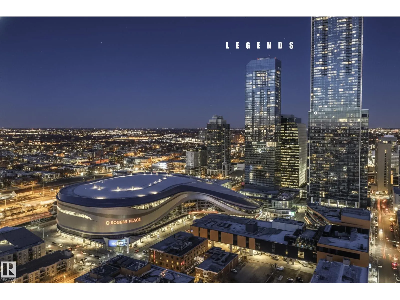 Legends Private Residences offers a rare chance to own a spectacular 2000+ square foot high floor corner suite with stunning Southwest views and unmatched luxury living. Soak in jaw dropping sunsets and river valley scenery from inside your home or either of your two private balconies. The layout is designed for ultimate comfort with a grand primary retreat featuring a massive walk in closet and spa calibre ensuite with walk in shower, freestanding tub, double vanities and heated floors. Premium finishes shine throughout including a sleek high gloss kitchen with integrated appliances, upgraded gas range and walk in pantry, rich walnut flooring, a bright den and a full laundry room with side by side machines. Enjoy a true connected lifestyle with pedway access to Rogers Place, the financial core, shopping, dining and entertainment. Indulge in JW Marriott amenities including a world class spa with indoor pool and steam rooms, ARCHETYPE fitness, 24 hour concierge and security, valet and exceptional dining. (id:27476)