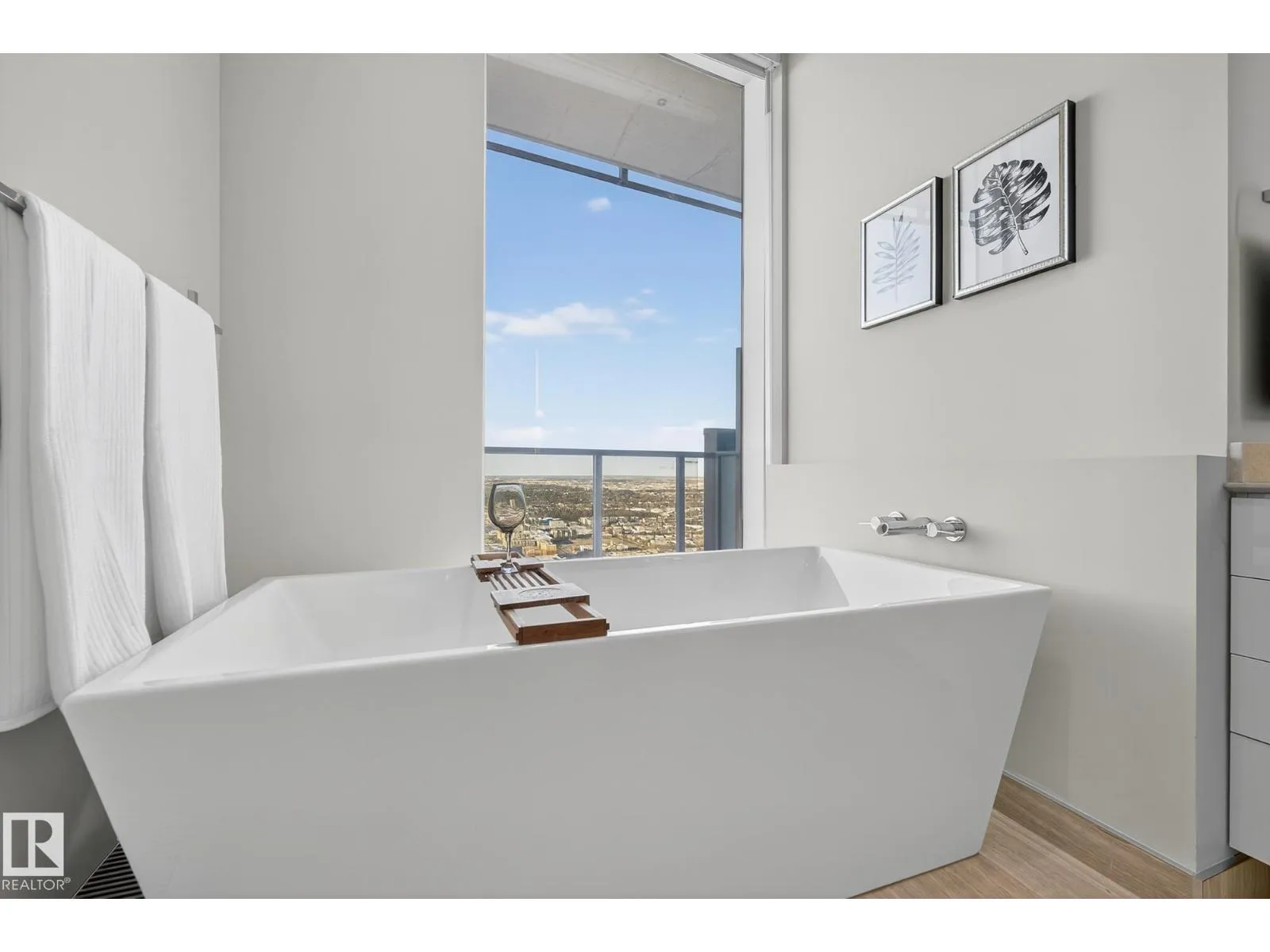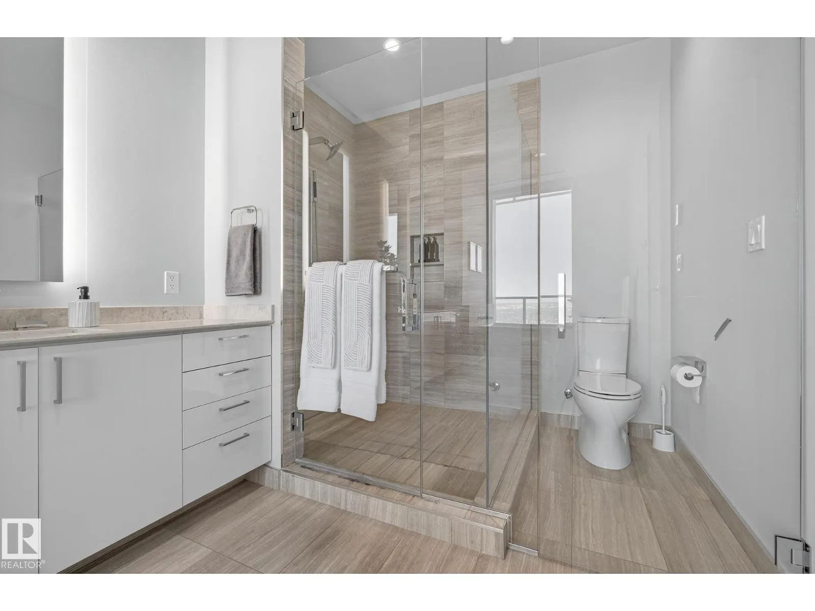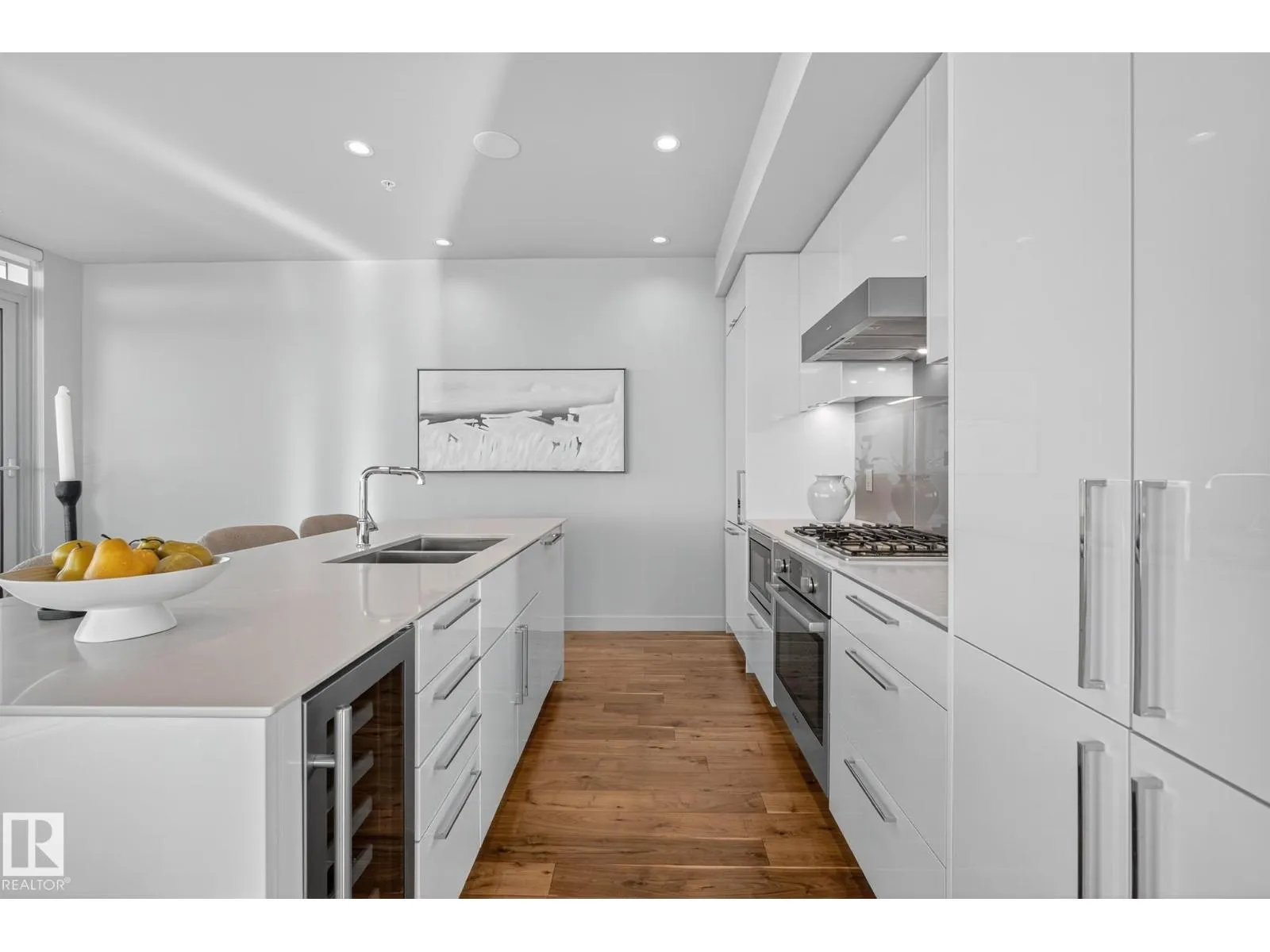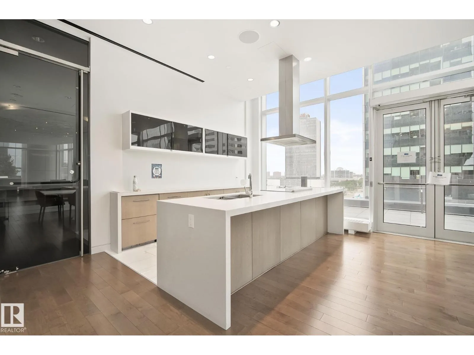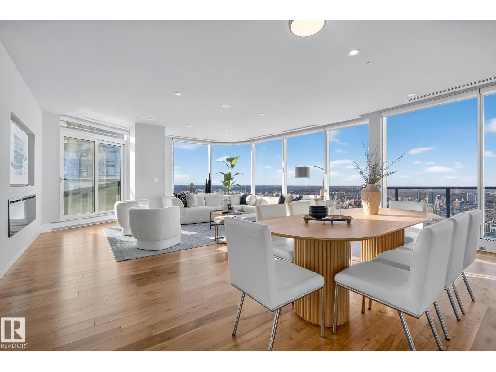 Legends Private Residences offers a rare chance to own a spectacular 2000+ square foot high floor corner suite with stunning Southwest views and unmatched luxury living. Soak in jaw dropping sunsets and river valley scenery from inside your home or either of your two private balconies. The layout is designed for ultimate comfort with a grand primary retreat featuring a massive walk in closet and spa calibre ensuite with walk in shower, freestanding tub, double vanities and heated floors. Premium finishes shine throughout including a sleek high gloss kitchen with integrated appliances, upgraded gas range and walk in pantry, rich walnut flooring, a bright den and a full laundry room with side by side machines. Enjoy a true connected lifestyle with pedway access to Rogers Place, the financial core, shopping, dining and entertainment. Indulge in JW Marriott amenities including a world class spa with indoor pool and steam rooms, ARCHETYPE fitness, 24 hour concierge and security, valet and exceptional dining. (id:27476)
