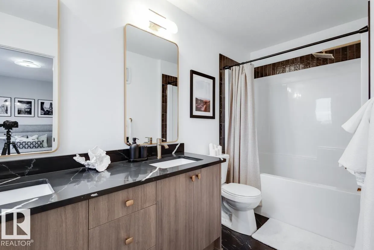Discover Your Dream Home in Keswick. This stunning 3-bedroom, 2.5-bathroom home seamlessly blends style and functionality. The main floor boasts 9' ceilings and a convenient half bath, perfect for guests. The beautifully designed kitchen is a highlight, featuring 42 upgraded cabinets, quartz countertops, and a waterline to the fridge. Upstairs, enjoy the flex area, spacious laundry room, full 4-piece bathroom, and 3 generously sized bedrooms. The luxurious primary suite offers a walk-in closet and ensuite. The separate side entrance and legal suite rough in's are an added bonus. Other features include a double attached garage, $3k appliance allowance, unfinished basement with painted floors, high-efficiency furnace, and triple-pane windows. UNDER CONSTRUCTION! Photos example of floorplan and finish. Actual build may vary. (id:27476)