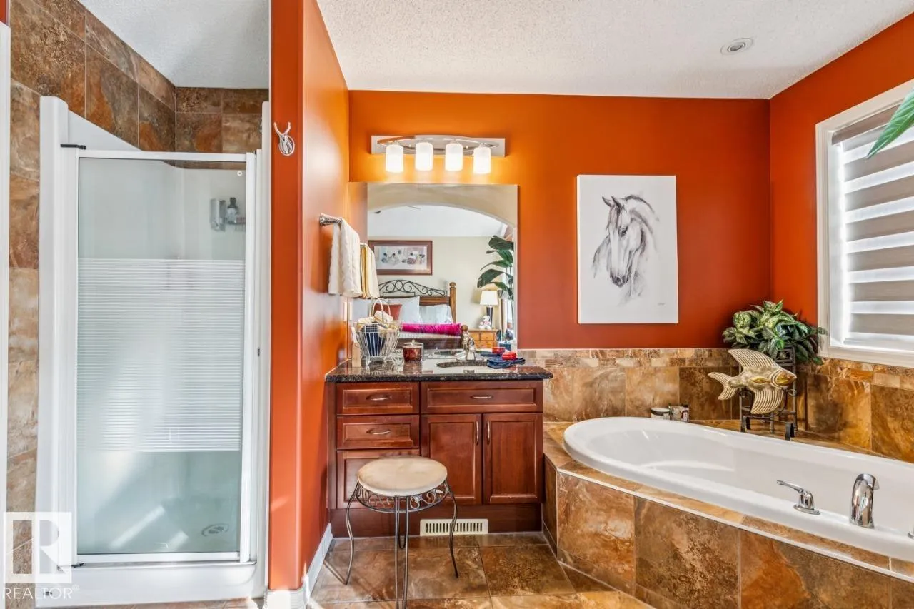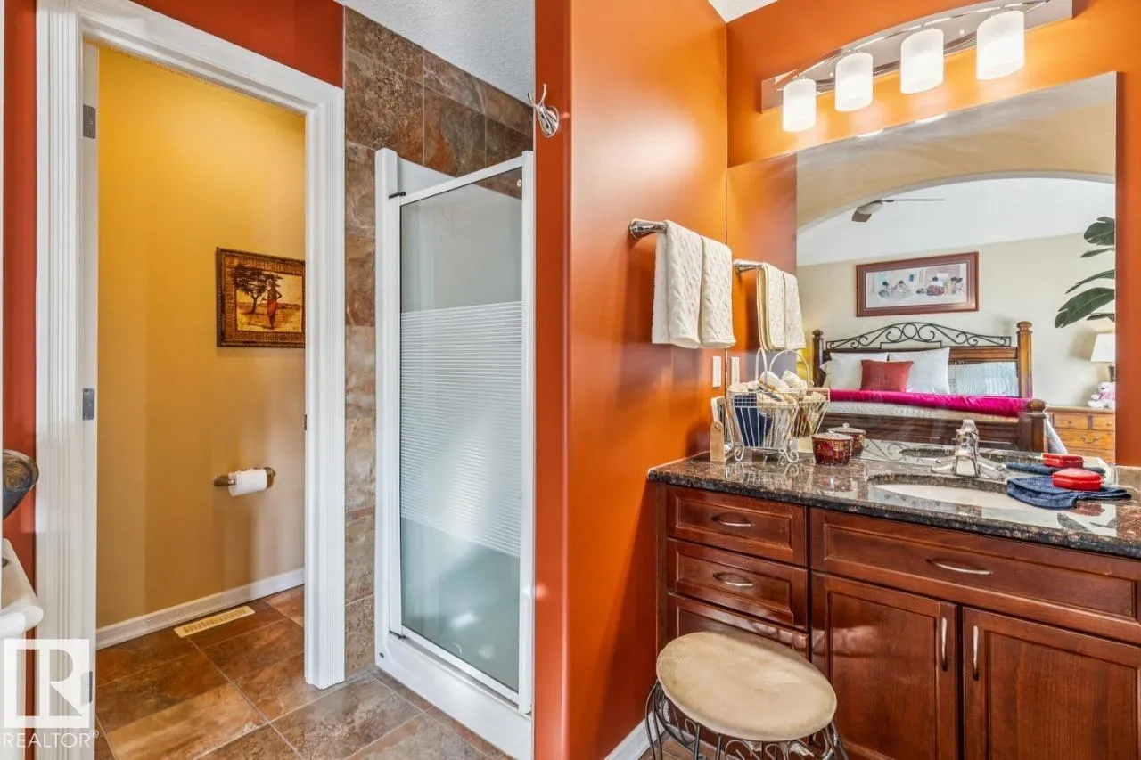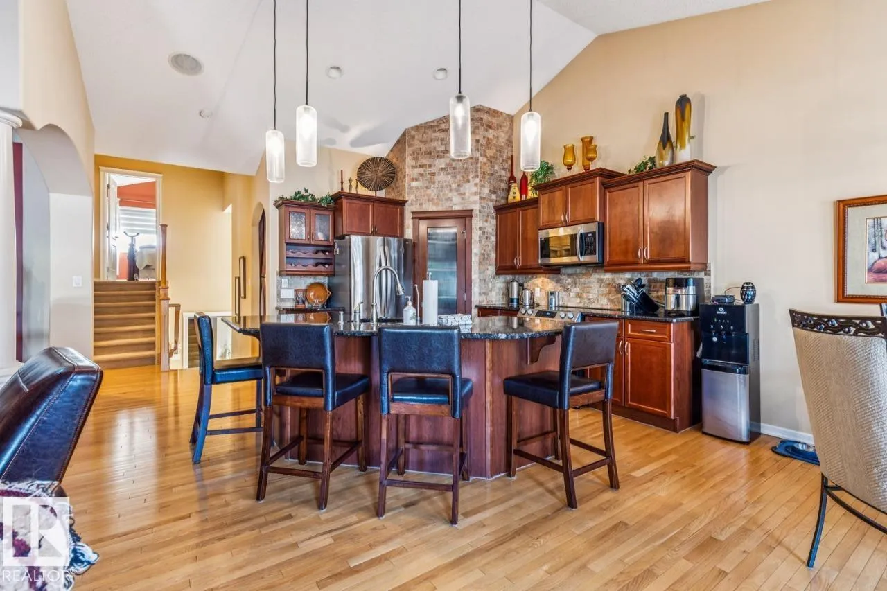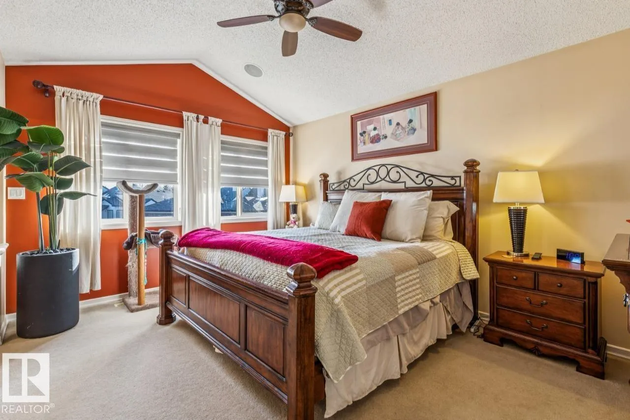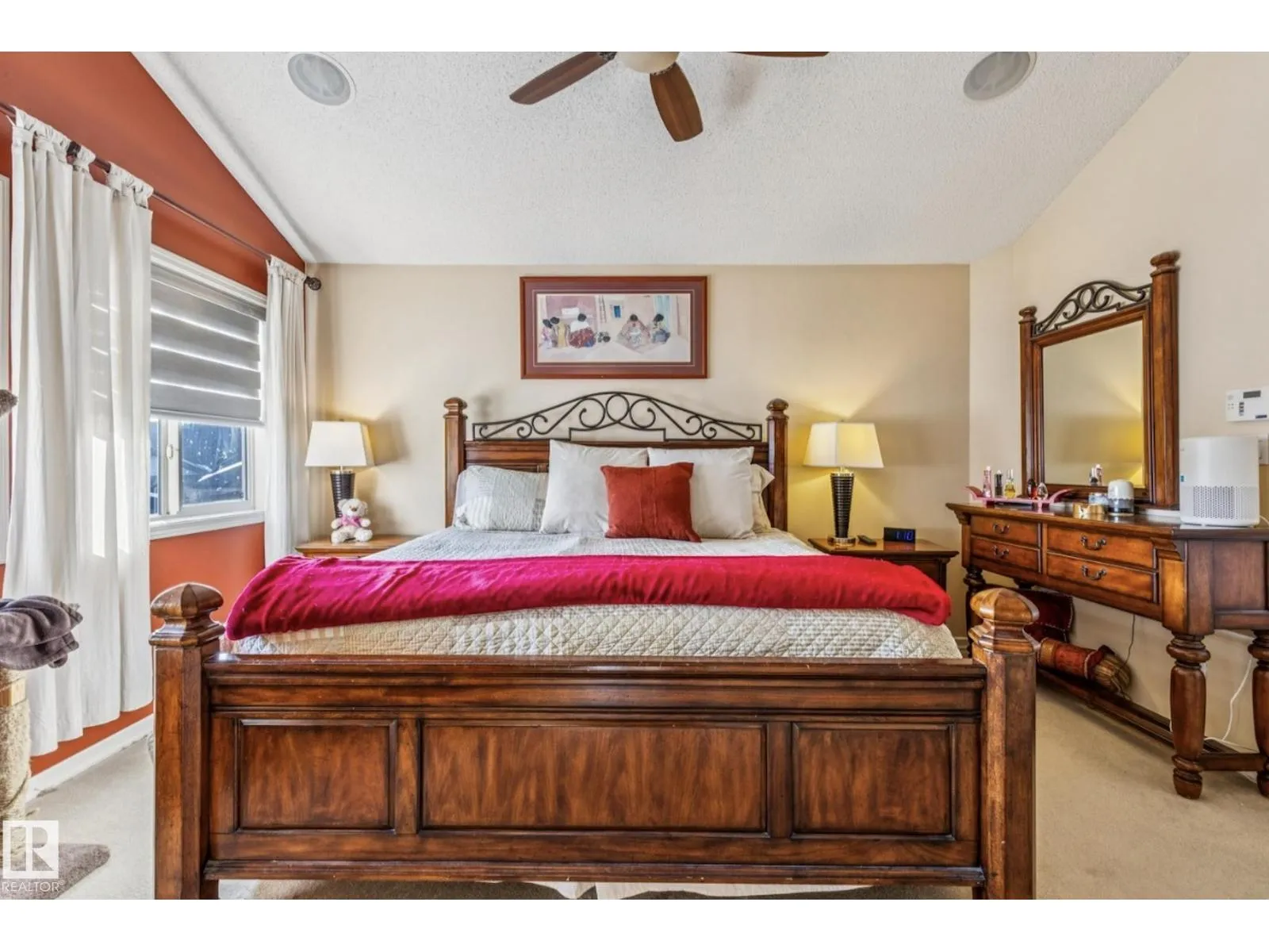 Lovely bi-level 2 bedroom, 2.5 bathroom, backing onto green space with an oversized deck featuring an electric awning. Double attached garage with painted walls and epoxy flooring. Fully finished basement with 9â ceilings and an electric fireplace. The home offers granite countertops, stainless steel appliances, and an upgraded kitchen backsplash on the pantry wall. Vaulted ceilings highlight both the primary bedroom and main living area. Recent upgrades include furnace and hot water tank replaced within the last five years. Custom window coverings throughout. Enjoy direct ravine access to walking trails, with quick connections to Whitemud Drive and Anthony Henday Drive, approximately 10 minutes away, and just 20 minutes to the airport. (id:27476)