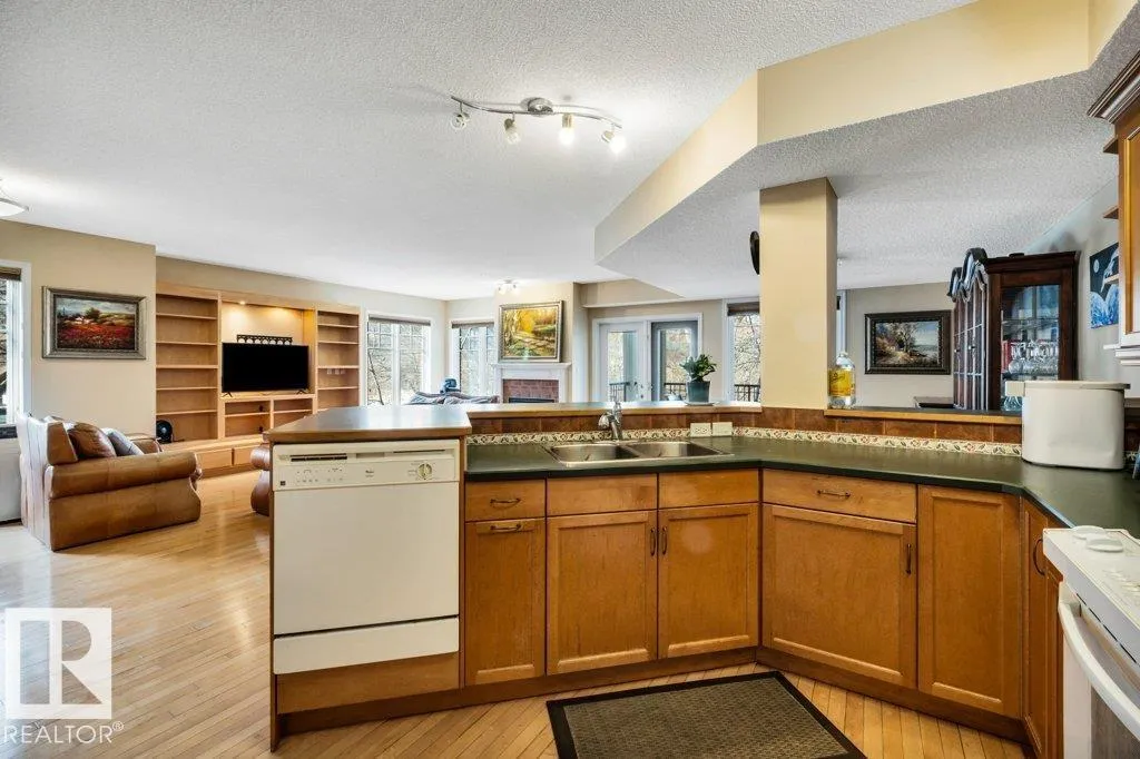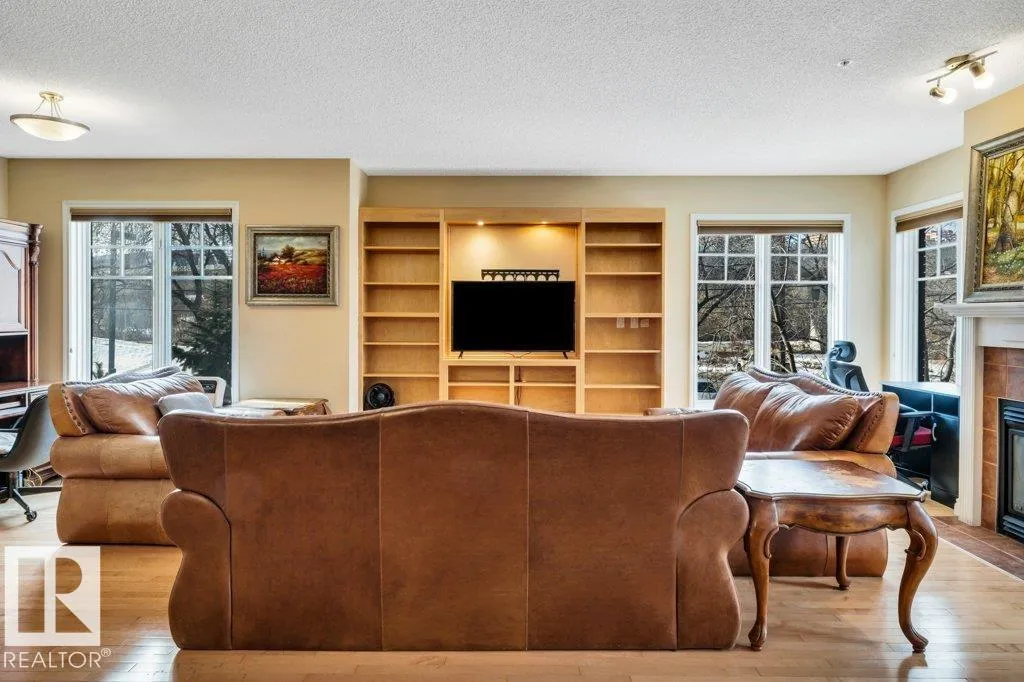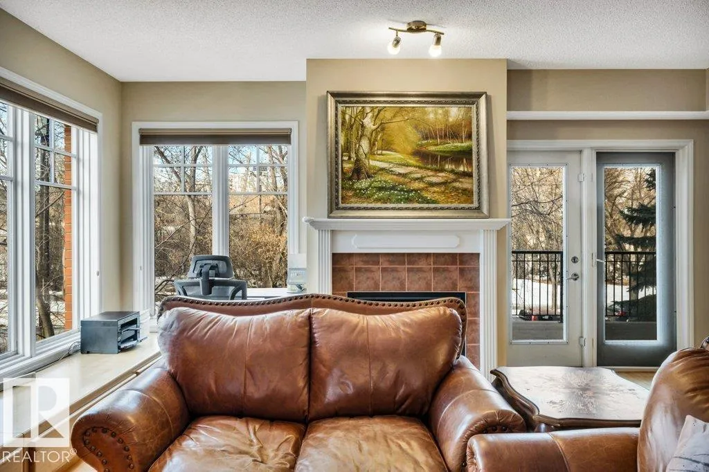 Live in the heart of Edmonton's river valley in this unparalleled luxury apartment @ The Landing in Cloverdale with its beautiful exterior facade & landscaping. UNBEATABLE SIZE of nearly 1500sqft is near impossible to duplicate for this price. UNBEATABLE LOCATION as you literally step outside in this river front setting. Perfect for nature lovers, exercising, & dog walks. This 2nd floor corner unit is in a prized location spanning the entire width of the building with S, W, N exposure with gorgeous views from all rooms or the large balcony of downtown & river valley. Inside includes 9ft ceilings, hardwood floors, maple kitchen cabinets, pantry & large raised island. Open floorplan with massive LR with gas fireplace, built in cabinets & big panoramic windows. Two full baths & 2 bedrooms including a spacious primary suite with ensuite & walk in closet. One underground stall with storage room + 1 carport stall. The monthly condo fees cover all utilities, & amenities like exercise, workshop & social rooms. (id:27476)