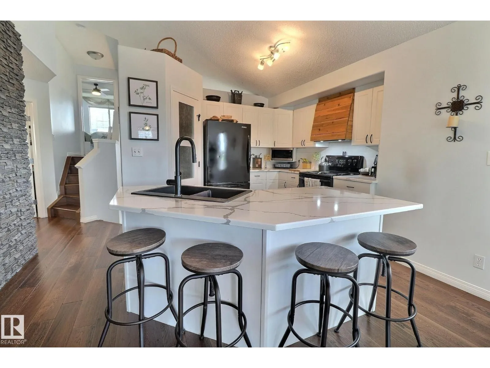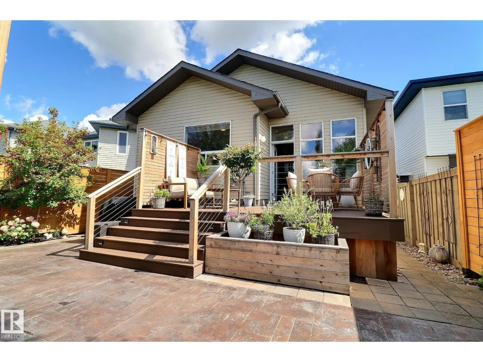 IMMEDIATE POSSESSION! Total 2,245 sq ft in MacEwan with easy access to Anthony Henday! This impeccably maintained 3-level split is move-in ready and semi-furnished, featuring a new kitchen, updated upper-level flooring, beautiful landscaping, a wine closet, new shingles (2019), a large deck, patio, gazebo & more! This turn-key home is a must-see, with an open concept entrance, extra-wide stairs, rear basement access to the backyard, and high ceilings that create a bright, spacious feel throughout. Large windows on every level fill the home with natural light. The main level features a seamless open-concept layout connecting the kitchen, living, and dining areas. The kitchen has been upgraded with new countertops and a double sink, while the living and dining spaces are surrounded by oversized windows. There are two bedrooms on the main level and one in the basement, along with a full bathroom on each level. (id:27476)