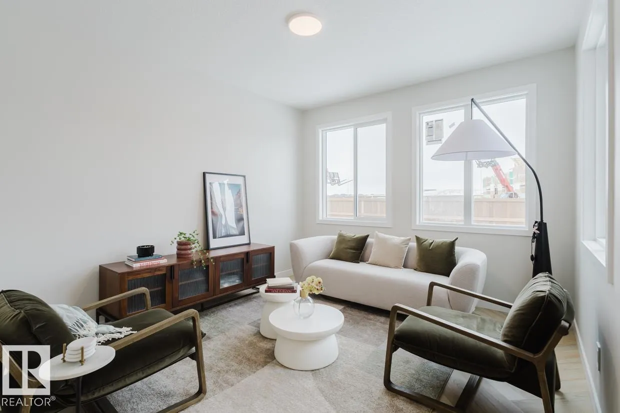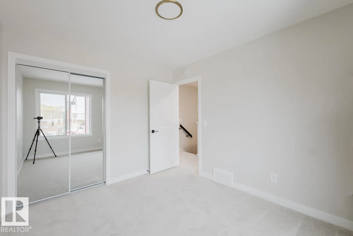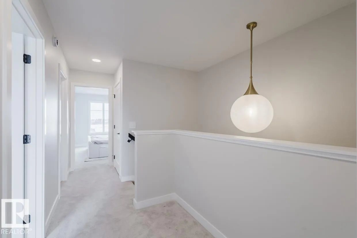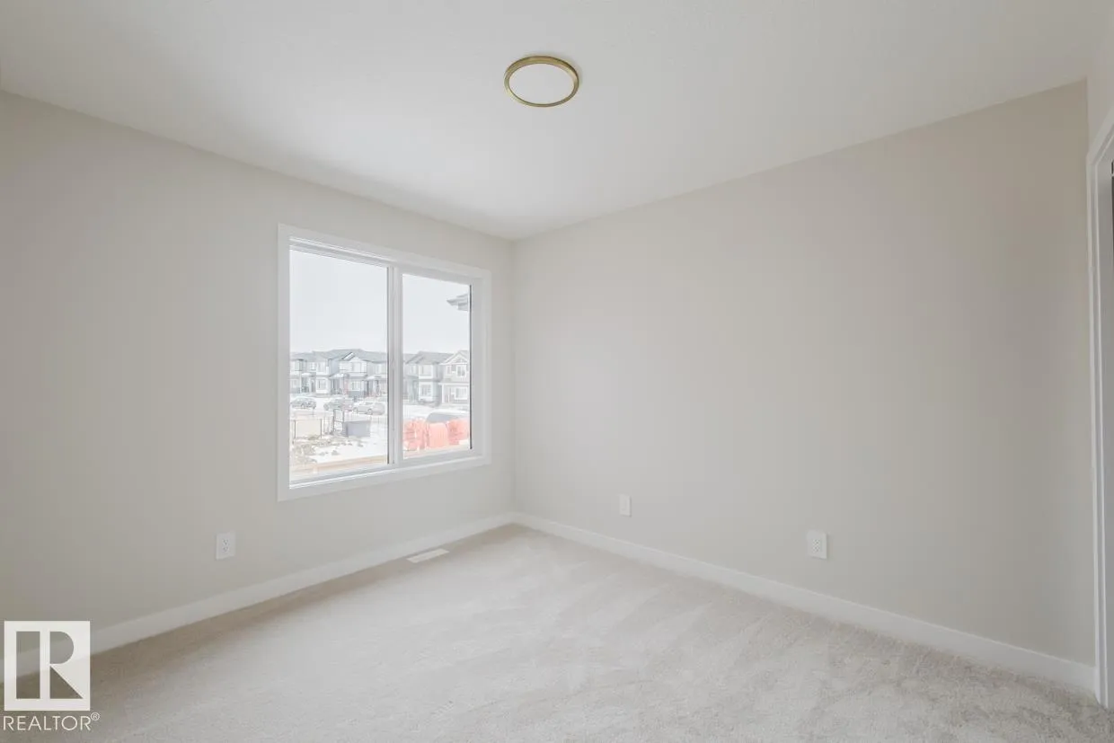 Nestled in a tranquil community surrounded by nature and trails, this stunning 3-bedroom, 2.5-bathroom duplex seamlessly blends style and functionality. The main floor boasts 9' ceilings and a convenient half bath, perfect for guests. The beautifully designed kitchen is a highlight, featuring upgraded cabinets, quartz countertops, and a waterline to the fridge. Upstairs features a convenient laundry room, full 4-piece bathroom, and 3 generously sized bedrooms. The luxurious primary suite offers a walk-in closet and ensuite. Other features include separate side entrance, FULL LANDSCAPING, a double attached garage, $3k appliance allowance, unfinished basement with painted floors, high-efficiency furnace, and triple-pane windows. Buy with confidence. Built by Rohit. UNDER CONSTRUCTION! Photos may differ from actual property. Appliances NOT included. (id:27476)
