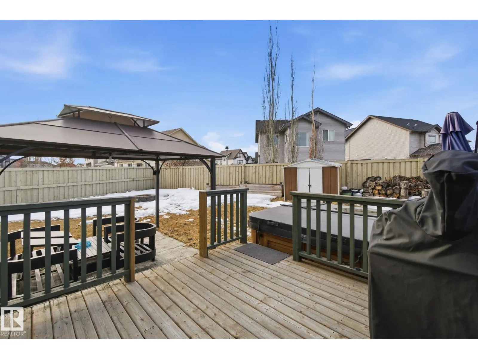This immaculate 2 storey home is Jayman Built is located in Allard on an oversized pie lot that offers 9â ceilings, 3 bedrooms, 2.5 baths, a spacious bonus room & heated double attached garage. The main floor showcases a stylish kitchen featuring ample cabinetry, a large centre island & stainless steel appliances. The living room provides plenty of space for family gatherings. While the dining room opens to a deck overlooking the newly landscaped backyard which is perfect for entertaining. Upstairs youâll find a generous primary suite complete with a walk-in closet & 4pc ensuite, two additional bedrooms, a full bath, bonus room, and convenient upper-level laundry complete this floor. Additional upgrades include brand new central A/C, custom blinds throughout & 5 out of 6 appliance replaced over the last couple years. Prime location close to parks, walking trails, K-9 schools, playgrounds, shopping & easy access to the airport, QEII, & Anthony Henday. (id:27476)