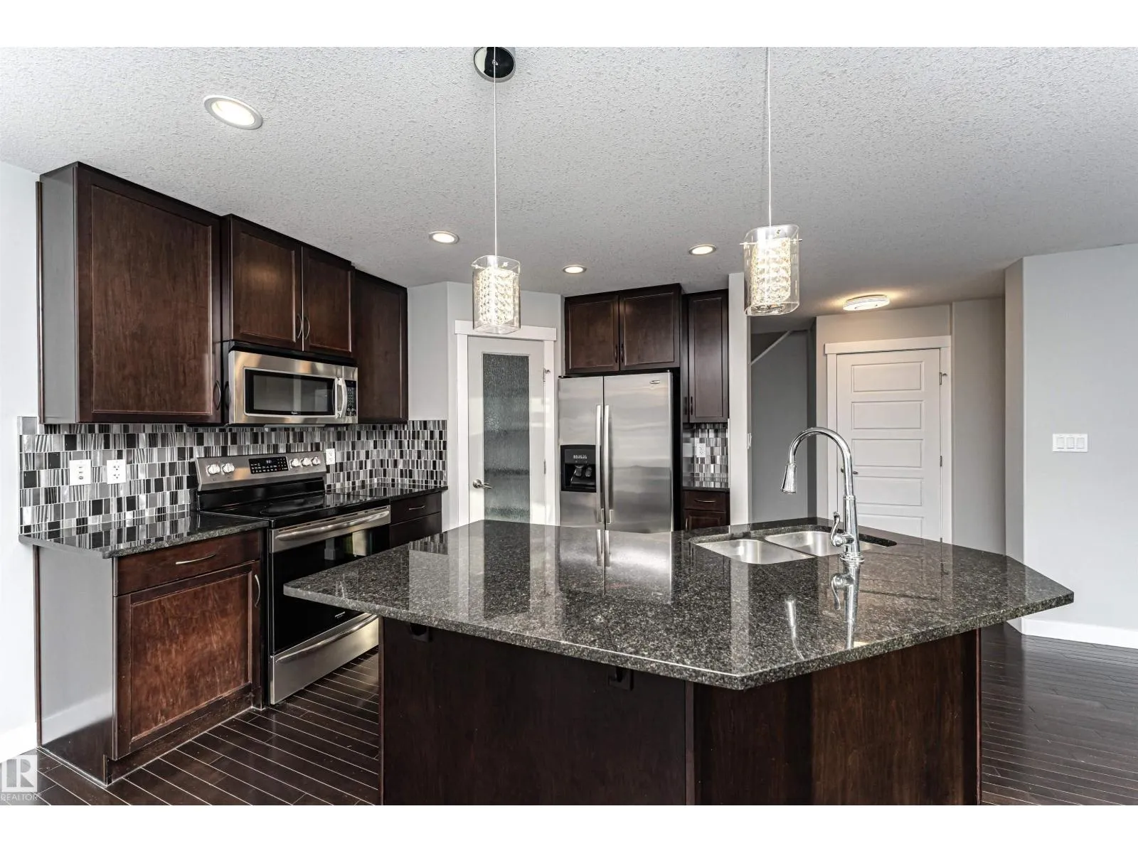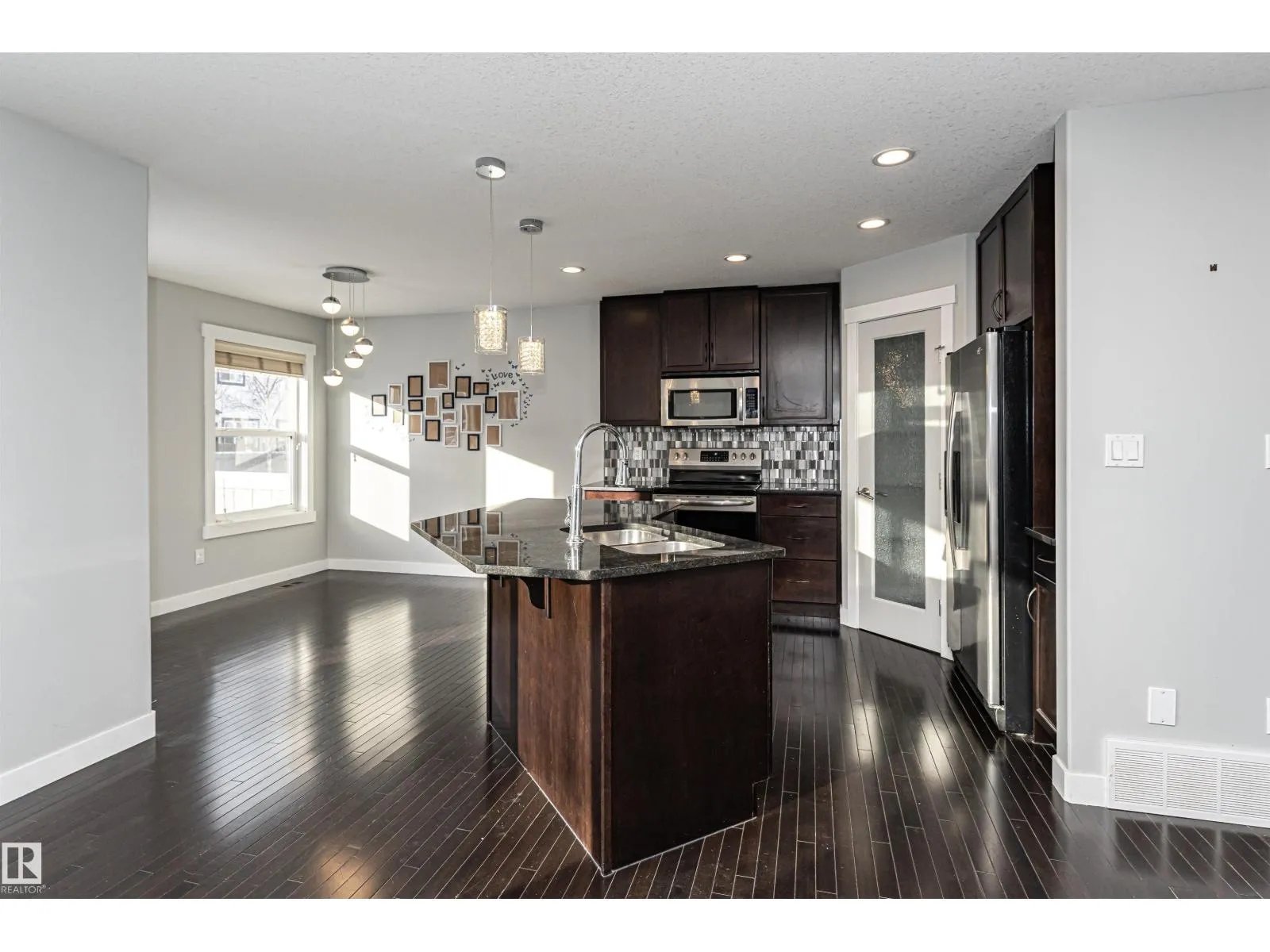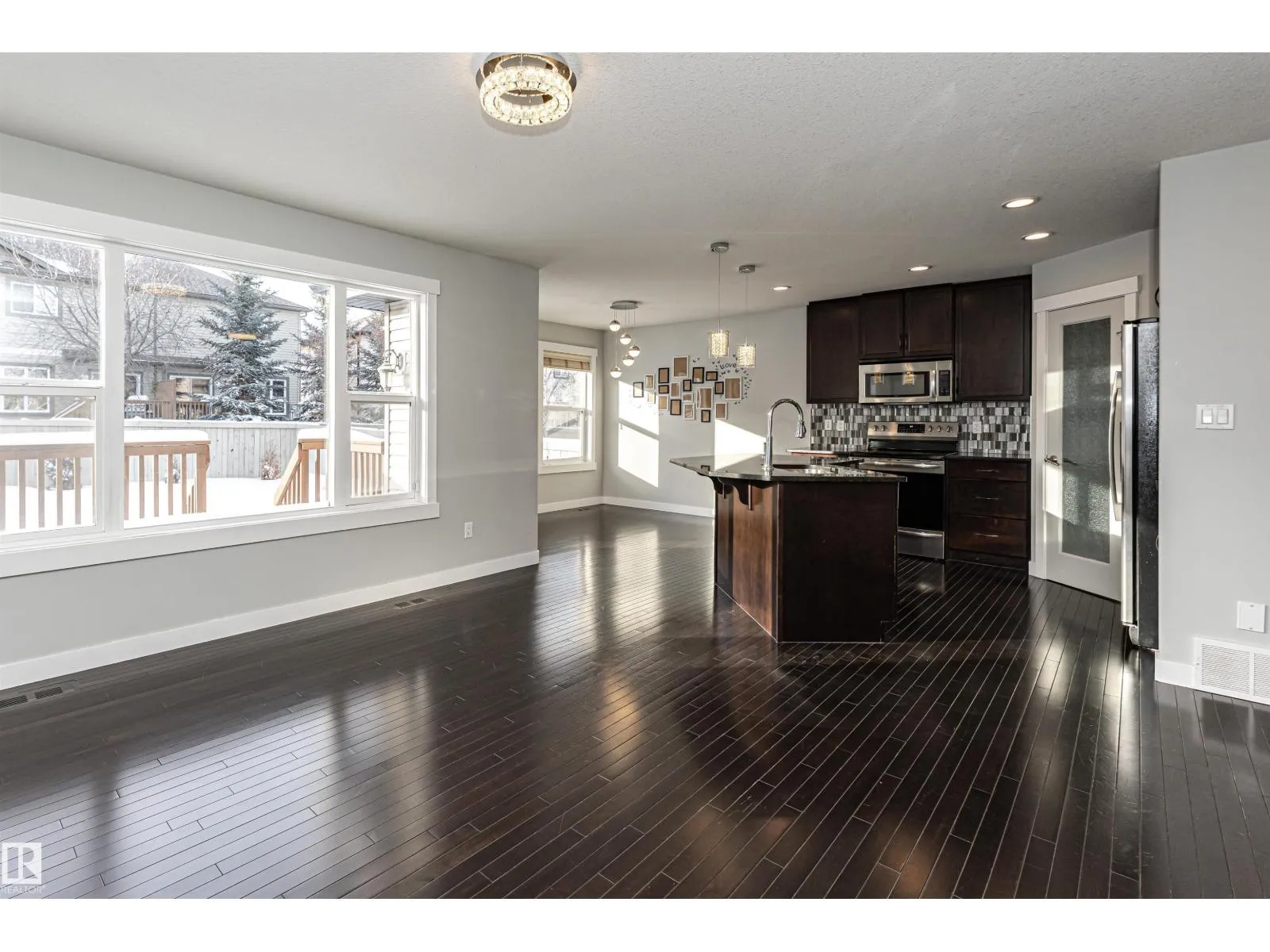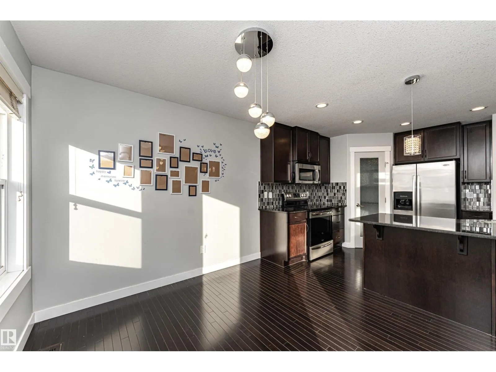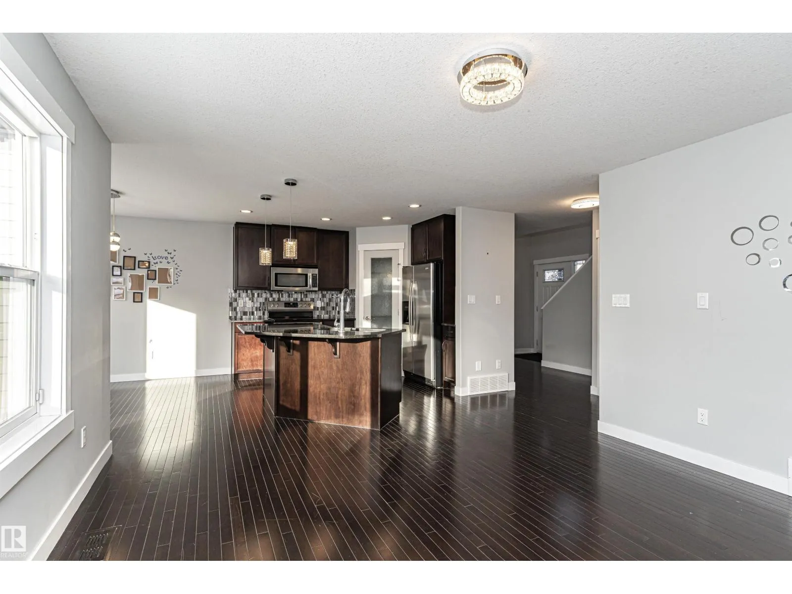This well-maintained 2-storey home in Summerside (NO annual HOA fee) offers 1,711 sq. ft. of above-grade living space, featuring 9 ft ceilings, a bonus room, 3 bedrooms, 2.5 baths, and a double-attached garage. A spacious entryway leads to a bright living room and dining area. Rich dark hardwood flooring flows throughout the main floor. The open-concept floor plan provides direct access to the kitchen, featuring SS appliances, black granite countertops, a center island, and a pantry. The dining room leads to the oversized SOUTH-facing backyard. A 2-pc bath and laundry room complete the main floor. Upstairs, you'll find a large bonus room with plenty of natural light, 3 spacious bedrooms, and a 4-pc shared bath, with the primary bedroom featuring a walk-in closet and a 4-pc ensuite. The unfinished basement offers endless possibilities for customization. Close to the Henday and Calgary Trail. (id:27476)