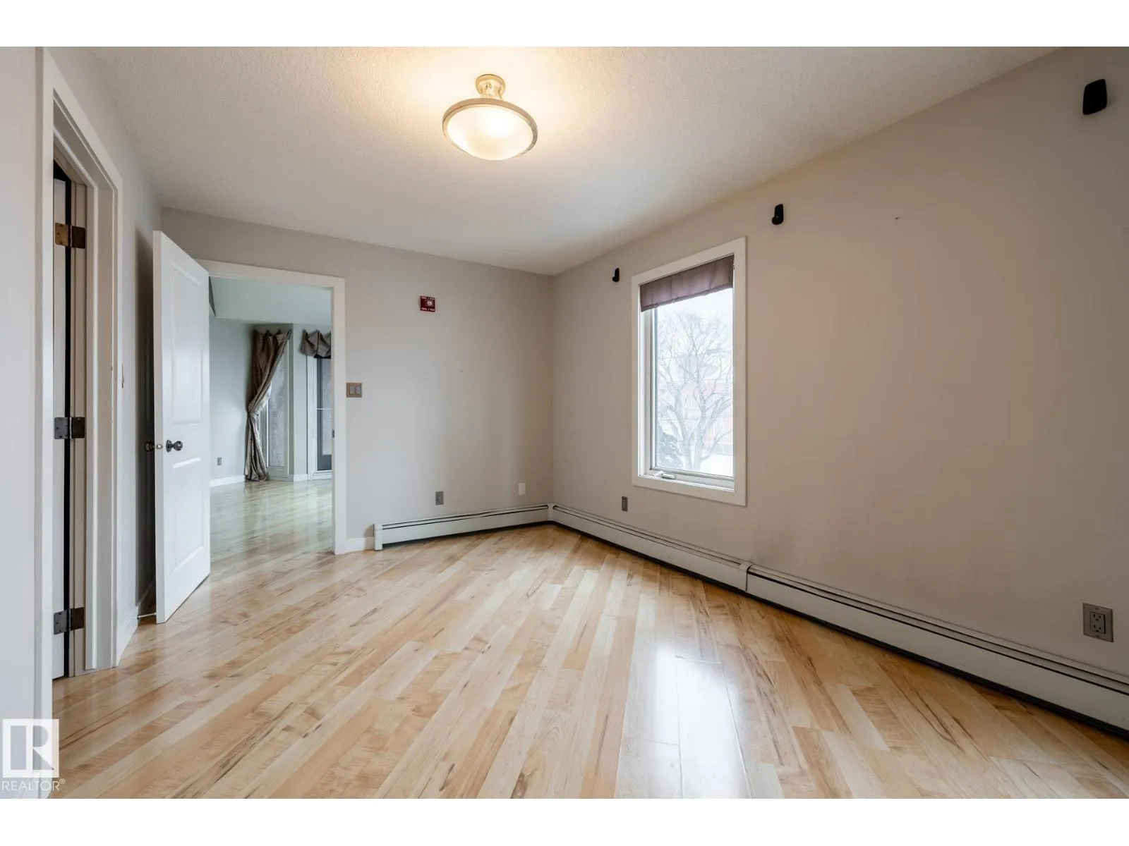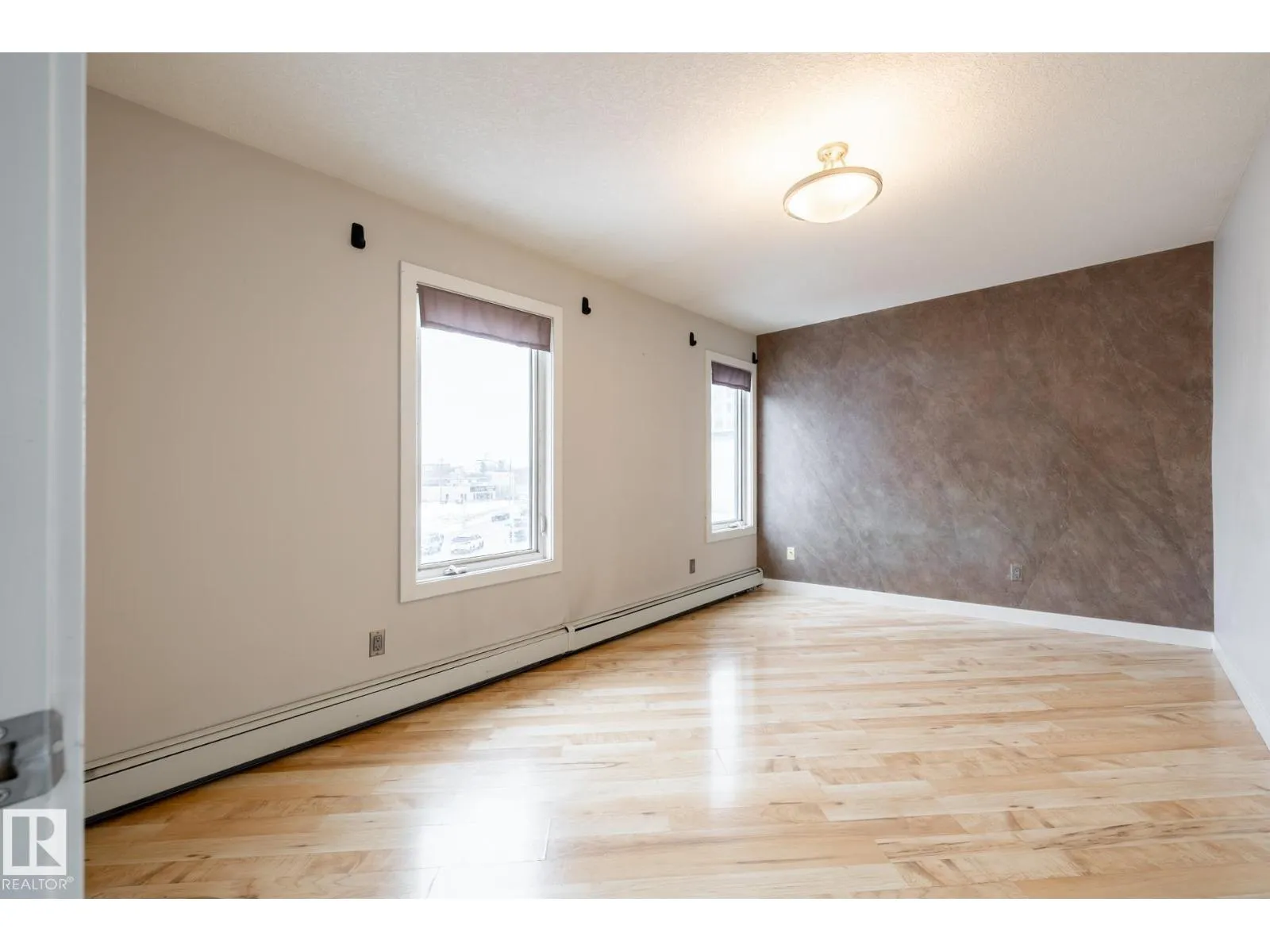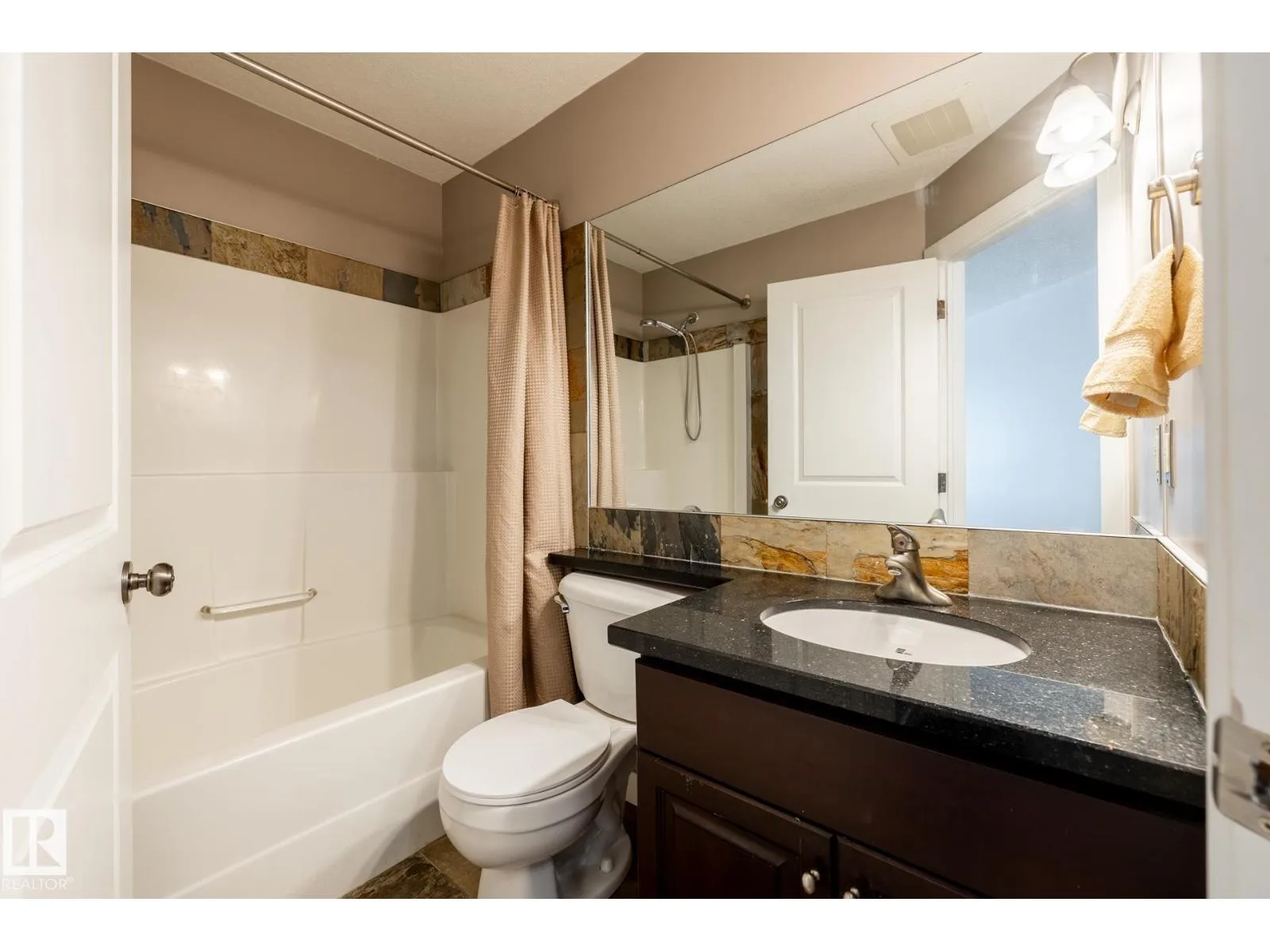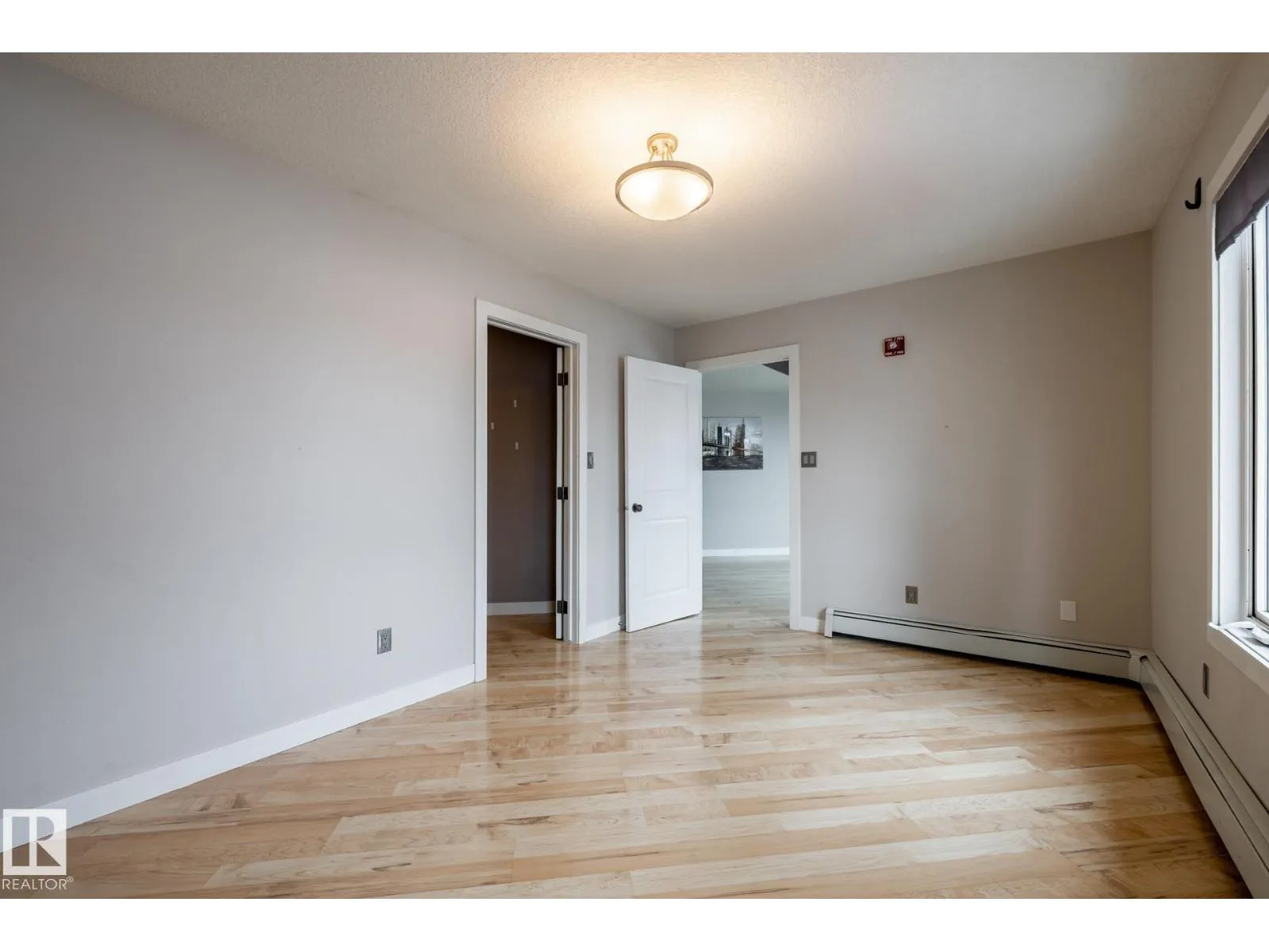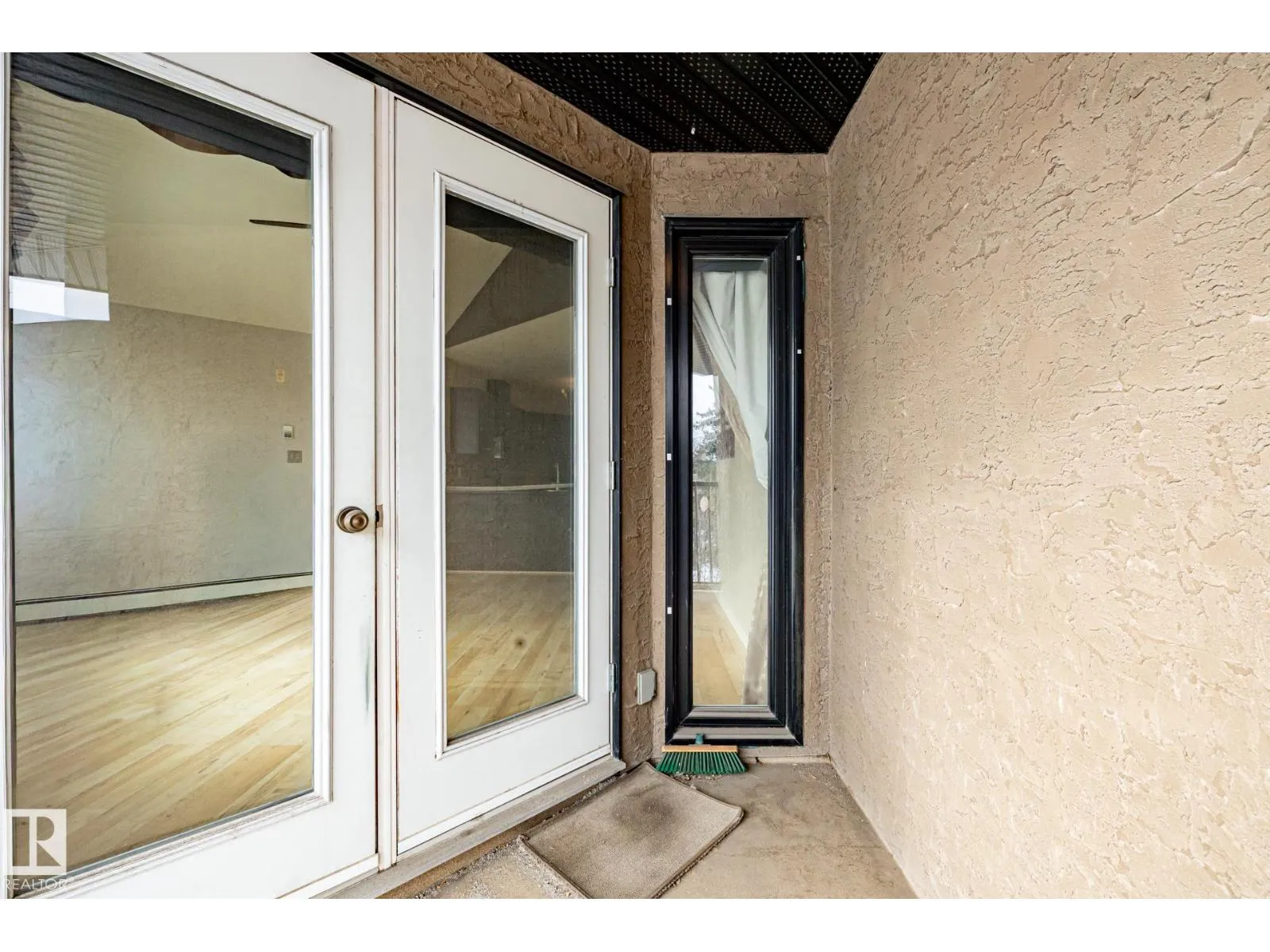 Top floor executive condo in the upscale Louie Pointe building in The Quarters on Jasper Ave. This former show home suite features vaulted ceilings and south-facing views toward Jasper Avenue and the River Valley. The bright, open-concept layout offers hardwood flooring, granite countertops, slate tile backsplash, stainless steel appliances, and air conditioning. Rare 1 bedroom + 1.5 bath design includes a spacious primary suite with walk-in closet and 2-piece ensuite, plus a full main bath for guests. Modern lighting and upgraded slate finishes throughout. Enjoy a south-facing balcony, large storage cage, outdoor parking stall with plug-in, and free common laundry for residents. Stone exterior curb appeal and concrete construction between units for added sound reduction. Walk to the River Valley, Downtown, LRT, restaurants, and more. Exceptional value in a prime central location. (id:27476)