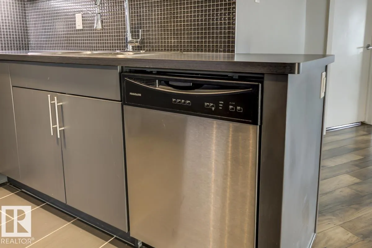 Terrific location with a view of downtown. A trendy newer building with easy access to everything. This is the largest floorplan in the building at 997 sq ft. 2 bedrooms and 2 full baths and 2 underground parking spaces. Tiled entry way, wide planked laminate flooring in living and dining rooms. U-Shaped Kitchen with stainless appliances , mosaic tiled backsplash. Primary room with generous walk through closet. Ensuite with oversized shower with glass doors. Main bathroom with tub/shower combo. In suite laundry and storage. East balcony with gas bbq outlet. Some photos digitally staged. (id:27476)