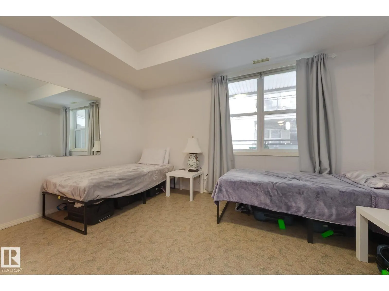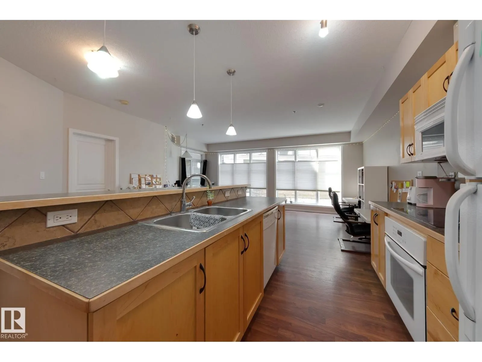 Perfect for investors! The long-term Corporate tenant would like to stay!! Fabulous low-rise condo complex in the very central, walkable neighbourhood of Empire Park with your choice of grocery stores including the Italian Centre & Superstore, various fast-food shops, coffee shops, restaurants, professional services, & public transit. The condo is lovely with 9 ft ceilings, vinyl plank flooring and a sunny SW exposure. A full bank of floor to ceiling windows, dressed with drop-down/pull-up blinds, overlook a serene courtyard and floods the front rooms with so much light. Open floorplan with an alley kitchen, raised eating bar, countertop stove and built-in convection oven. Two bedrooms, two full baths and ensuite laundry (washer a couple of months old). One underground titiled parking stall with a storage cage in front. Lots of visitor parking out front. Small pets allowed with board approval. A great place to call home! (id:27476)