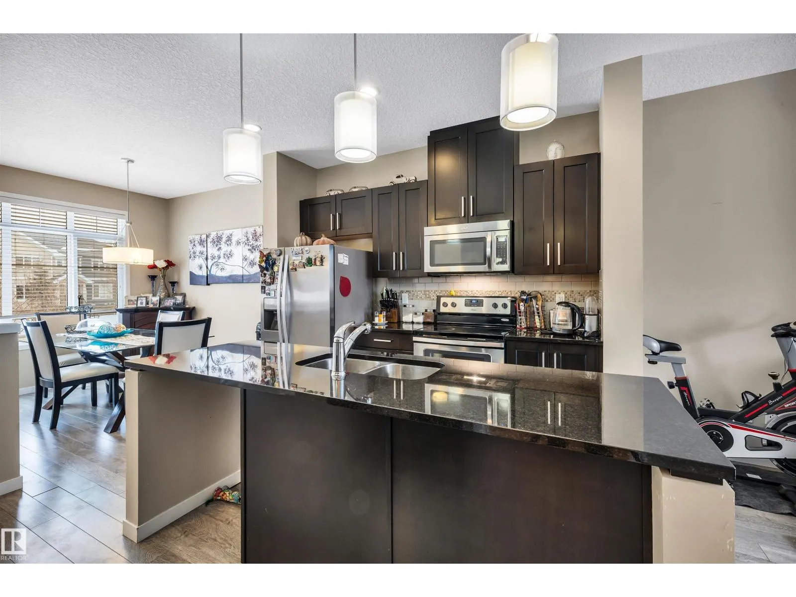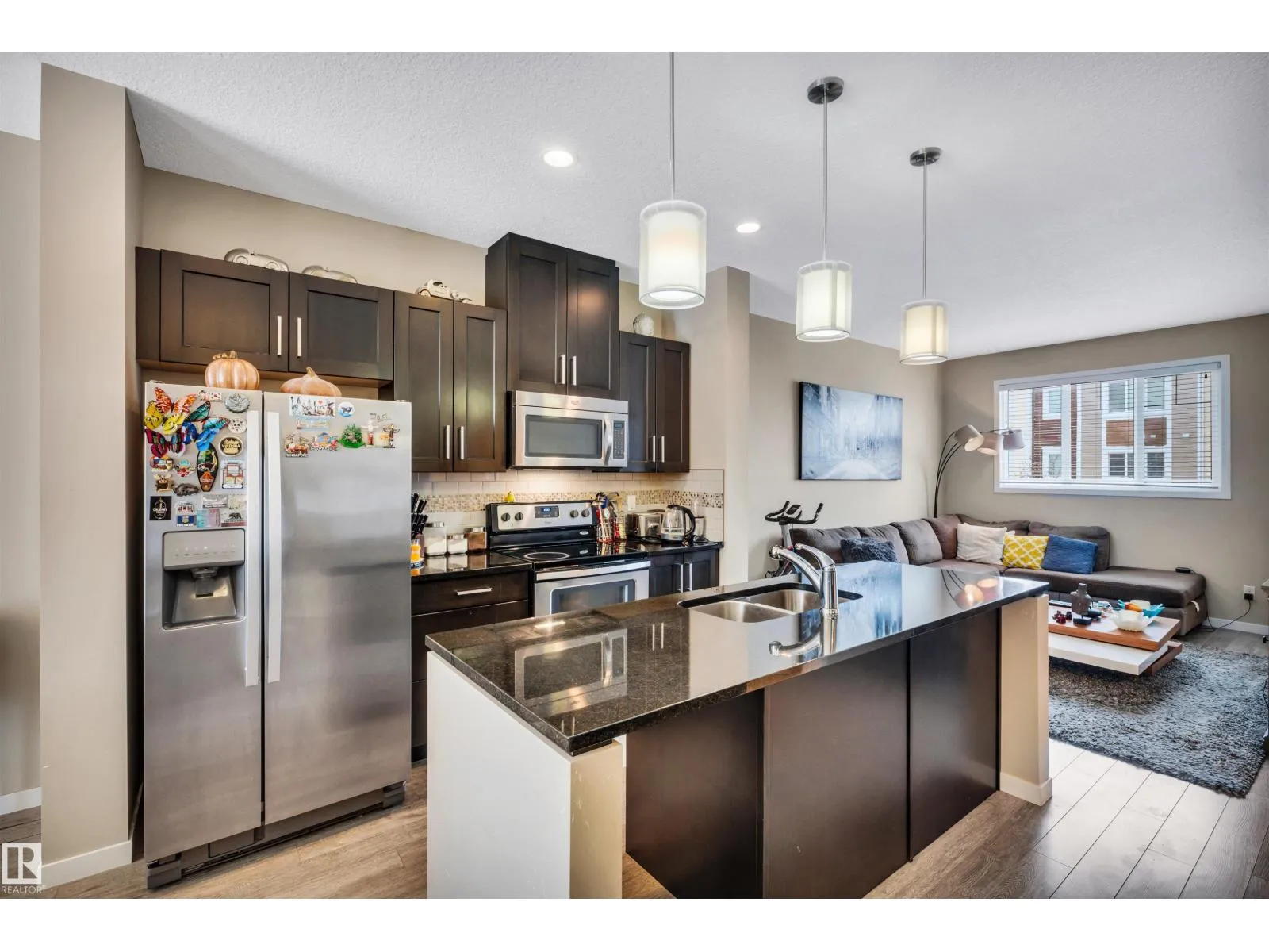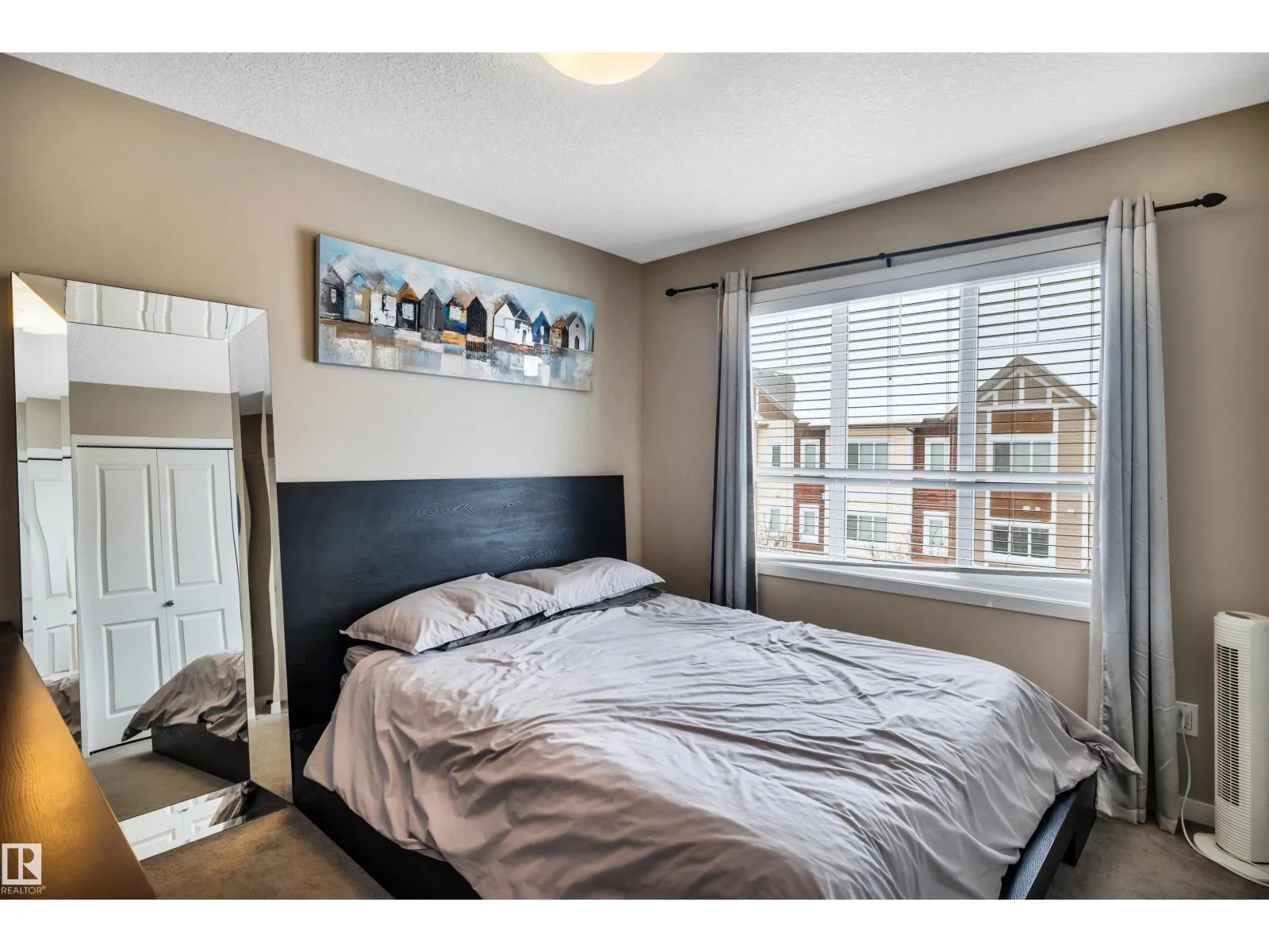 Welcome to Secord Chalet, a hidden gem in West Edmonton! This inviting townhouse complex surrounds a stunning landscaped courtyard and backs onto serene greenbelt trailsâideal for nature walks and pet lovers. Low-maintenance bliss: ultra-low condo fees cover lawn care, snow removal, and more. Pets welcome with no restrictions, and an off-leash park is just steps away. Morning coffee at Tim Hortons? Easy stroll. Perfect for first-time buyersâwalk to Winterburn Elementary, minutes to Michael Phair Junior High, shopping, dining, transit, and quick Henday access. This unit boasts two king-sized primary bedrooms, 1.5 baths, upstairs laundry, a modern kitchen with stainless appliances, soft-close drawers, and granite countertops. Entry-level flex room doubles as a home office. Extras: single attached garage, front parking stall, plus plenty of visitor spots. Ditch the shoveling and mowingâembrace easy, affordable living in a friendly community! (id:27476)