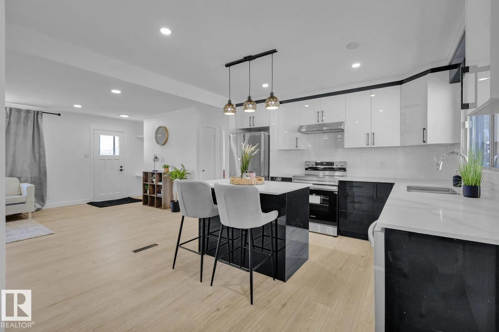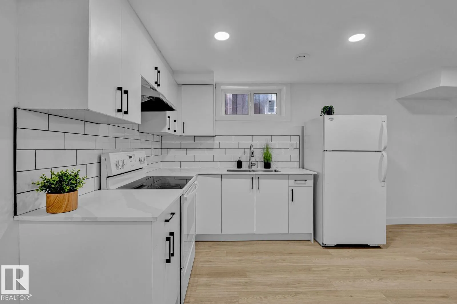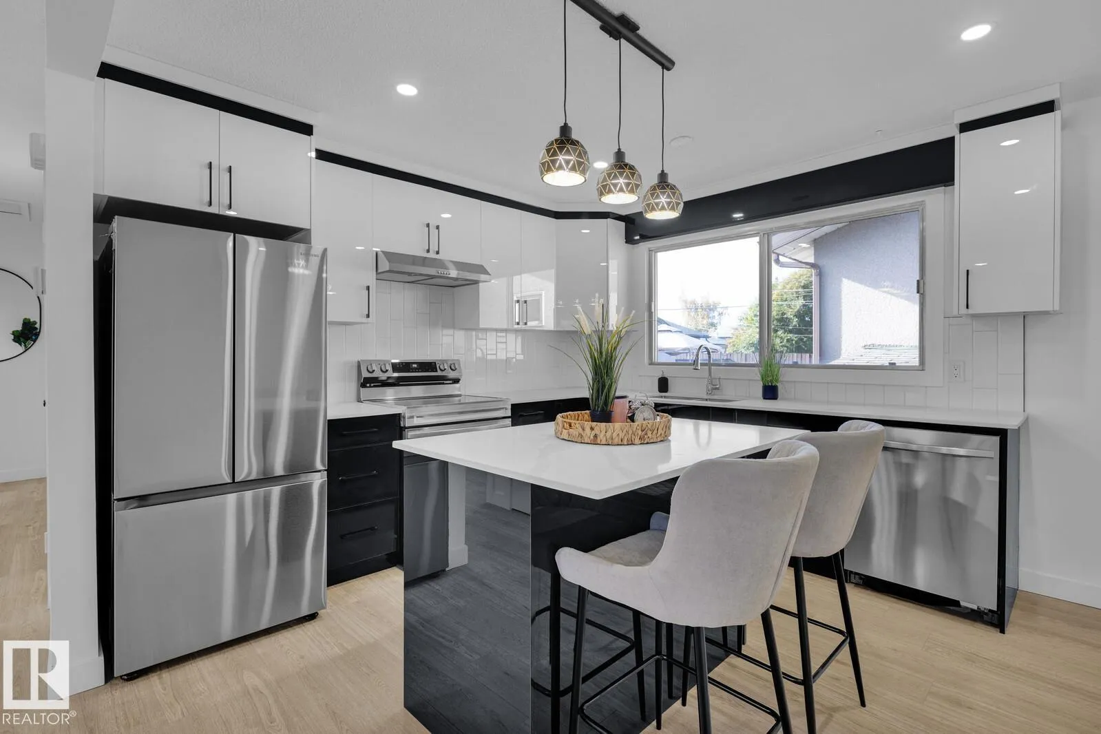 Fully renovated corner-lot bungalow located in a desirable neighborhood. The main floor features a bright living room with an electric fireplace, a modern kitchen with granite countertops and stainless steel appliances, three spacious bedrooms, and a fully upgraded bathroom. The fully finished basement offers a separate entrance, a kitchen, two bedrooms, and a bathroom. Additional highlights include a double car garage, a new furnace, and a hot water tank installed in 2024. (id:27476)