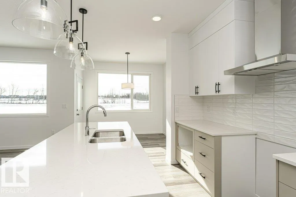 Introducing a spacious 2-storey home built by Anthem, in the vibrant, amenity-rich community of McConachie, located on the north side of Edmonton! This beautiful home offers 1 bedroom on Main Floor, SIDE Entry for Basement, 3 Bedrooms and a Bonus Room on Upstairs, Quartz Counter Tops, Front Double Attached Garage, Vinyl Flooring on main floor, in bathrooms, in laundry room and Carpet on Upper Floor, Convenient Upper Floor Laundry with linen shelf, Stunning lighting fixtures, His/Hers sinks in Ensuite, Walk Thru Pantry, Large dining area, Bright living room, Steps away from pond, Stainless Steel Kitchen Appliances, Fireplace, Open concept main floor maximizes space.*Home is still under construction. *Photos of previous build, interior colors are represented. *Actual colors and upgrades may vary. (id:27476)