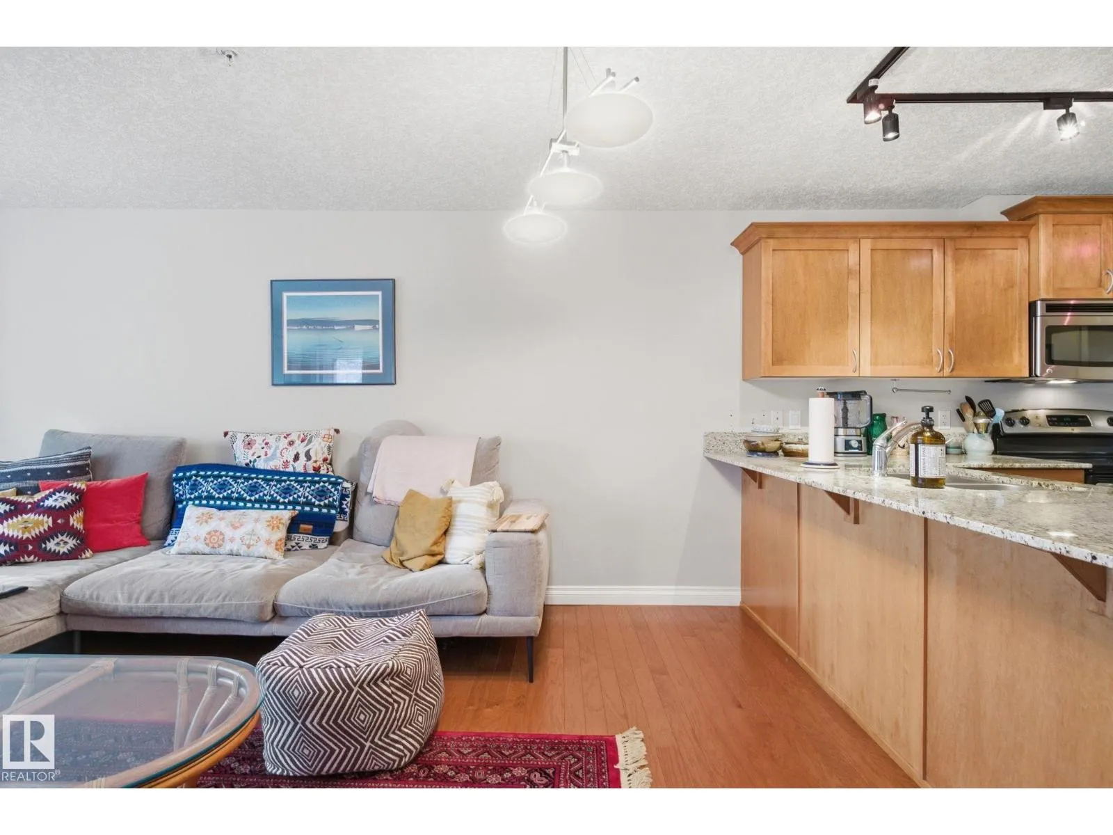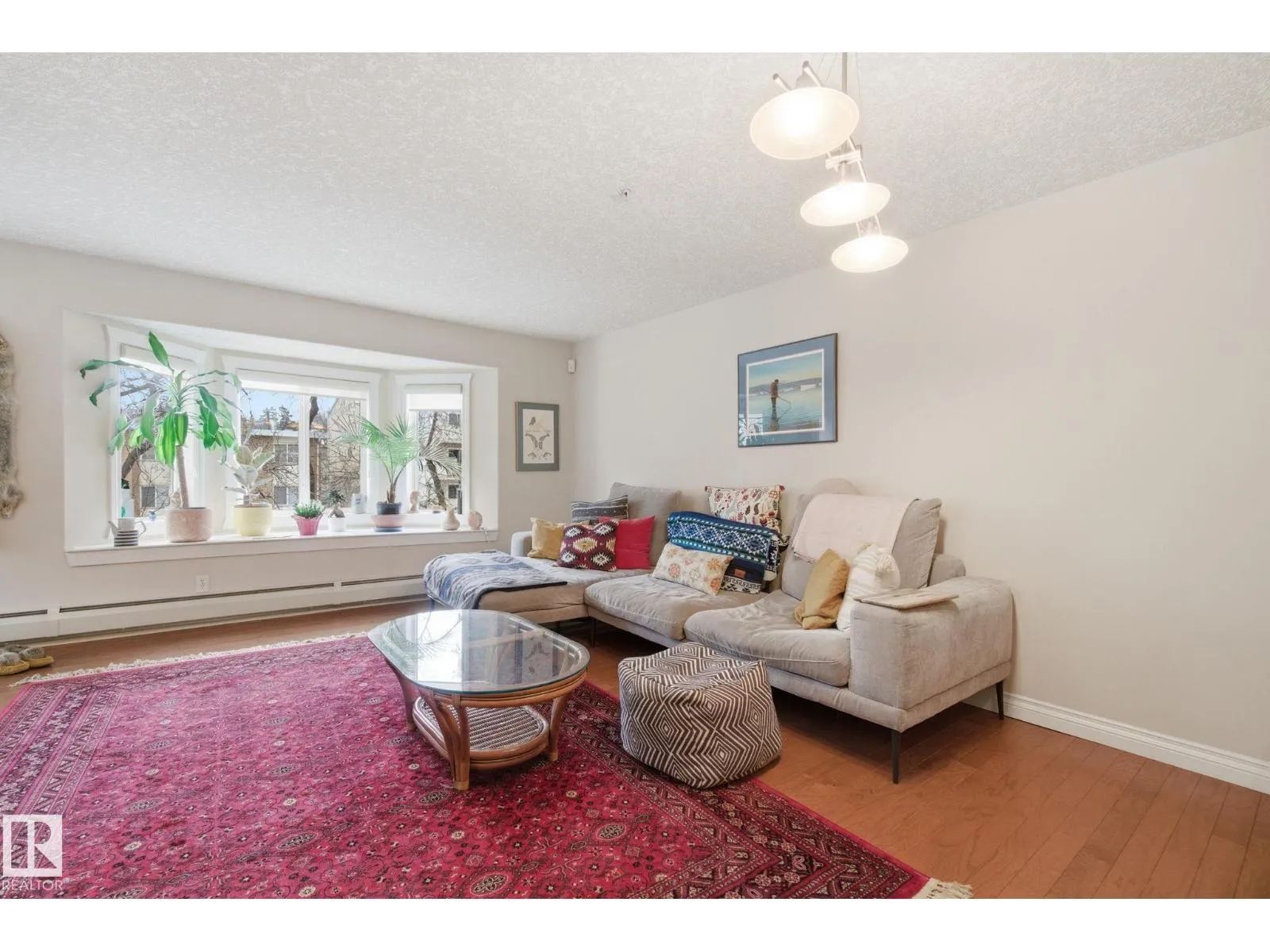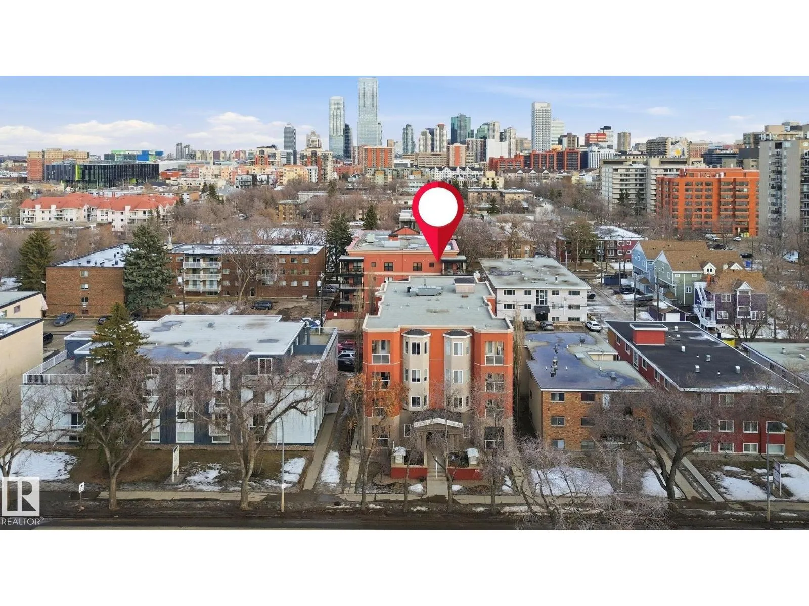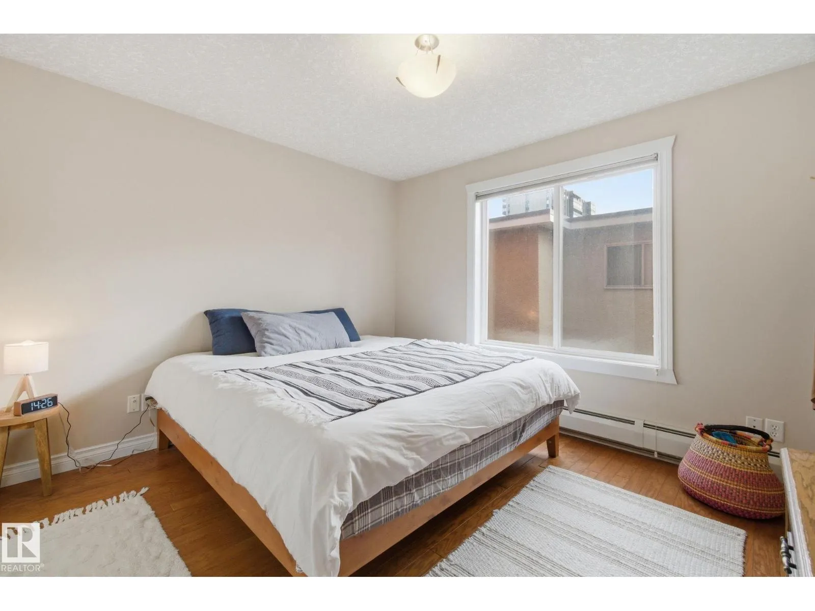 LOCATION, LUXURY & LIFESTYLE in the heart of the Brewery District! This stunning 2-bedroom, 2-bath condo is perfectly located between Jasper Ave & 104 Ave, just steps to the River Valley and minutes to Downtown & Oliver. The open-concept great room features gleaming hardwood floors, large bay windows, and space for dining. The upgraded kitchen offers granite countertops, stainless steel appliances, maple cabinetry, an eat-up bar, and oversized pantry. The bright primary bedroom includes a 4-piece ensuite. Enjoy A/C, in-suite laundry, luxury fixtures, heated underground parking with storage cage, and 2 pets allowed. Step outside to a great-sized private South West balcony overlooking a beautiful treed roadway, perfect for relaxing or entertaining with a gas BBQ outlet. Close to the Ice District, Rogers Place, MacEwan & top restaurants. A must see! (id:27476)