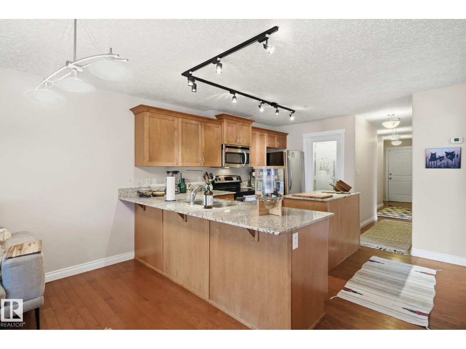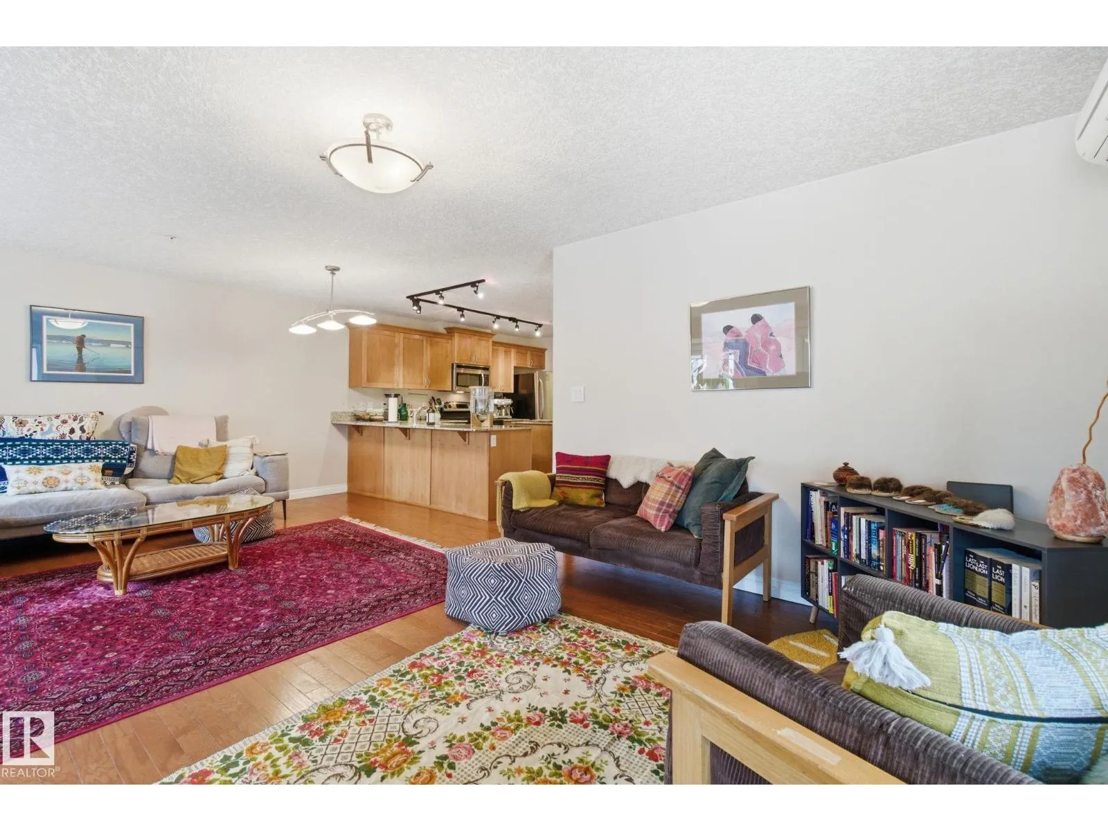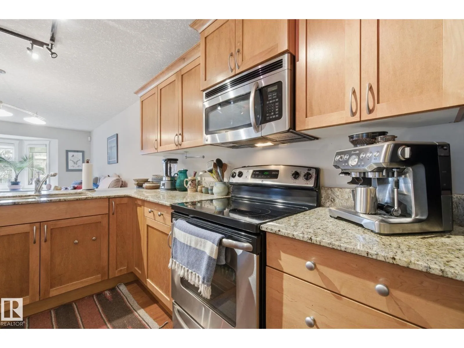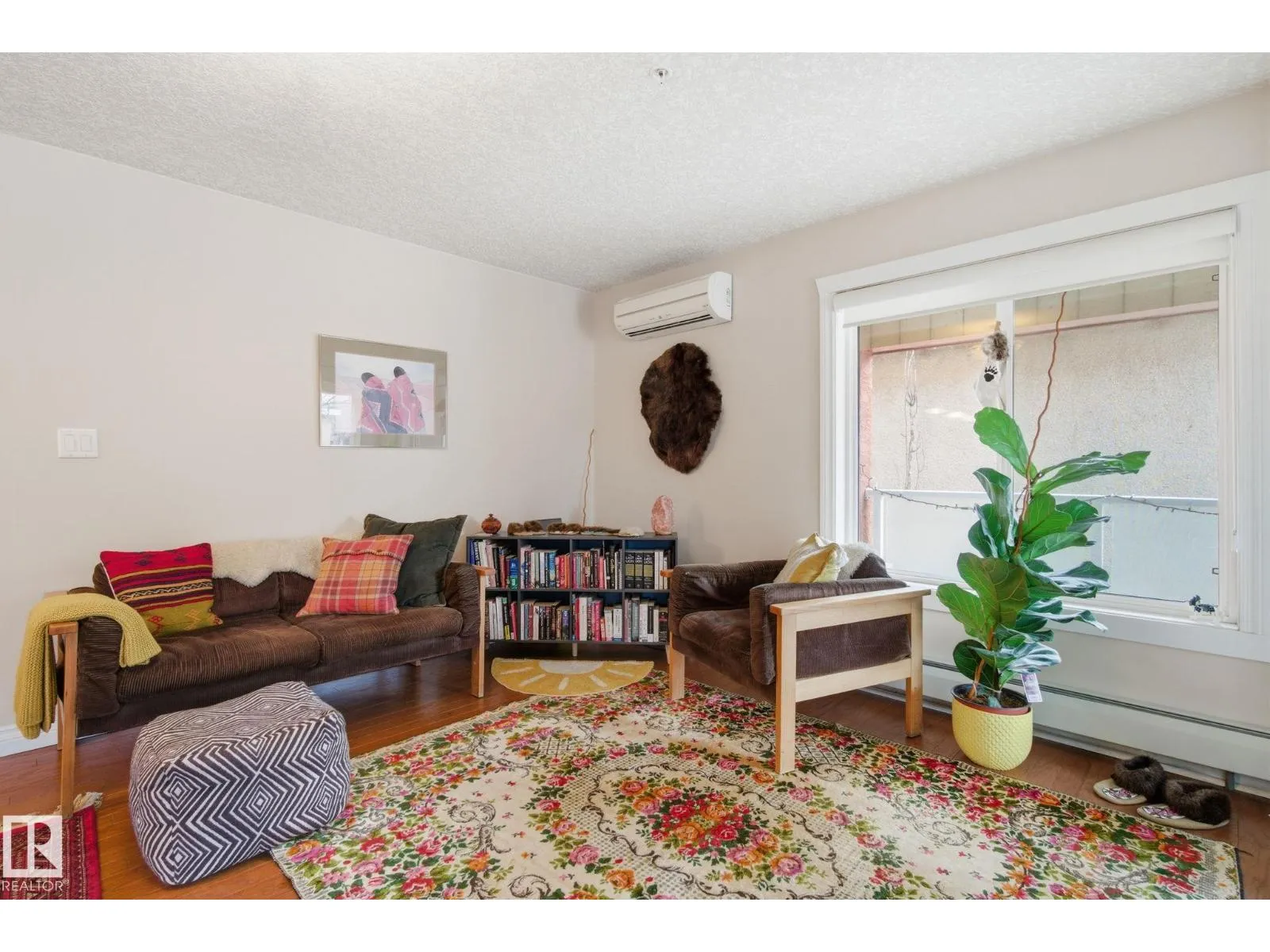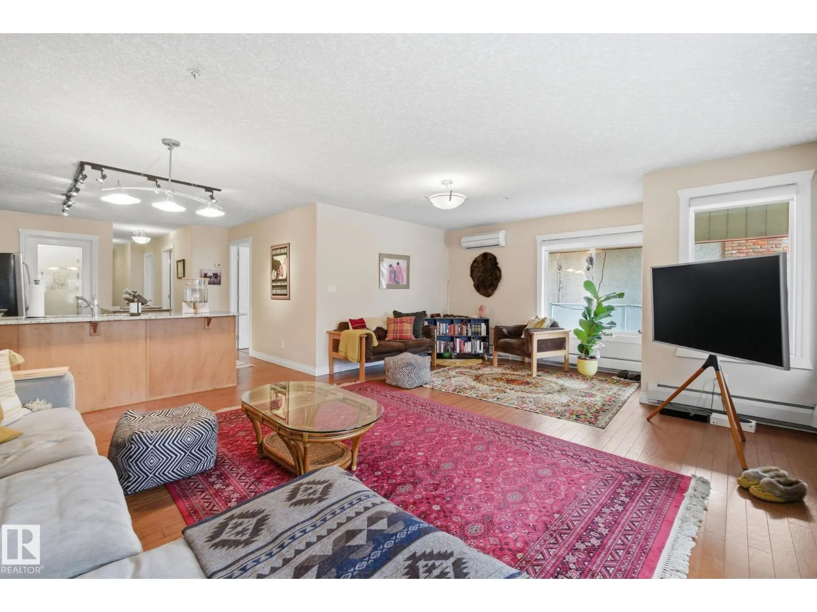 LOCATION, LUXURY & LIFESTYLE in the heart of the Brewery District! This stunning 2-bedroom, 2-bath condo is perfectly located between Jasper Ave & 104 Ave, just steps to the River Valley and minutes to Downtown & Oliver. The open-concept great room features gleaming hardwood floors, large bay windows, and space for dining. The upgraded kitchen offers granite countertops, stainless steel appliances, maple cabinetry, an eat-up bar, and oversized pantry. The bright primary bedroom includes a 4-piece ensuite. Enjoy A/C, in-suite laundry, luxury fixtures, heated underground parking with storage cage, and 2 pets allowed. Step outside to a great-sized private South West balcony overlooking a beautiful treed roadway, perfect for relaxing or entertaining with a gas BBQ outlet. Close to the Ice District, Rogers Place, MacEwan & top restaurants. A must see! (id:27476)