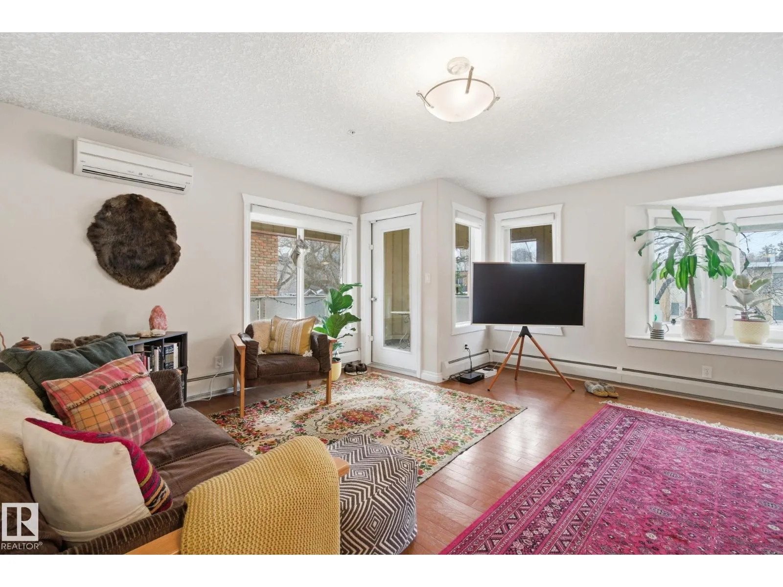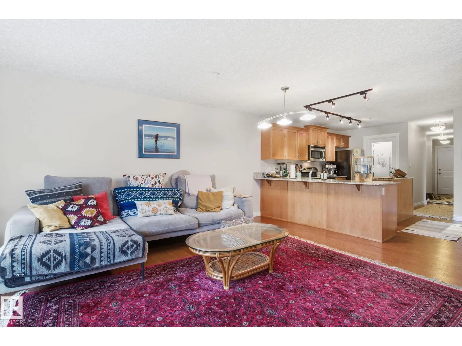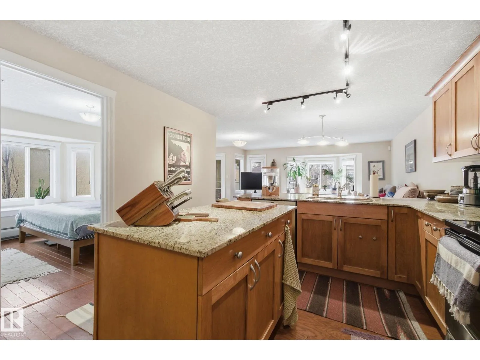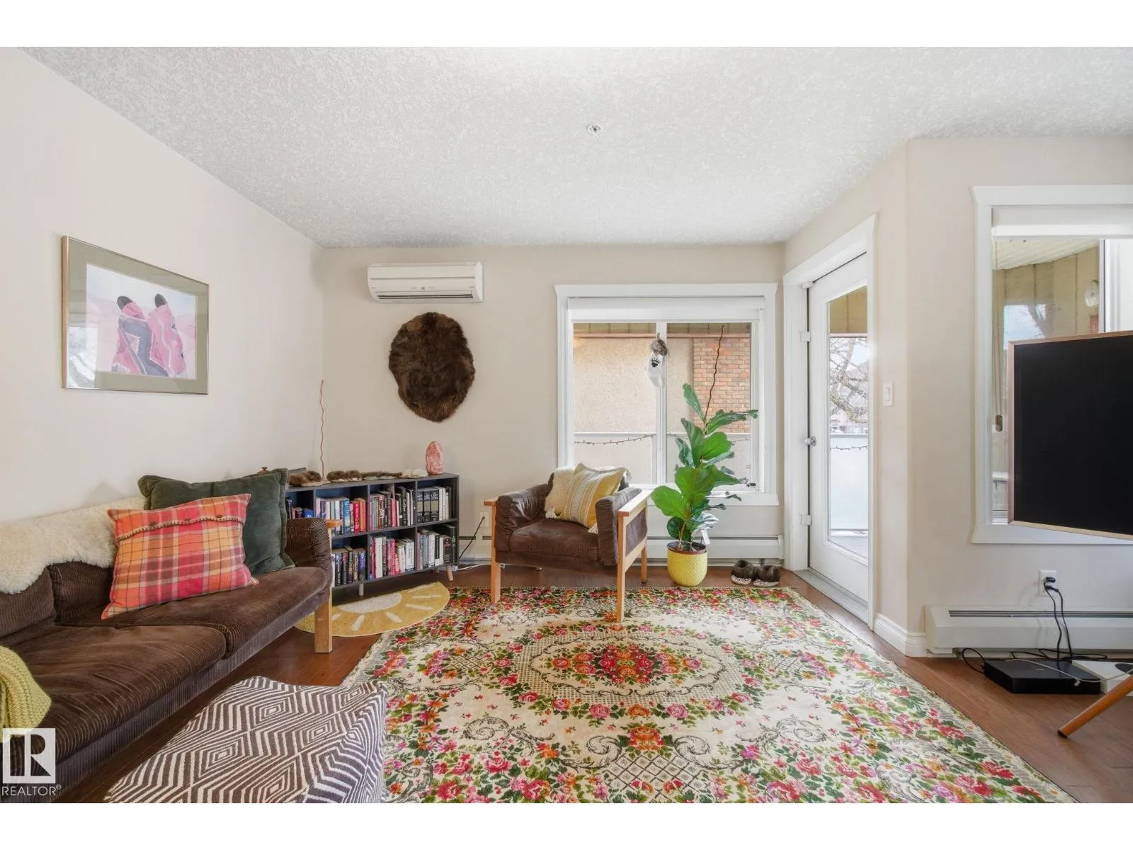 LOCATION, LUXURY & LIFESTYLE in the heart of the Brewery District! This stunning 2-bedroom, 2-bath condo is perfectly located between Jasper Ave & 104 Ave, just steps to the River Valley and minutes to Downtown & Oliver. The open-concept great room features gleaming hardwood floors, large bay windows, and space for dining. The upgraded kitchen offers granite countertops, stainless steel appliances, maple cabinetry, an eat-up bar, and oversized pantry. The bright primary bedroom includes a 4-piece ensuite. Enjoy A/C, in-suite laundry, luxury fixtures, heated underground parking with storage cage, and 2 pets allowed. Step outside to a great-sized private South West balcony overlooking a beautiful treed roadway, perfect for relaxing or entertaining with a gas BBQ outlet. Close to the Ice District, Rogers Place, MacEwan & top restaurants. A must see! (id:27476)