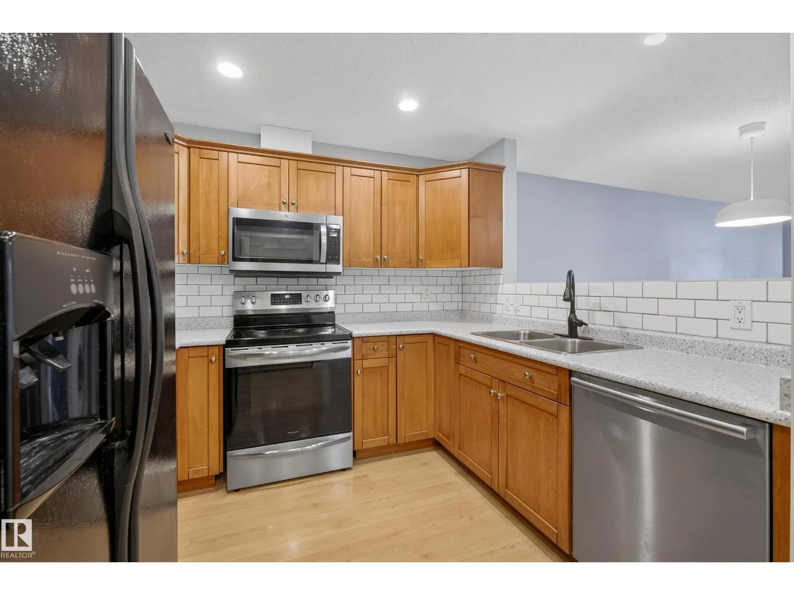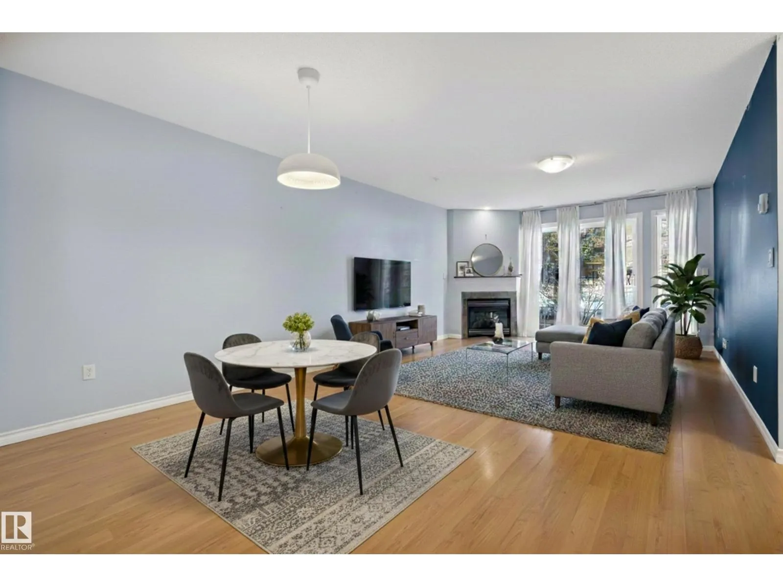 Talk about LOCATION! This trendy ground floor 2 BEDROOM condo has a beautiful private patio that opens up onto the bike path + green belt between MANCHESTER SQUARE & BREWERY DISTRICT. Newer kitchen appliances, air-conditioning, in-suite laundry, spacious layout with room for dining table and large living room area complete with a gas fireplace. This building is immaculately maintained and includes a gym area for owners to use. This property includes one outdoor titled parking stall. If youâre looking for great space with easy access to transit, walkable shopping + amenities, the river valley for cycling + running⦠it doesnât get much better than this! (id:27476)