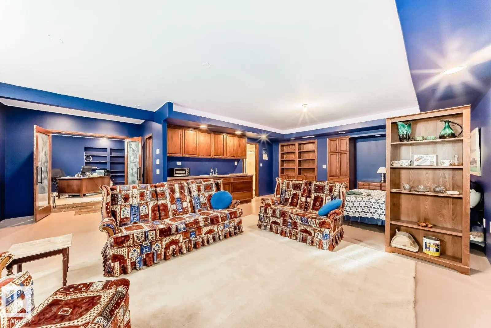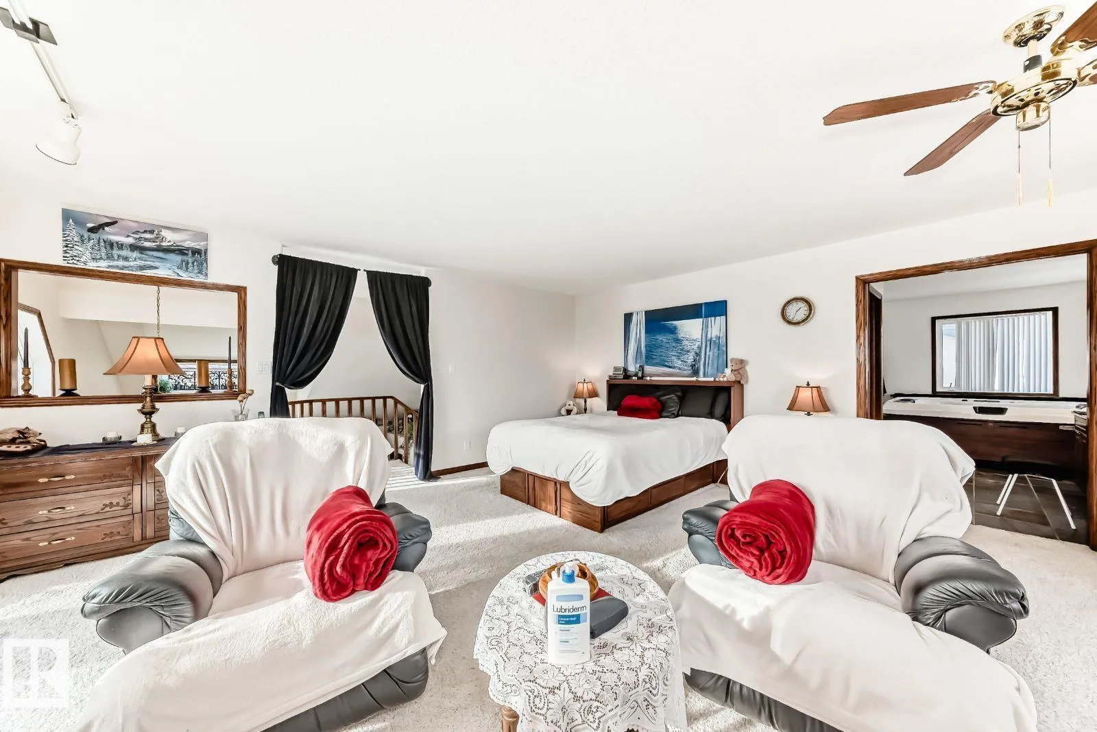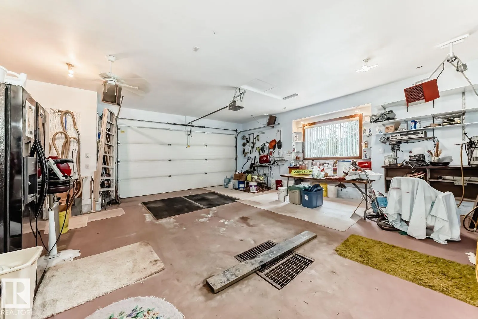 Custom-built 2,206 sqft 1.5 storey home with 1,400 sqft fully finished basement (potential of 2 bedrooms) and a 945 sqft 3+ car heated garage with 8â insulated doors and parking for 8 vehicles. Main floor offers open-concept kitchen, dining & family room, formal living, formal dining (could convert to bedroom), bedroom with 4pc bath, and pantry/laundry with extra fridge. Upstairs features a 520 sqft primary retreat with walk-in closet, 4pc ensuite, sitting area with gas fireplace & coffee bar, plus east-facing deck with park views. Basement includes rumpus room with kitchenette, bedroom, office/bedroom, hobby room, 3pc bath, in-floor heat, sound-insulated ceiling & storage. TRIPLE garage fully insulated (incl. floor) with 220V, hot/cold water, floor drain & natural gas hookup. Highlights: central A/C with ducting for summer cooling and winter fresh air to keep basement dry, spa-inspired ensuite with steam shower, laundry chute, 2 decks, professional landscaping, quiet park location with ample wildlife. (id:27476)