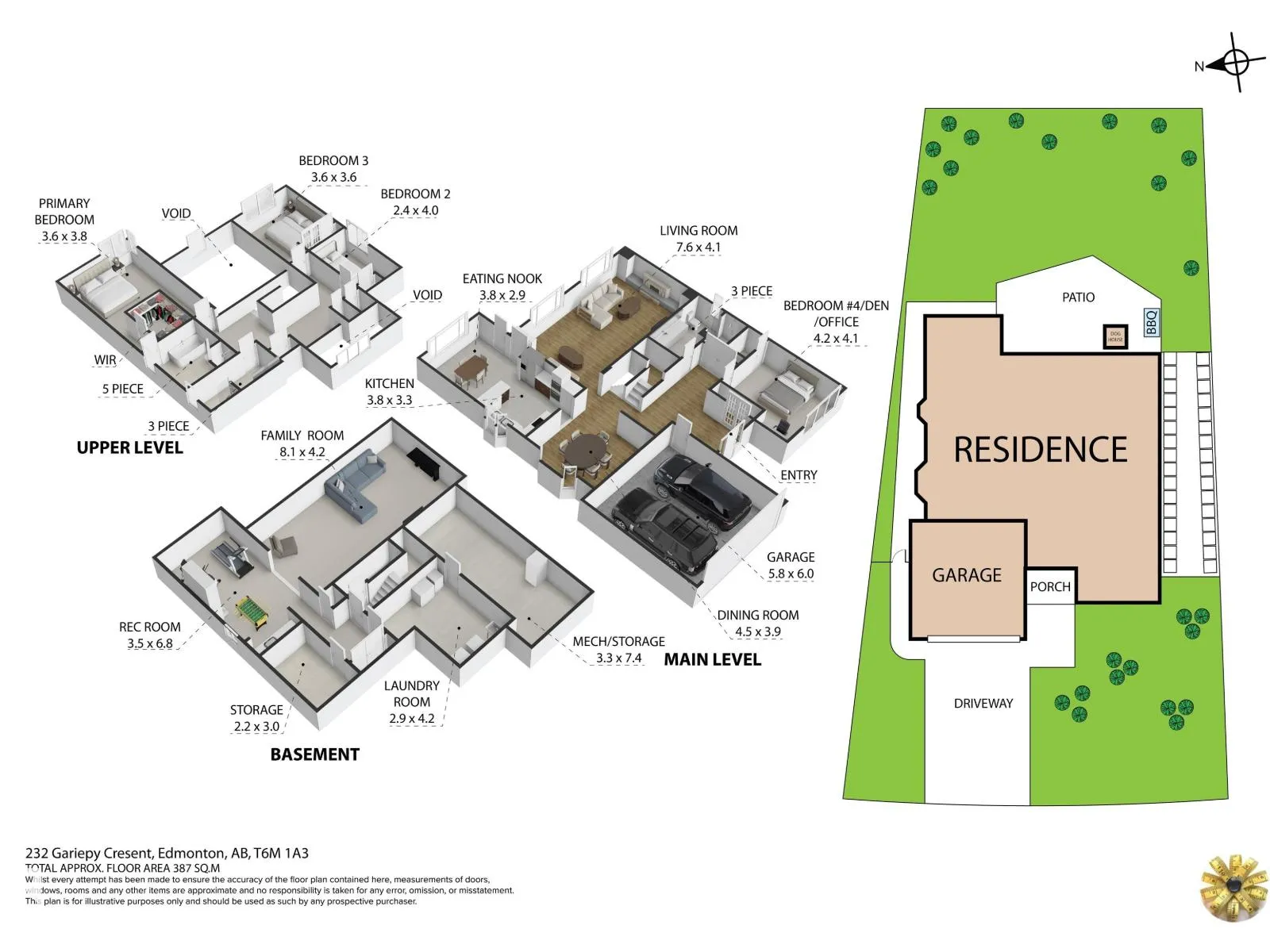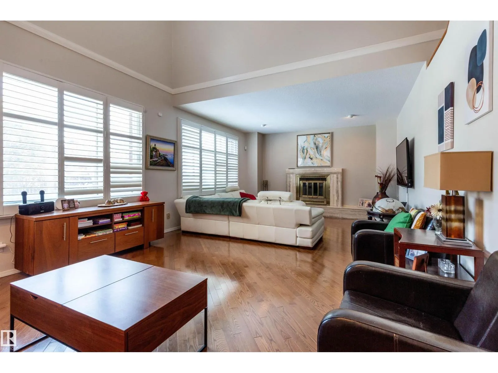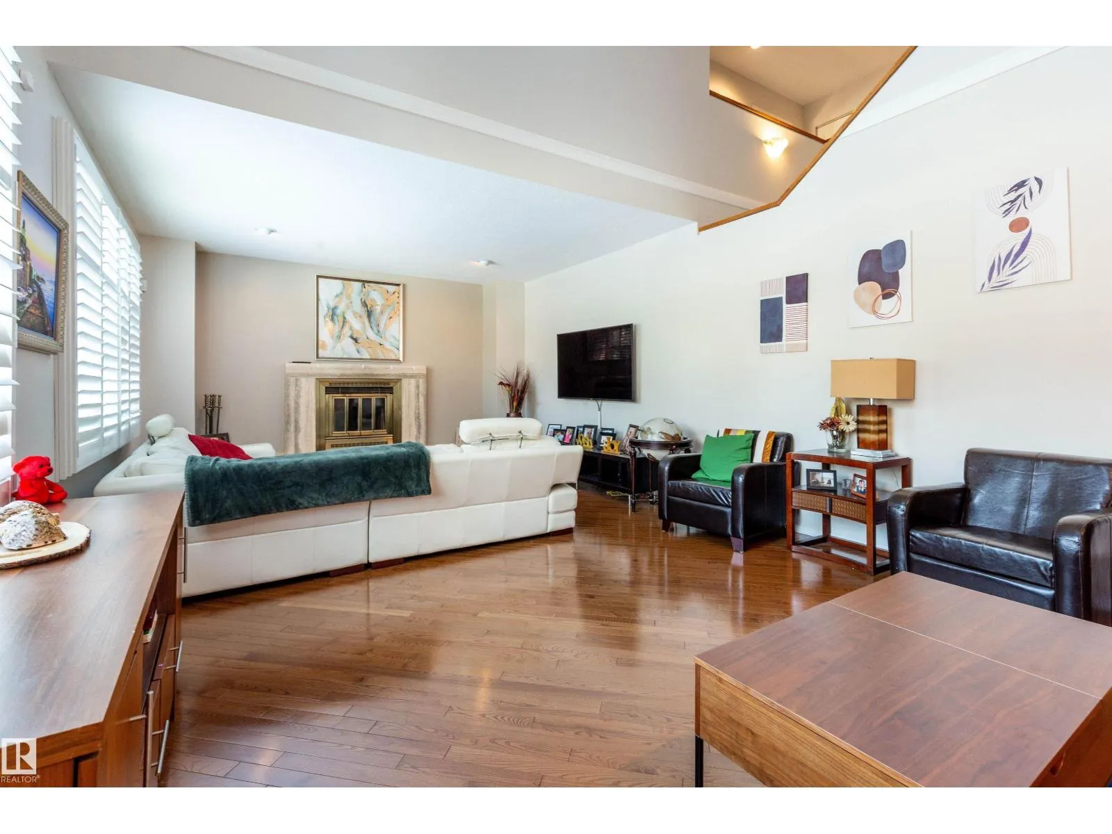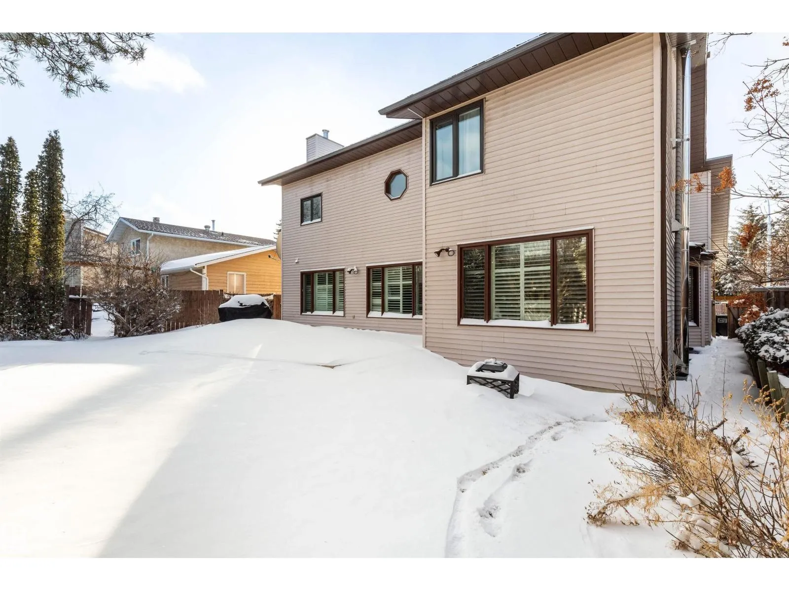 Great Gariepy family home! This 4 bedroom, vaulted and open 2 storey home offers over 4,000 sq ft of living space. Large living room with wood burning fireplace and vaulted ceiling open to the 2nd floor! Main level 4th bedroom. Formal dining room! Kitchen is spacious, with large windows showing the private backyard and resurfaced large deck. Upstairs features wide hallways for families and a laundry chute! Primary bedroom includes walk-in closet and luxurious new 5-piece ensuite with rain shower and soaker tub. New upper windows! Newly Painted. Finished basement offers rec room with wet bar, storage room. Large laundry room with sink. Hi efficiency furnaces and large work area, with built in vacuum as well! Heated double garage, landscaped yard with sprinkler system front/back. AC, Close To Rahma Mosque, Churches and Synagogues! Great schools nearby! Marketplace at Callingwood, Hawkstone Shopping, Lois Hole Library, Hockey rink, Jamie Platz YMCA, Super family location on a quiet updated Gariepy street! (id:27476)