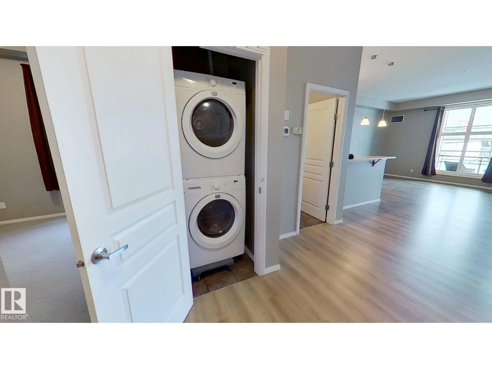 Luxury 1 bedroom, 1 bathroom downtown condo with 1 underground parking stall and small storage cage incl. Condo unit is approximately 850 square feet with an open floor plan and high ceilings, with a large balcony that has a hookup for natural gas BBQ with city view. New plank flooring, Interior walls professionally painted, Insuite washer/dryer, electric range/oven, microwave w/hood fan, refrigerator & dishwasher included. Small pets may be approved by the Condo Board. The 4 story building has 2 elevators and a security system with fobs, intercom and video surveillance cameras. The condo unit is within walking distance to MacEwan University, Roger's Arena and the Brewery District with stores, pubs and restaurants. The condo is approximately 1 block away from the future LRT expansion from downtown to West Edmonton Mall, and access to Edmonton Transit buses within 1 block. Each condo unit is self contained with its own hot water tank and natural gas furnace, so utilities are not included in the condo fees. (id:27476)