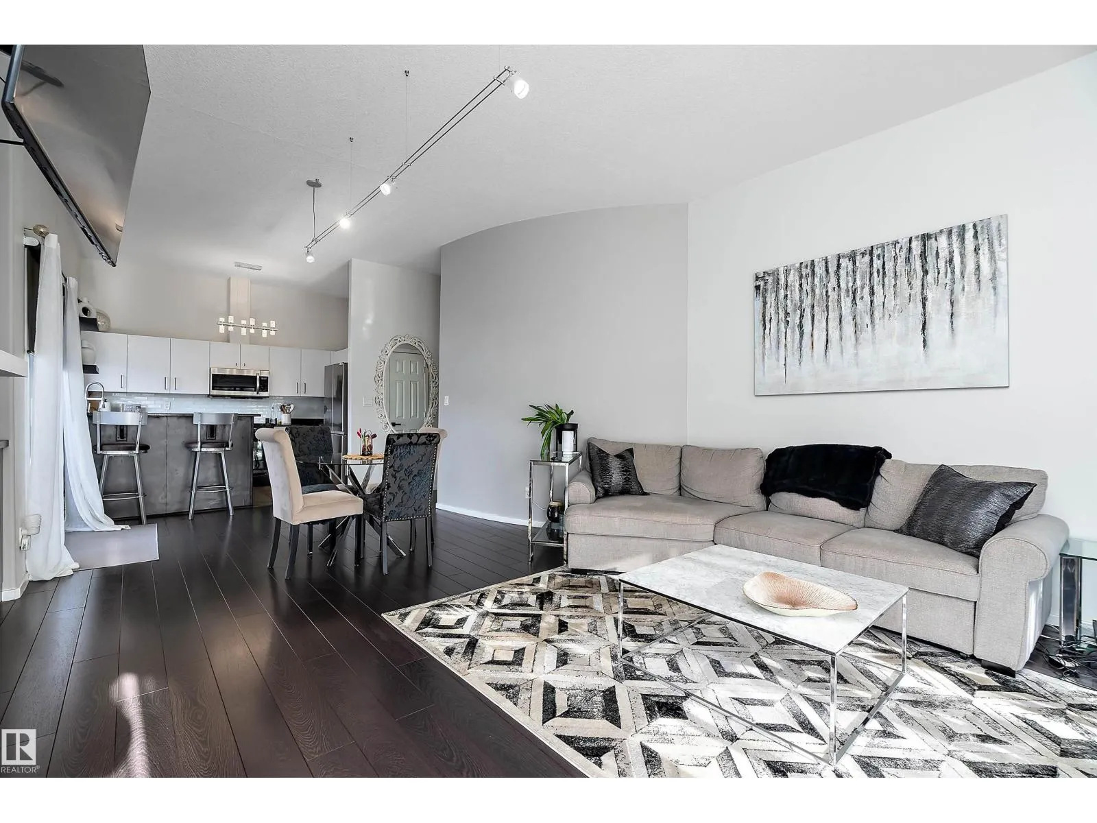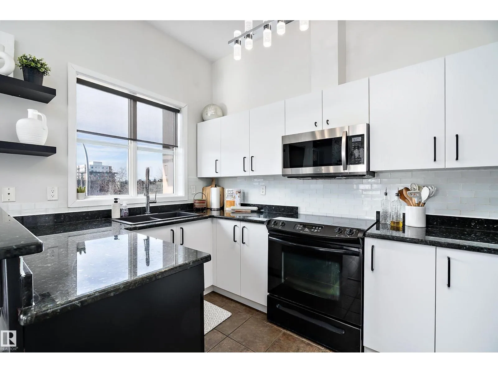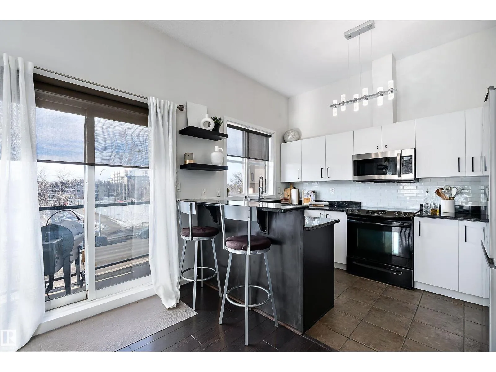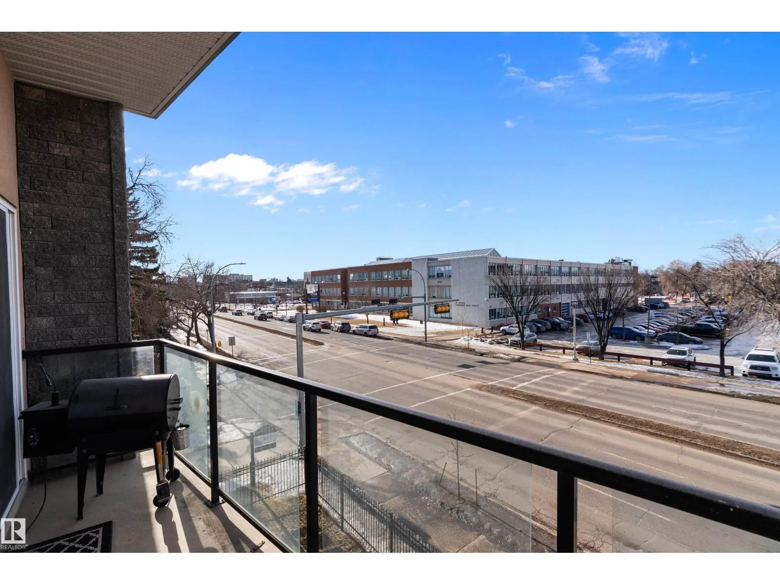 This impressive 1-bedroom plus den condo blends modern living with warm, contemporary design, featuring soaring 10-foot ceilings, expansive windows, and striking architectural details that make the space feel bright, open and full of character. The main living area is anchored by a stunning stone feature wall with a gas fireplace, creating the perfect mix of comfort and urban flair. The kitchen is beautifully finished with granite countertops, sleek cabinetry, and a raised peninsula ideal for casual dining or entertaining. The versatile den offers great flexibility for a home office, creative space, or guest area. In the spacious south-facing primary bedroom, natural light pours in while generous storage adds everyday function. Complete with in-suite laundry, air conditioning, and a private balcony with city views, this home is just steps from Rogers Place, the Ice District, MacEwan University, NAIT, LRT, the Royal Alexandra Hospital, and some of Edmontonâs best dining and entertainment. It's a must see. (id:27476)