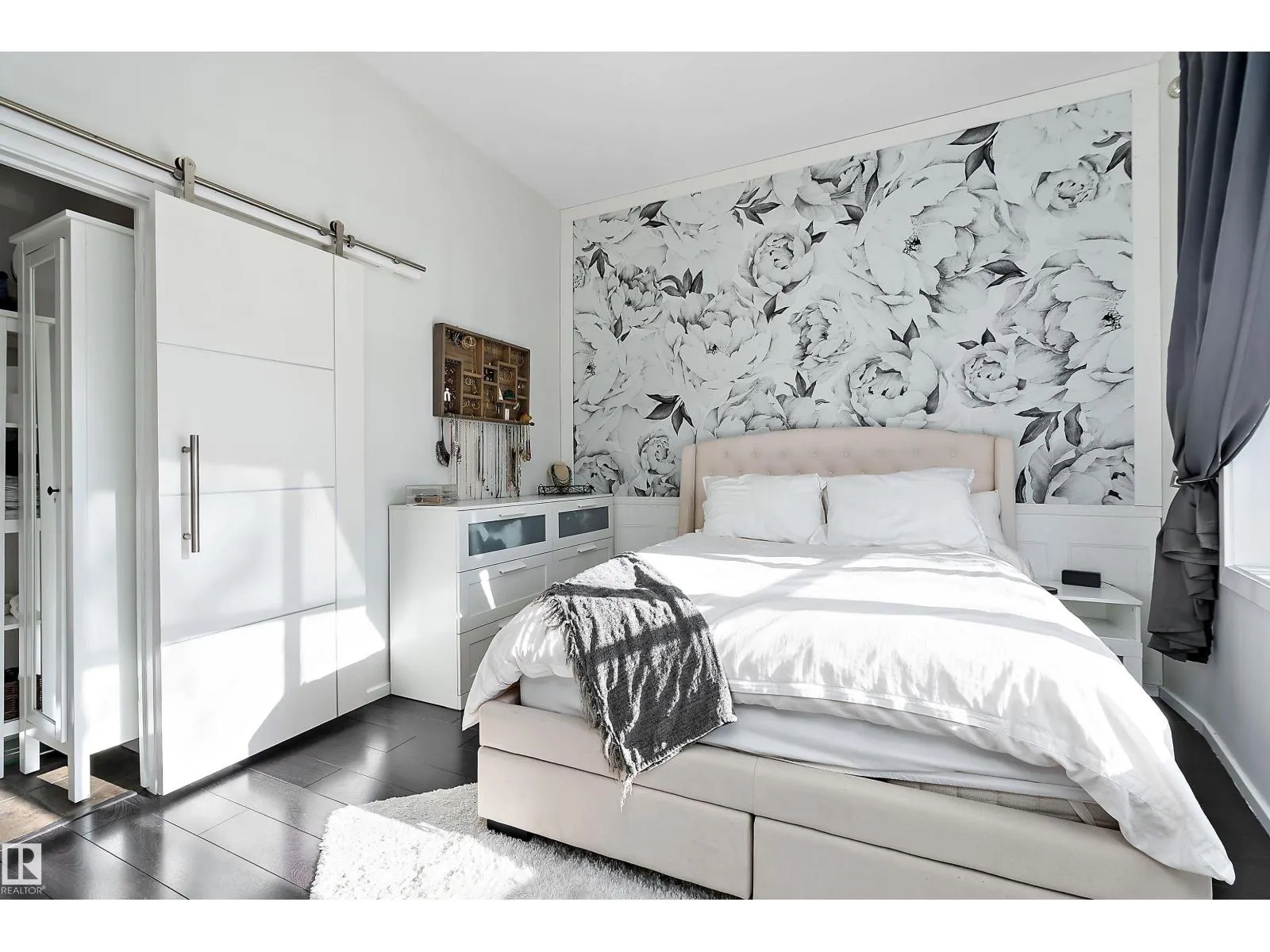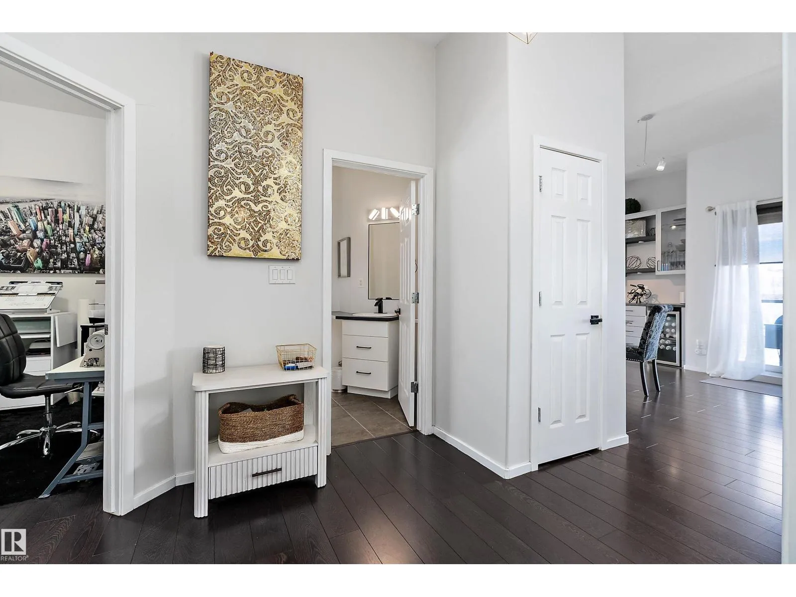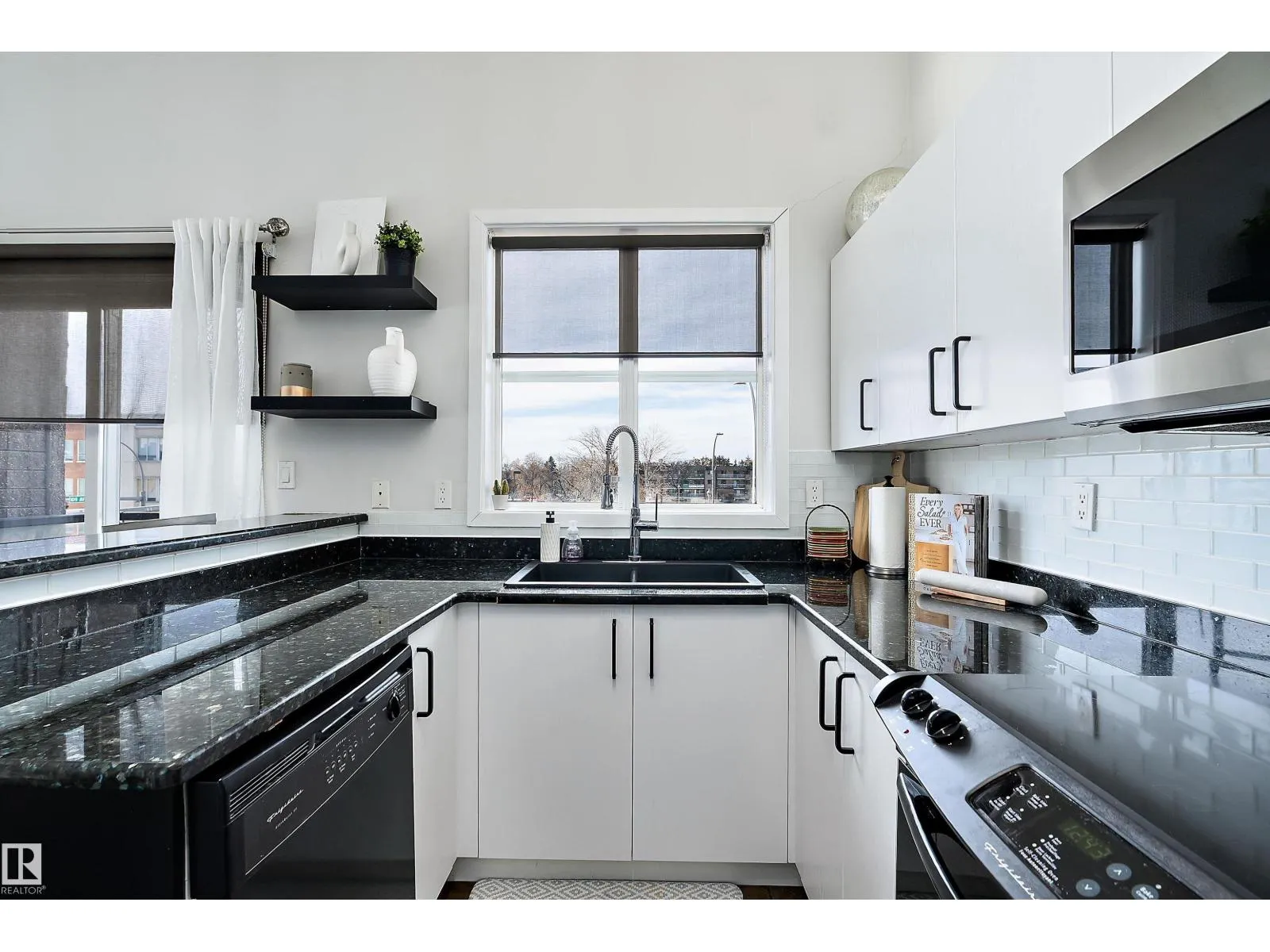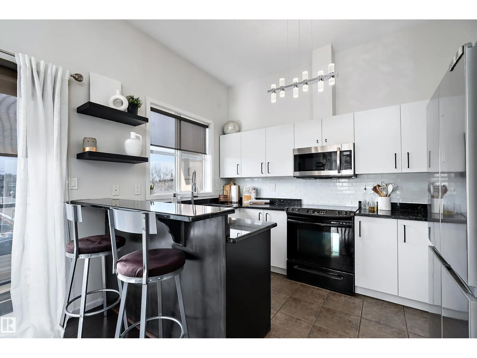 This impressive 1-bedroom plus den condo blends modern living with warm, contemporary design, featuring soaring 10-foot ceilings, expansive windows, and striking architectural details that make the space feel bright, open and full of character. The main living area is anchored by a stunning stone feature wall with a gas fireplace, creating the perfect mix of comfort and urban flair. The kitchen is beautifully finished with granite countertops, sleek cabinetry, and a raised peninsula ideal for casual dining or entertaining. The versatile den offers great flexibility for a home office, creative space, or guest area. In the spacious south-facing primary bedroom, natural light pours in while generous storage adds everyday function. Complete with in-suite laundry, air conditioning, and a private balcony with city views, this home is just steps from Rogers Place, the Ice District, MacEwan University, NAIT, LRT, the Royal Alexandra Hospital, and some of Edmontonâs best dining and entertainment. It's a must see. (id:27476)
