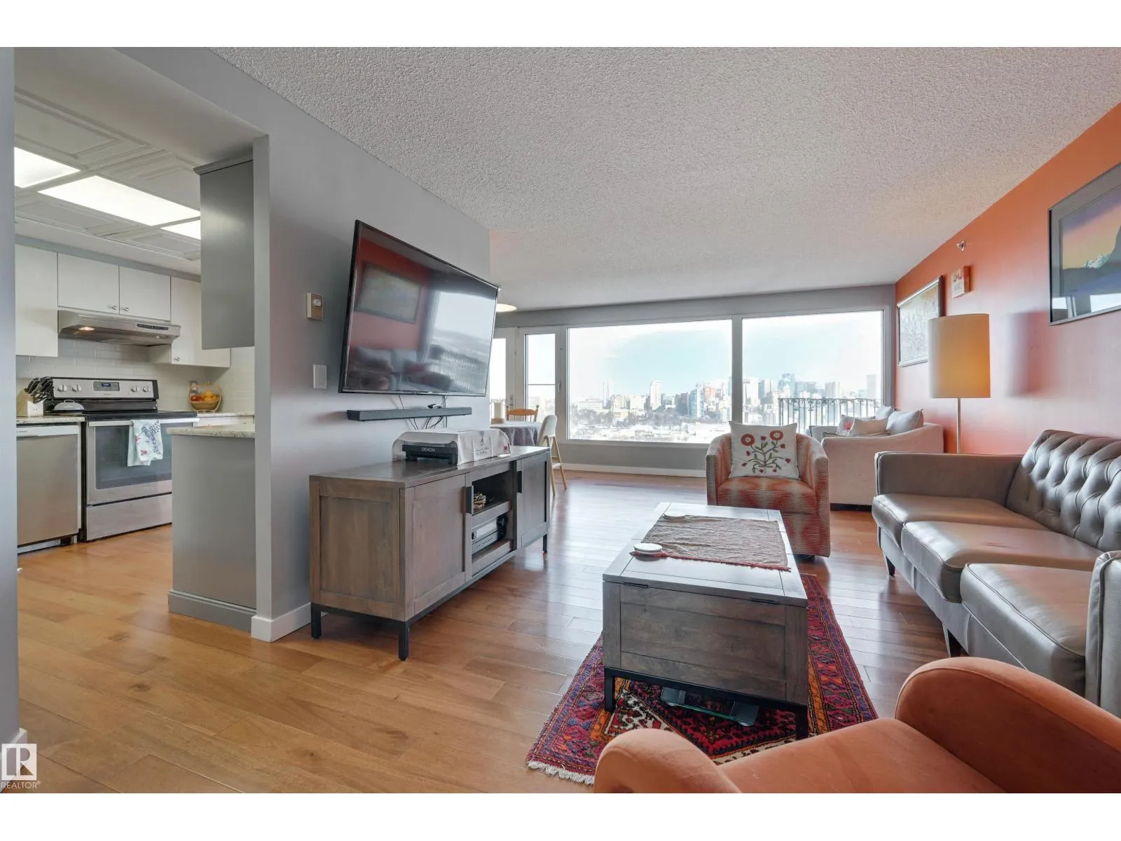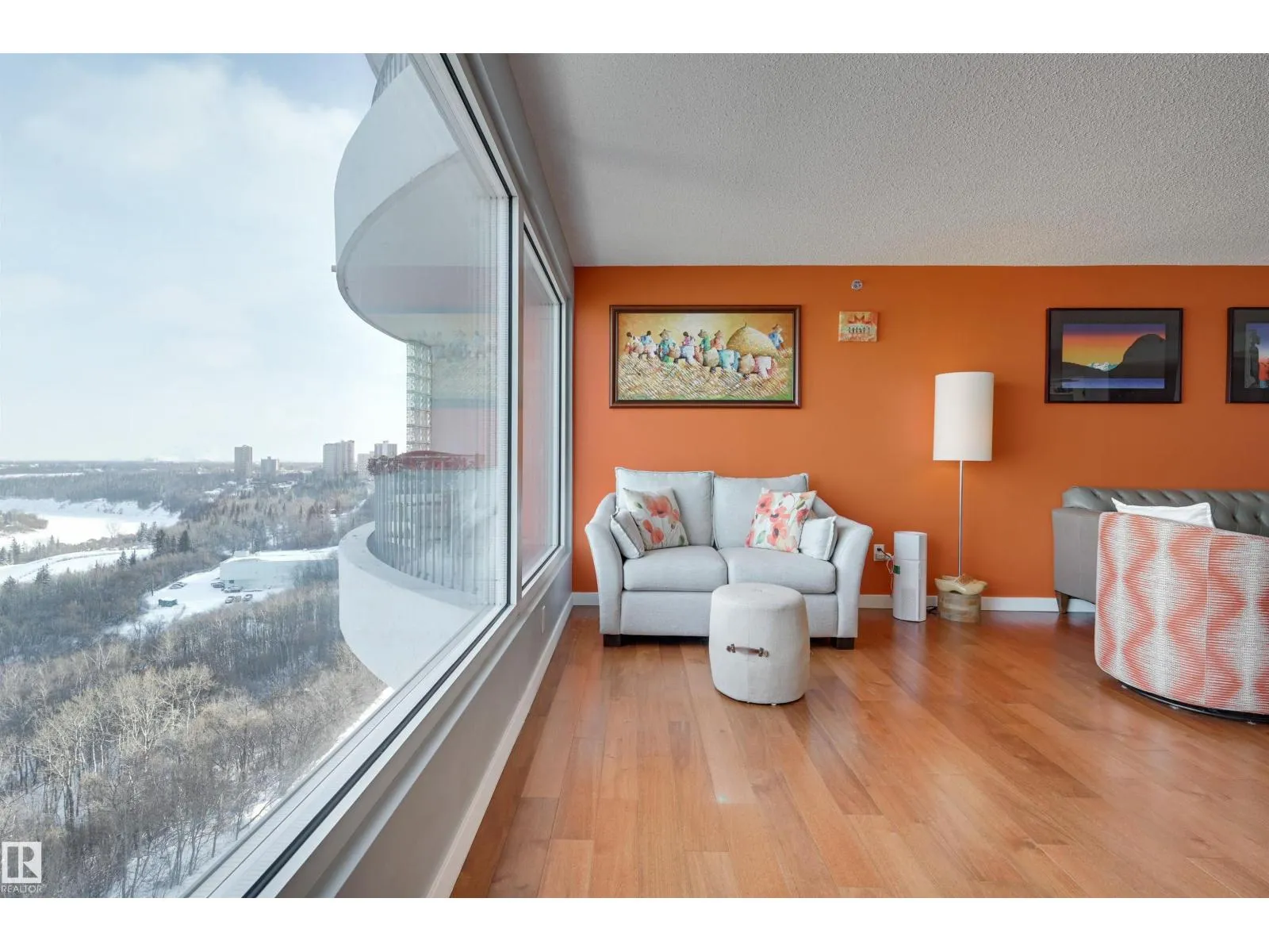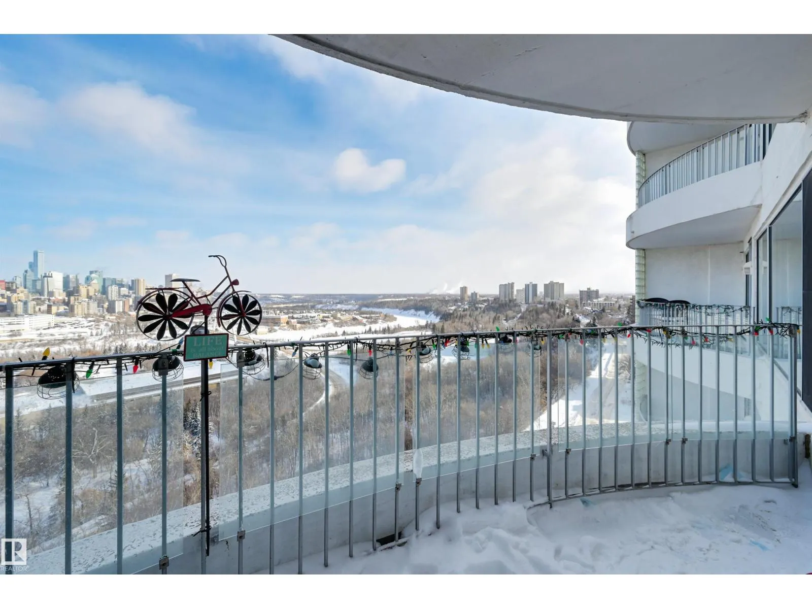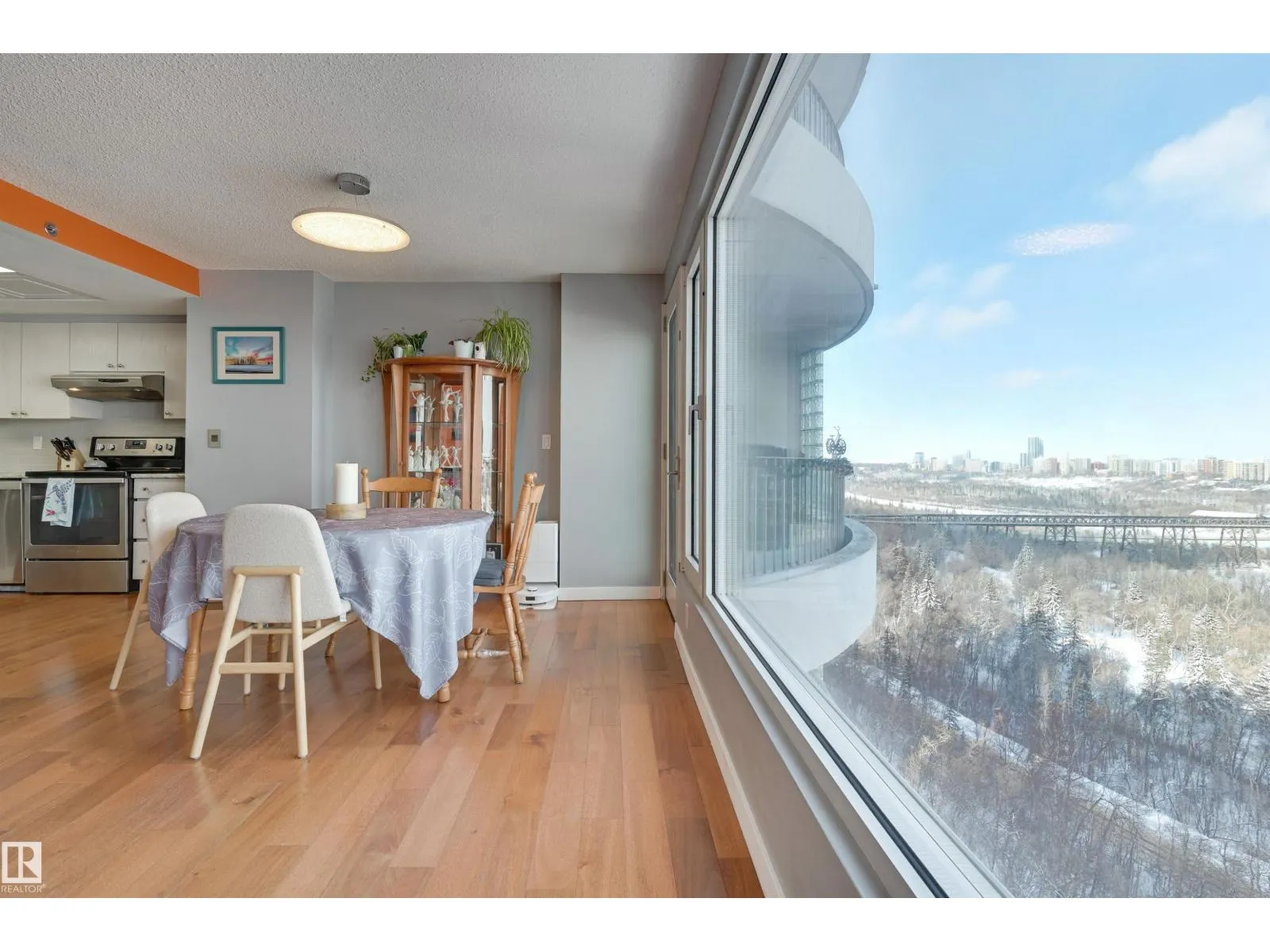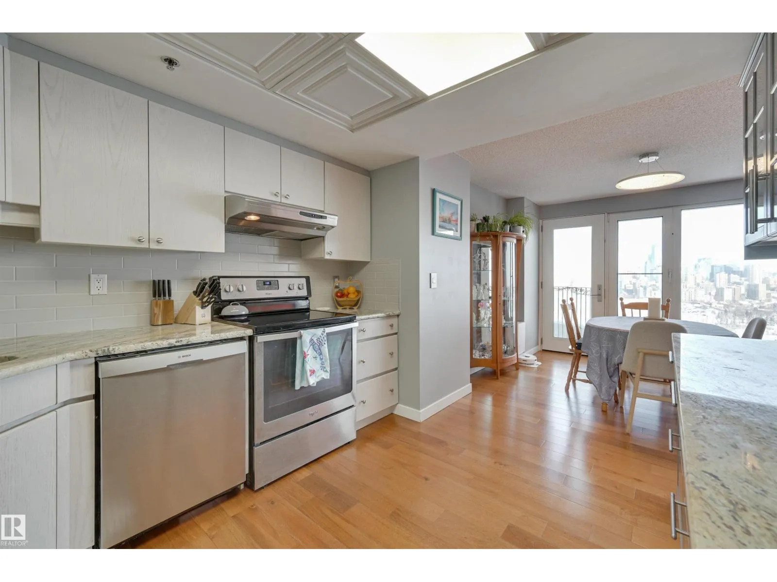 SPECTACULAR RIVER VALLEY & DOWNTOWN VIEWS from this 1080 sq.ft. 2 bedroom 2 bathroom condo in RIVERWIND conveniently located on Sask. Dr. with the walking/biking trails at your doorstep, short walk to shops, cafes, the U of A & Whyte Avenue. TWO BALCONIES & great views from every room. Bedrooms are at opposite ends of the living area. 3 piece main bathroom next to the 2nd bedroom & a 4 piece ensuite. RENOVATED with engineered hardwood flooring throughout except for tile in the bathrooms, kitchen cabinets with granite countertops & stainless steel appliances, granite countertops in both bathrooms & tile surround in the ensuite & a new shower in the 3 piece bathroom. Included is the fridge, ceramic top stove, hood fan, dishwasher, Bosch washer & dryer & window coverings. U/G parking #338 on P3 & an extra storage locker #6 on P3. Amenities include a fitness room, party room with an outdoor patio, games room, guest suite, workshop. Exceptional on-site managers! Pet friendly. Well maintained building! (id:27476)