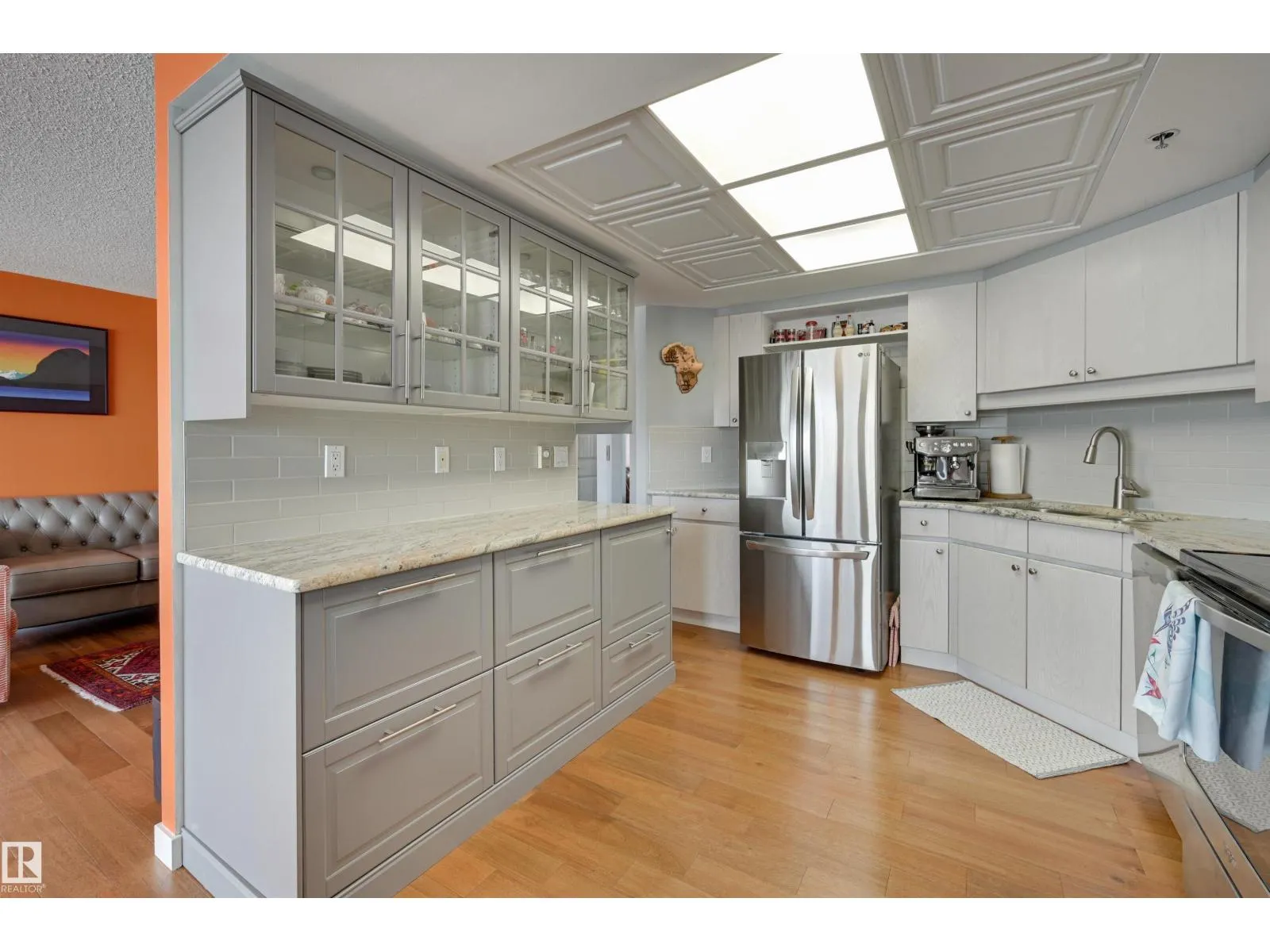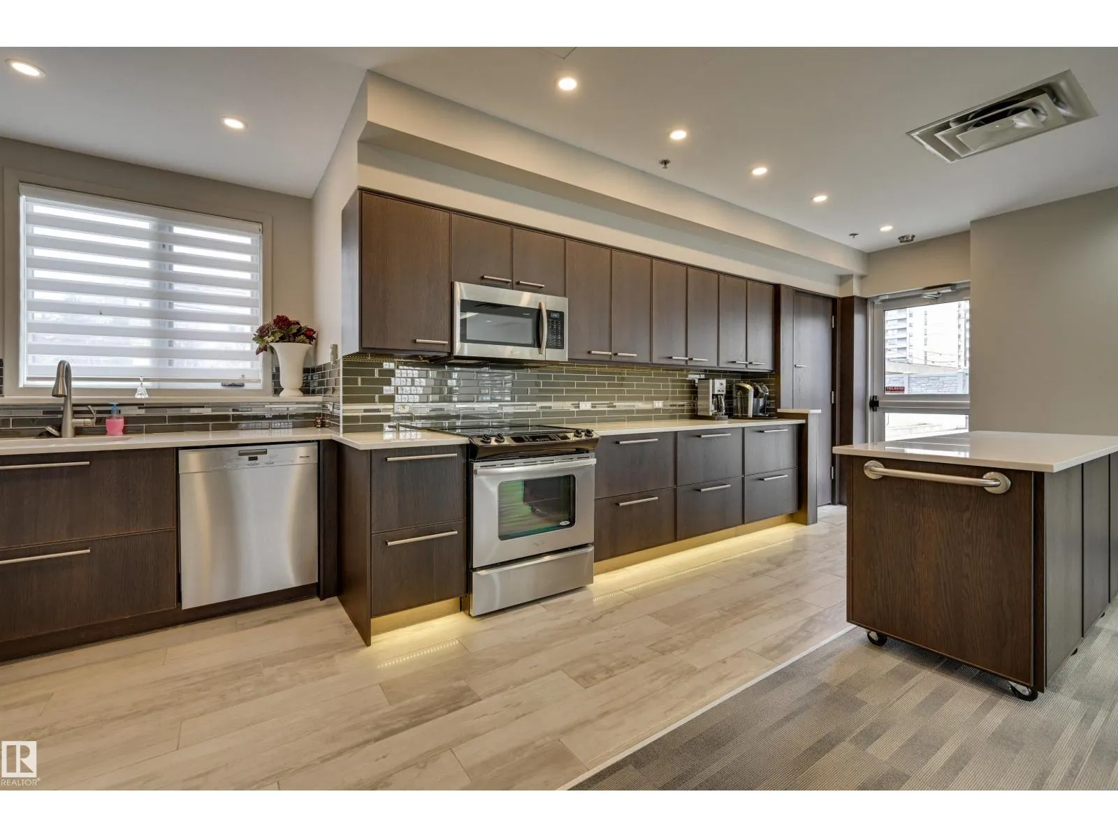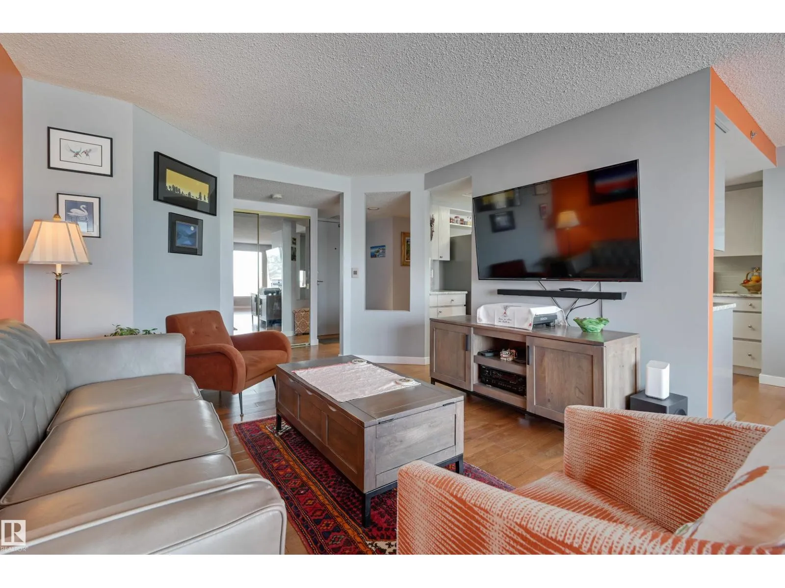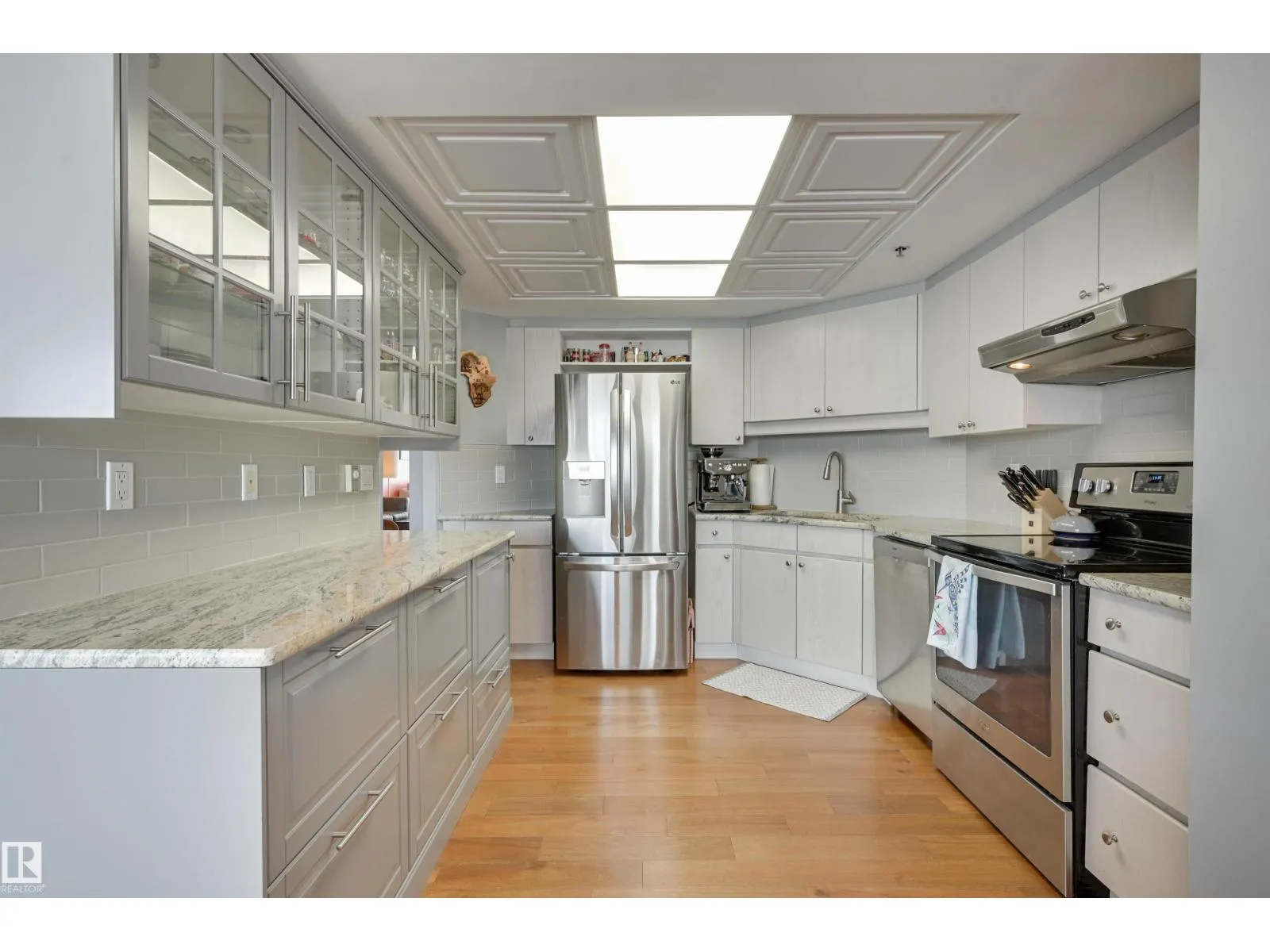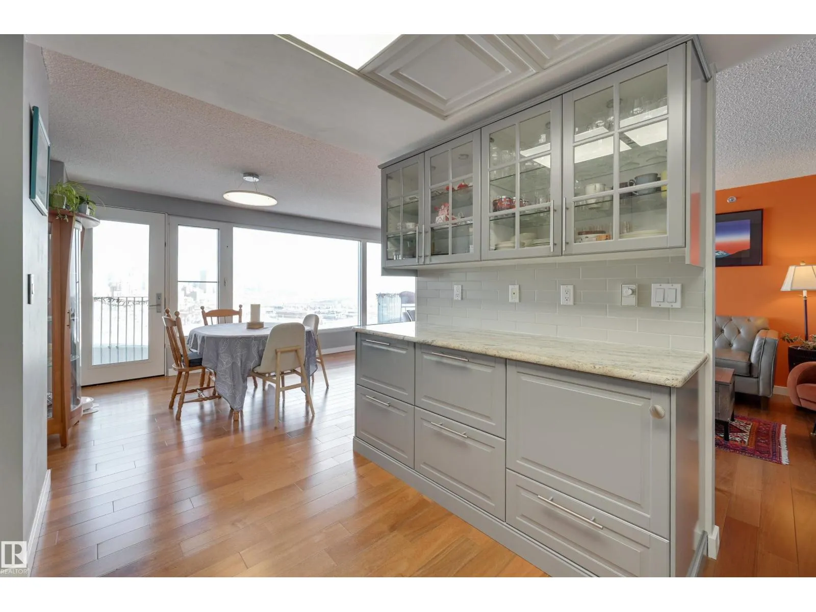 SPECTACULAR RIVER VALLEY & DOWNTOWN VIEWS from this 1080 sq.ft. 2 bedroom 2 bathroom condo in RIVERWIND conveniently located on Sask. Dr. with the walking/biking trails at your doorstep, short walk to shops, cafes, the U of A & Whyte Avenue. TWO BALCONIES & great views from every room. Bedrooms are at opposite ends of the living area. 3 piece main bathroom next to the 2nd bedroom & a 4 piece ensuite. RENOVATED with engineered hardwood flooring throughout except for tile in the bathrooms, kitchen cabinets with granite countertops & stainless steel appliances, granite countertops in both bathrooms & tile surround in the ensuite & a new shower in the 3 piece bathroom. Included is the fridge, ceramic top stove, hood fan, dishwasher, Bosch washer & dryer & window coverings. U/G parking #338 on P3 & an extra storage locker #6 on P3. Amenities include a fitness room, party room with an outdoor patio, games room, guest suite, workshop. Exceptional on-site managers! Pet friendly. Well maintained building! (id:27476)