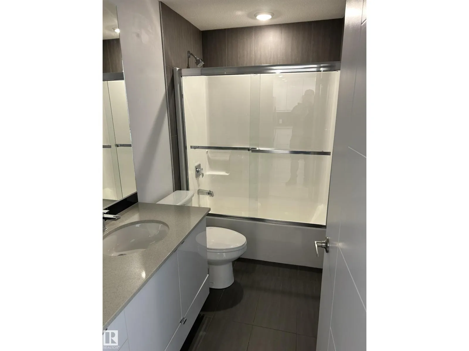his two-bedroom condo + den in Cascade Luxury Condos offers 1200 sq ft of upscale living in Bonnie Doon's French Quarter. Upgrades abound, from the chef's kitchen to the spacious master bedroom with walk-thru closet to the 5-piece ensuite complete with luxury soaker tub and twin sinks. Literally steps from Campus Saint-Jean, Mill Creek Ravine, Whyte Ave, coffee shops, restaurants and minutes from downtown. Unit is like new with upgrades galore! Good size kitchen with plenty of cabinets, quartz countertops, soft close doors/drawers, huge island with a built-in work area and all upgraded SS appliances. Large living area which leads to a large Main floor south facing balcony and gas line. 9-ft ceilings, in-suite laundry, central A/C, titled heated underground parking. Move-in ready, this unit promises a serene living experience with quick possession available (id:27476)