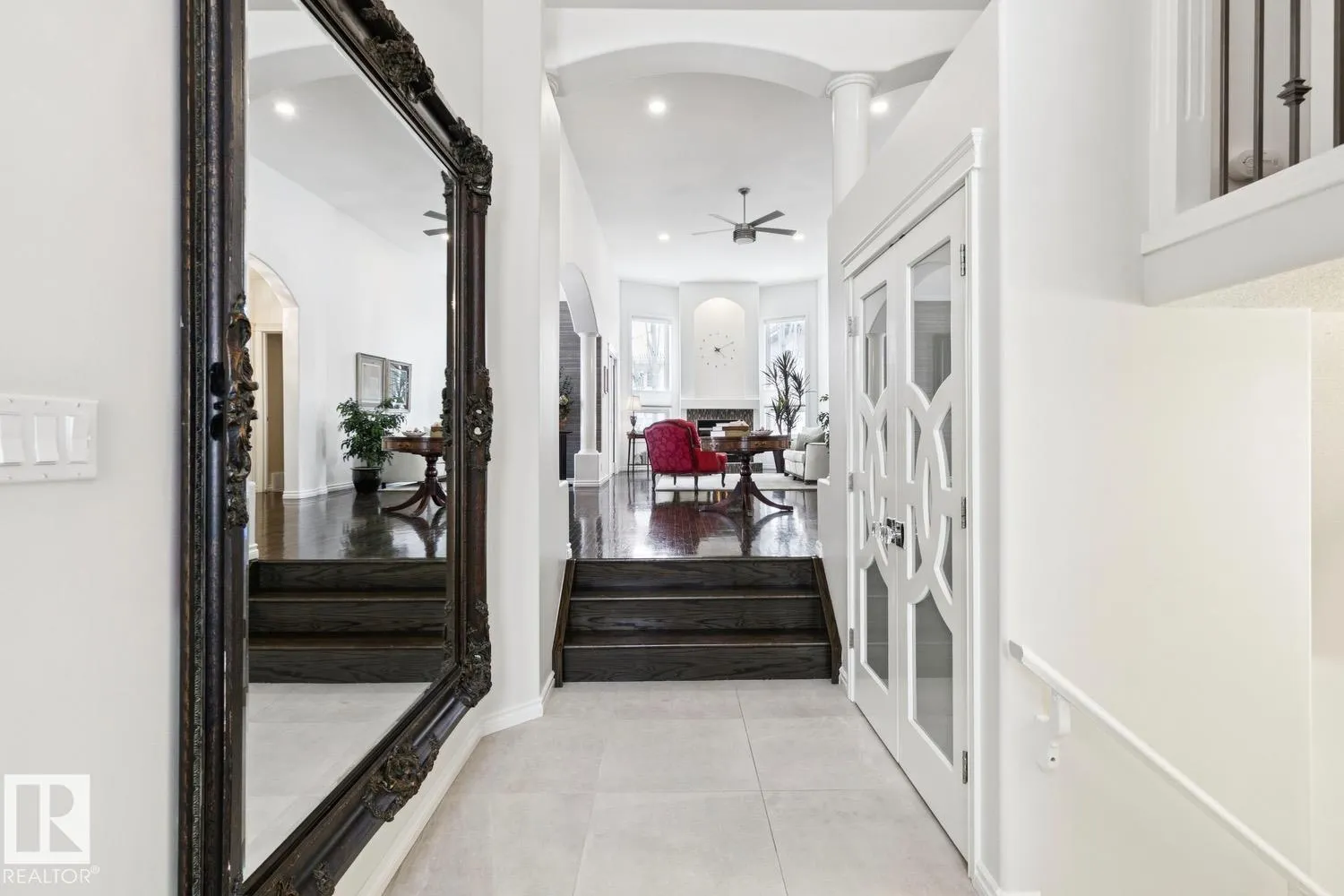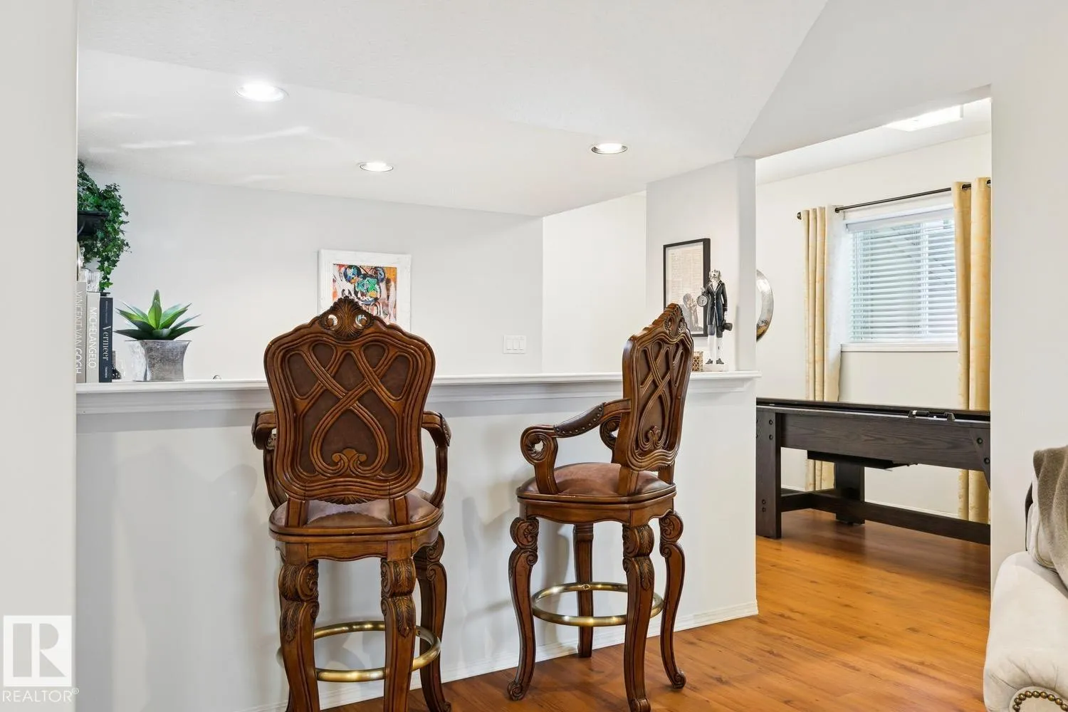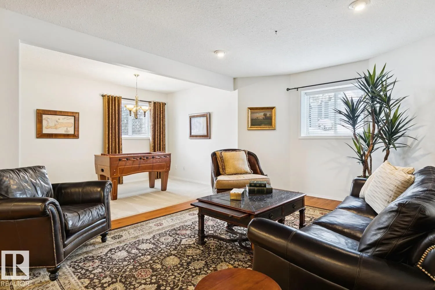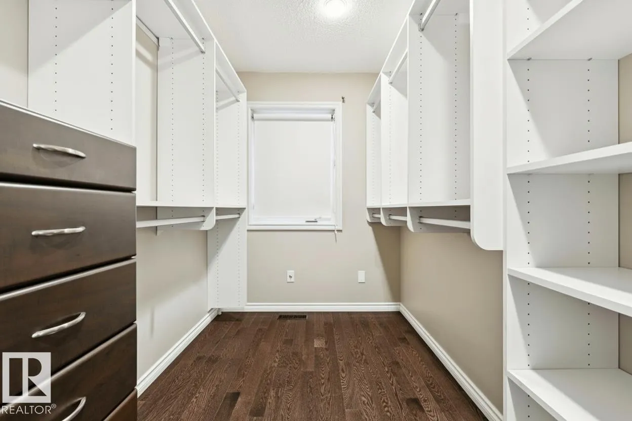 LOW MAINTENANCE | EXECUTIVE GATED COMMUNITY Located in Oleskiw just steps from the river valley, this home features over 3,500 sq.ft of finished living space. Featuring 5 bedrooms & 3.5 baths, the layout is ideal for those looking to right-size without compromising on space or functionality - perfect for hosting. You'll be impressed by the main floor's vaulted ceilings & hardwood floors that run throughout the formal living & dining areas. The gourmet kitchen features high-end appliances, quartz countertops & a breakfast nook. 2 bedrooms share a 5PC Jack&Jill bath, plus main floor laundry & powder room. Upstairs, the private primary suite includes a walk-in closet, electric fireplace, motorized blackout blinds & spa-inspired ensuite with jetted soaker tub. The fully finished basement offers a large rec room, wet bar, 2 bedrooms, 4PC bath & 2 flex rooms. Heated oversized garage w epoxy flooring, A/C & low-maintenance landscaping complete this move-in-ready home. PET FRIENDLY development. (id:27476)