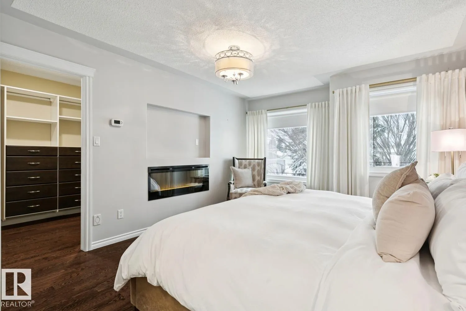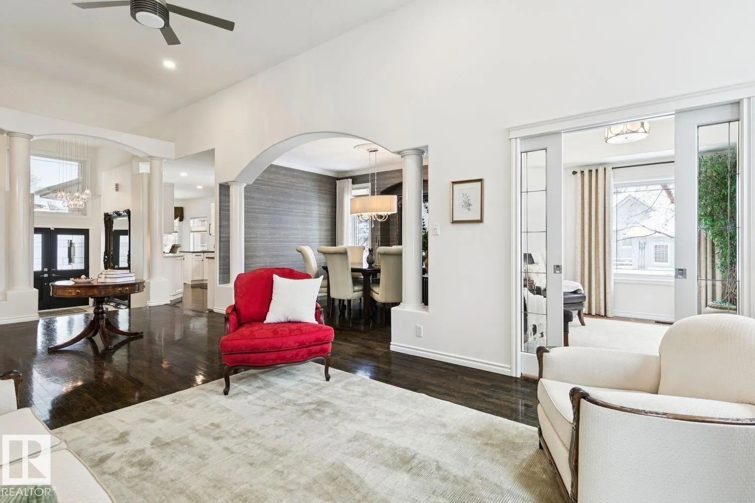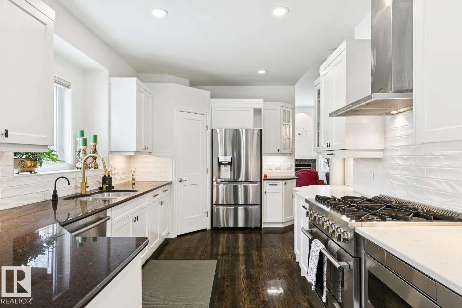 LOW MAINTENANCE | EXECUTIVE GATED COMMUNITY Located in Oleskiw just steps from the river valley, this home features over 3,500 sq.ft of finished living space. Featuring 5 bedrooms & 3.5 baths, the layout is ideal for those looking to right-size without compromising on space or functionality - perfect for hosting. You'll be impressed by the main floor's vaulted ceilings & hardwood floors that run throughout the formal living & dining areas. The gourmet kitchen features high-end appliances, quartz countertops & a breakfast nook. 2 bedrooms share a 5PC Jack&Jill bath, plus main floor laundry & powder room. Upstairs, the private primary suite includes a walk-in closet, electric fireplace, motorized blackout blinds & spa-inspired ensuite with jetted soaker tub. The fully finished basement offers a large rec room, wet bar, 2 bedrooms, 4PC bath & 2 flex rooms. Heated oversized garage w epoxy flooring, A/C & low-maintenance landscaping complete this move-in-ready home. PET FRIENDLY development. (id:27476)