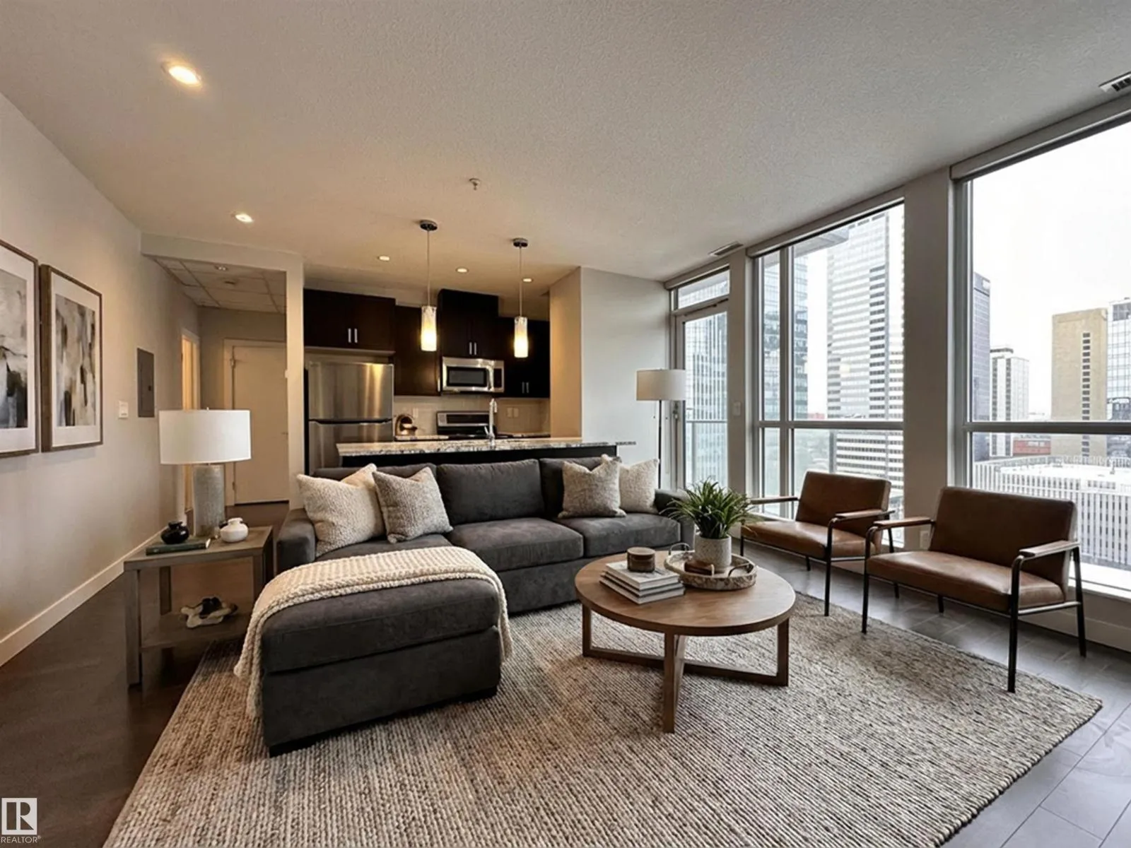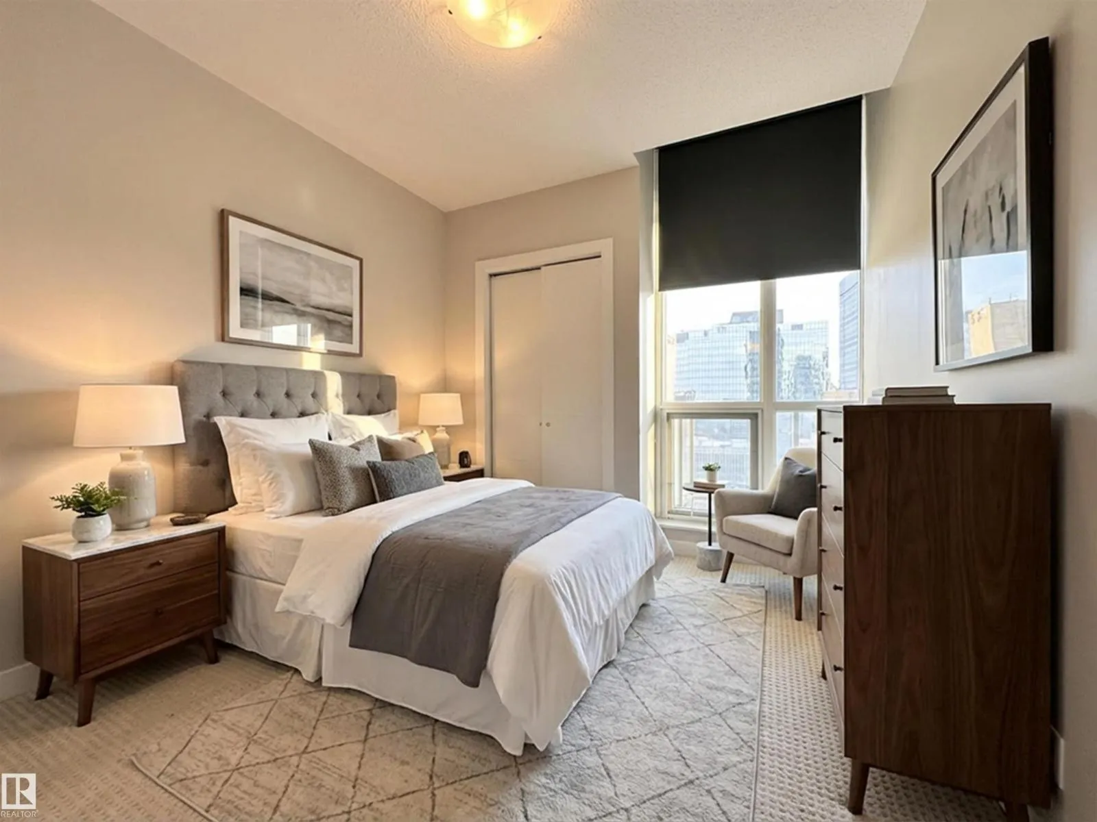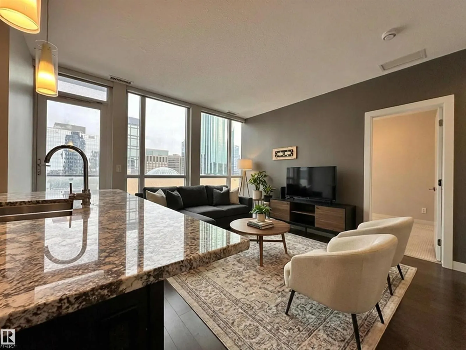 The Ultima, excellence in the Ice District. This 2 bedroom unit located on 12th floor; balcony with nice view of Rogers Place and Downtown Core. 1 titled underground parking with storage cage. 9' foot ceilings, Floor-to-ceiling windows, engineered hardwood floor. Great kitchen has an open island with granite countertops and stainless steel appliances. In suite laundry with large washer & dryer. Building amenities include exercise room, 10th floor patio w/hot tub and party room. Sun deck, lounge and wet bar outdoor seating. Great location, steps to all major amenities including Rogers Place. Disclaimer: Some photos are virtually staged. (id:27476)