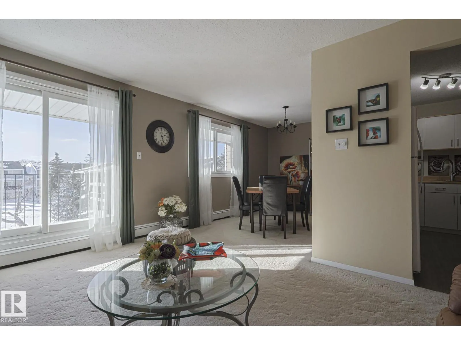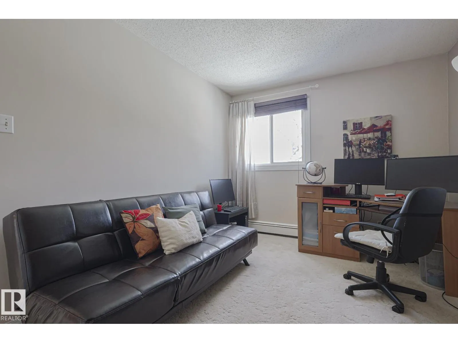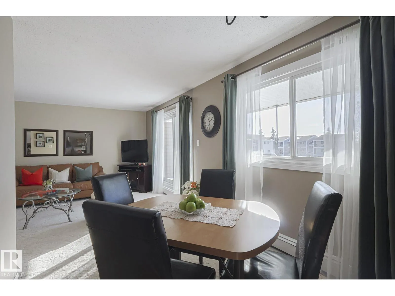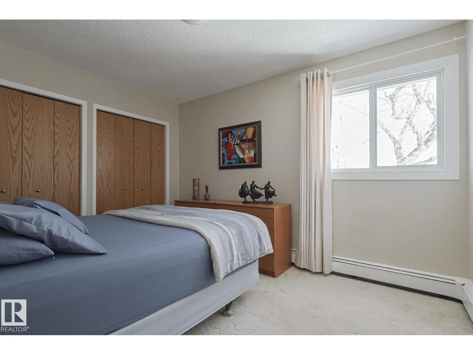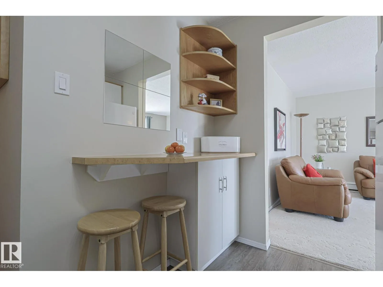 Welcome to this top-floor end unit ideally located steps from Millbourne Mall, where groceries, dining, medical services, everyday shopping, multiple bus stops and schools are all within easy walking distance. This well-cared-for home has been owner-occupied for 25 years and shows pride of ownership throughout. Two large bedrooms with wall-to-wall closets, a separate dining area, and excellent storage including a linen closet and large dedicated in suite storage closet. The well kept kitchen offers vinyl plank flooring, white cupboards with slide-out drawers, an added coffee bar area, and a Bosch dishwasherâan upgrade not found in most units. In-suite washer and dryer, a portable air conditioner, large west-facing balcony, east-facing bedrooms, and parking located on an end spot. The spacious bathroom features tile flooring, newer fixtures, sink, medicine cabinet, and extra storage. Non-smoking and pet-free. An ideal low maintenance place to call home! (id:27476)