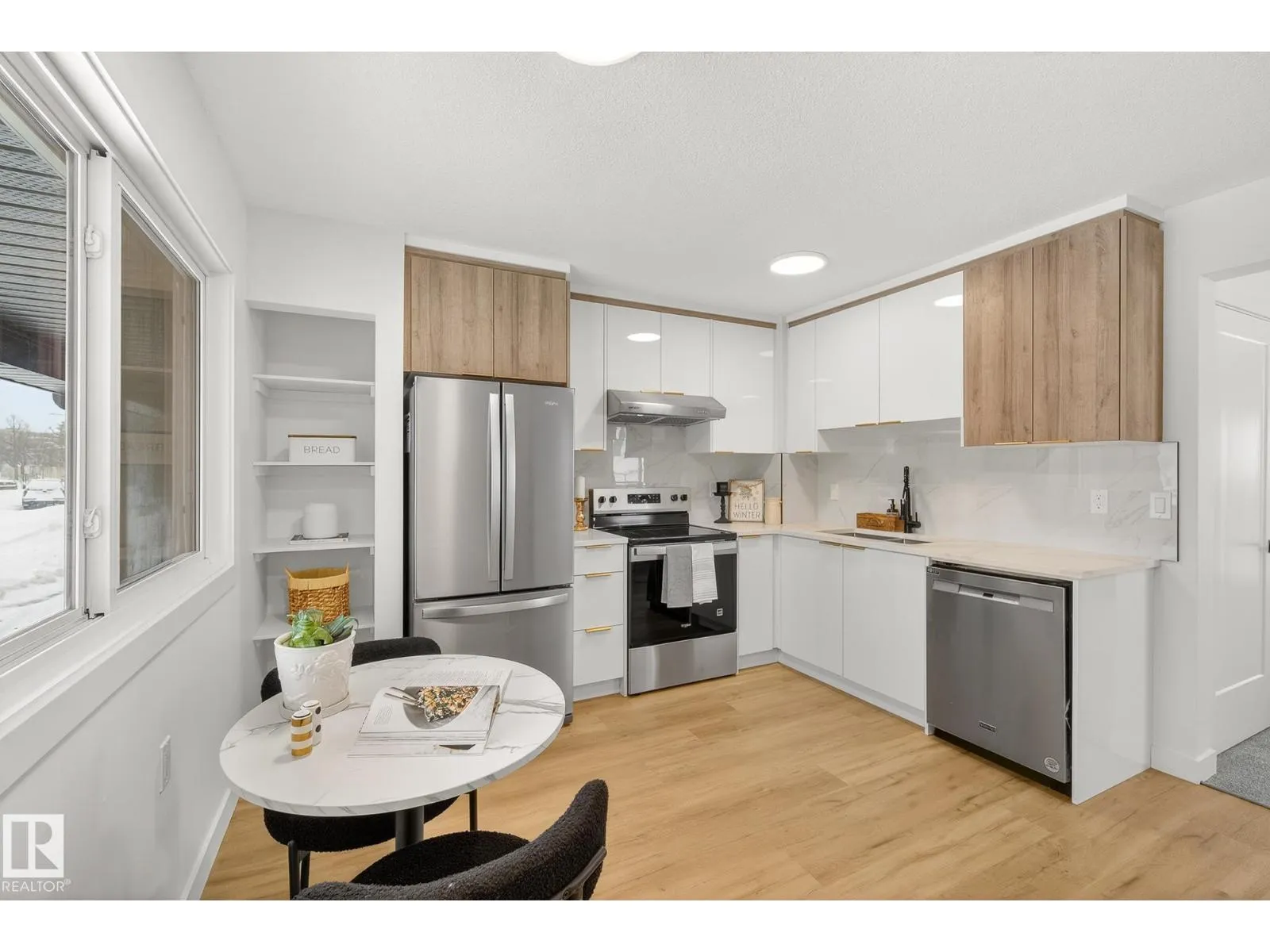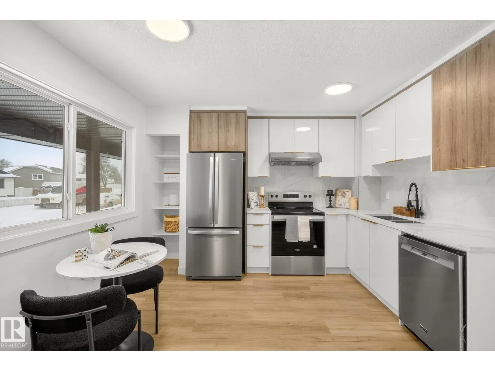 PERFECT for investor or first time home buyers!! This is it! This Beautiful fully renovated Corner Unit Townhouse steps to Schools/Shopping in the Community of Hairsine! This unit is perfection with a fresh coat of paint and new boards!!! The main floor boasts a fully renovated kitchen with new stainless steel appliances, luxury vinyl plank flooring, Modern cabinetry, quartz countertops and plumbing/lighting fixtures and adjacent 2 piece bathroom. Further this Main Floor Living Area provides great space for Dining and a Beautiful feature wall in the newly carpeted living room. Large patio slider door leads to a spacious fully fenced back yard. The second floor offers a large Primary Bedroom with massive closet space!! Adjacent fully renovated 4 piece bath with quartz counter top and two more bedrooms! The lower level of the home provides a large fully finished living space!!! Quick access to the Henday and backing and siding on green space with low condo fees!! An absolute must see!! (id:27476)