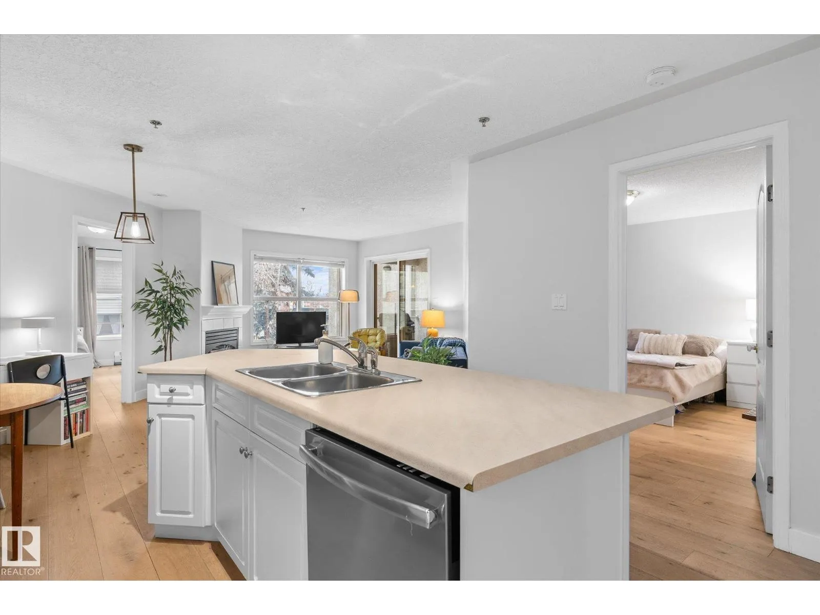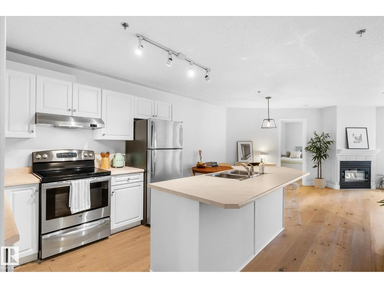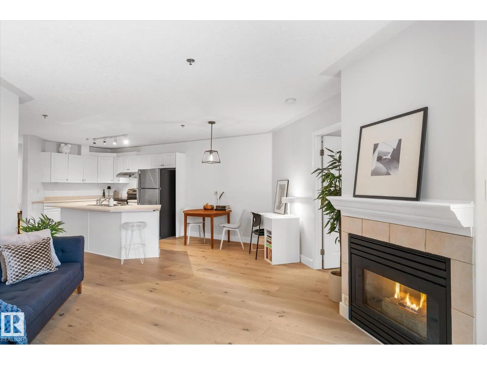 Central location where you can walk to everything in Oliver! Extremely well maintained bright and spacious unit with balcony. The living space welcomes you in with updated flooring. Tons of counter space in the kitchen highlighted by white cabinetry with ample counter and storage space. Nicely equipped with stainless steel appliances. The living room boasts a gas burning fireplace and patio doors that lead to a large covered patio. Enjoy a sunny or rainy day here! The master bedroom also features a walk in closet and 3 piece ensuite. The second bedroom has ample light with two windows. There is a full 4 piece bathroom and in-suite laundry with some storage. The underground parking stall has a storage locker in front and there are also 2 visitor underground stalls. Excellent location close to amenities and transit. Easy access to Brewery District, MacEwan University, public transportation, 124 street restaurants and galleries, the River Valley, Oliver Pool, Paul Kane Park and shopping. (id:27476)