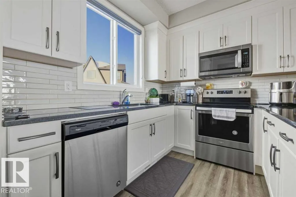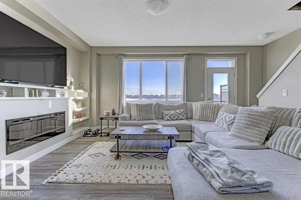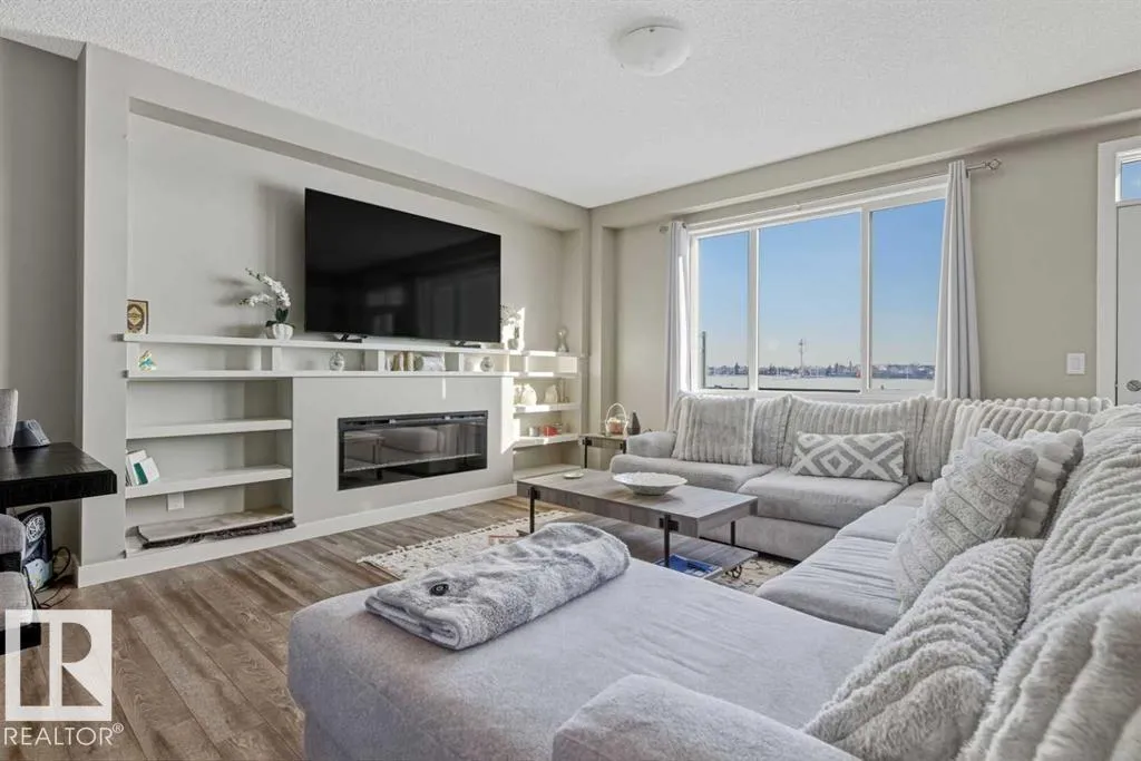 Fantastic lake view at the front!!!! Welcome to this townhouse, sitting in SCHONSEE , one of the sought-after communities in North Edmonton. There is a private balcony on the 2nd floor, facing the beautiful lake view. Great condition of more than 1400 sq.ft. living space with lots of upgrades. This townhouse provides 9-ft ceiling on 2nd level, electrical fireplace and wide-open living room. There are 3 spacious bedrooms on the 3rd floor, including a 3 piece ENSUITE primary room. It also features with a 4-piece bathroom on the top level. Laundry room is independent for convenience. This home provides a double attached garage with quiet , peaceful environment. It is also close to all amenities, transits, schools and shoppings. Don't miss a chance to see and own it! (id:27476)