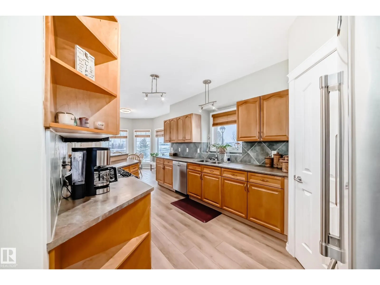 WALKOUT BUNGALOW !!! One of The Largest Fenced Lots over 10, 700 sq ft. Gorgeous Landscape, Fully Fin Walkout Bsmt offers best living in desired Glastonbury. Located next to lake w walking trails at hand. Total of 5 spacious bedrooms, 3 full 4 piece washrooms, this home provides exceptional flexibility for growing families or multi-generational living. The main floor showcases an open-concept layout with abundant of natural light, a well-appointed kitchen featuring stainless appliances has seamless flow into the dining & living areas. A cozy gas fireplace anchors the living room, creating the perfect atmosphere for relaxing evenings. Main floor den flex area & Laundry are super. The fully dev walkout level expands your living options w 3 bedrooms, a generous recreation area, etc. Direct access to the backyard features a covered deck area to enjoy all types of weatherâideal for entertaining, enjoying Edmontonâs beautiful seasons. Cul de sac front w rec parking, Double Att truck size Garage, Must View !! (id:27476)
