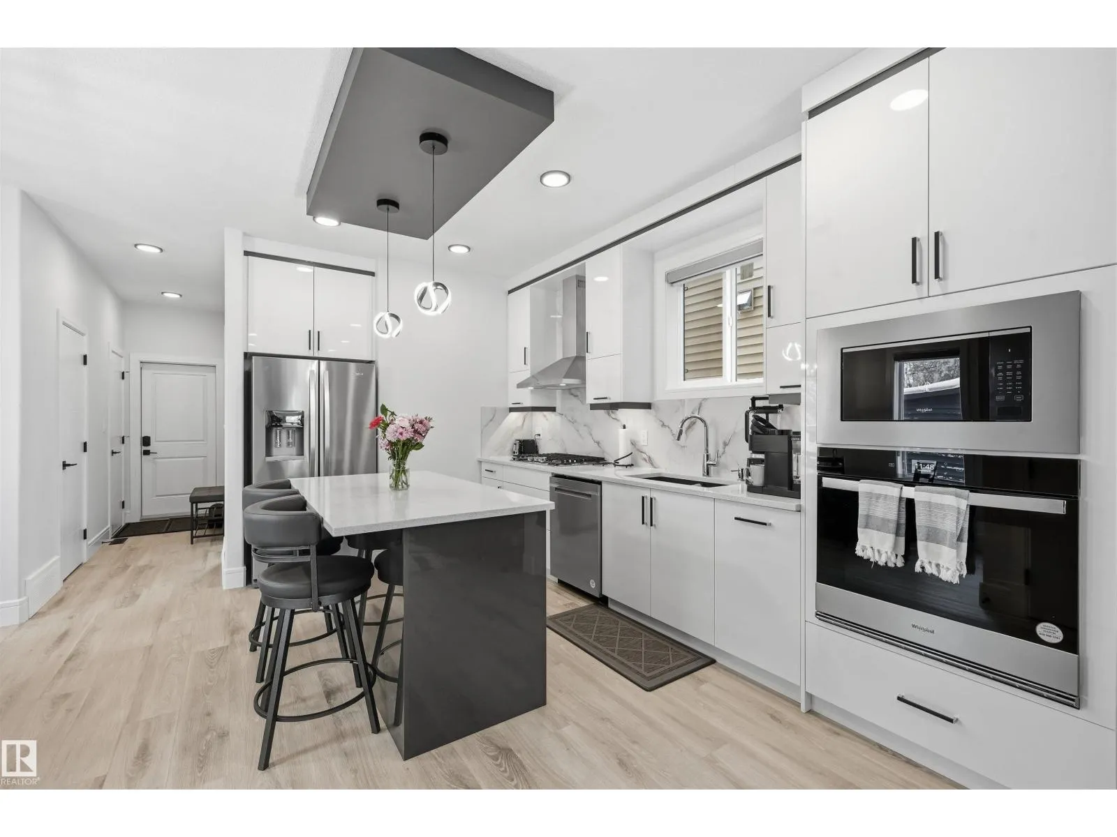 Better than NEW- turn key w/a LEGAL SUITE to help w/the mortgage or perfect for a relative or a live in nanny. Quiet street steps to the park in a mature well located neighborhood. Barely lived in, modern open concept plan emphasizes comfort & lifestyle. 2300 sf ttl living space. Sleek Chefâs Kitchen opens to the living & dining area. S/S appliances incl a gas range, wall oven & counter depth cabinetry. Quality epitomized, NOT your usual average built 2 sty w/attention to detail & craftsmanship w/the best materials elevating this homes uniqueness. High ceilings incl 9â upstairs & AC. Lots of natural light & contemporary color tones. Upstairs are 3 bedrooms, 2 baths incl a spa like ensuite. Lower level one bedroom suite is light & bright w/a gorgeous kitchen. Quality finished landscaping incl front artificial turf, poured sidewalks & a 23x21 garage. Newer fence. Conveniently located to the Misericordia Hospital, West Edmonton Mall, Downtown & the U of A. Lots of services, restaurants & shopping close by (id:27476)
