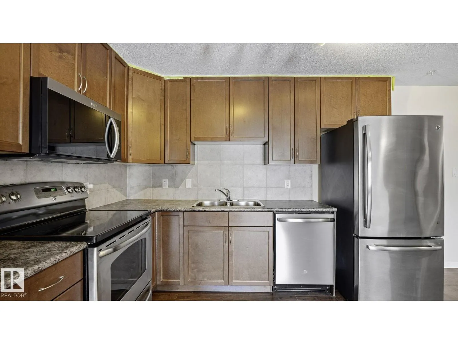 Welcome to this cozy, modern 2-bedroom, 2-bath condo in the heart of Terwillegar! Offering 879 sq ft of bright, open-concept living space, this freshly painted home is perfect for first-time buyers or young families. Durable laminate flooring flows throughout the main areas, creating a warm and inviting feel. The kitchen opens seamlessly to the dining and living spaceâideal for everyday living and entertaining. Enjoy the sunny west-facing balcony, perfect for evening relaxation. The spacious primary bedroom features its own private bath, while the second bedroom is great for kids, guests, or a home office. Additional highlights include in-suite laundry, two parking stalls, and access to a well-maintained building with a fitness room. Conveniently located close to shopping, schools, parks, and quick highway access, this move-in-ready condo offers comfort, style, and everyday convenience in a fantastic family-friendly community. (id:27476)