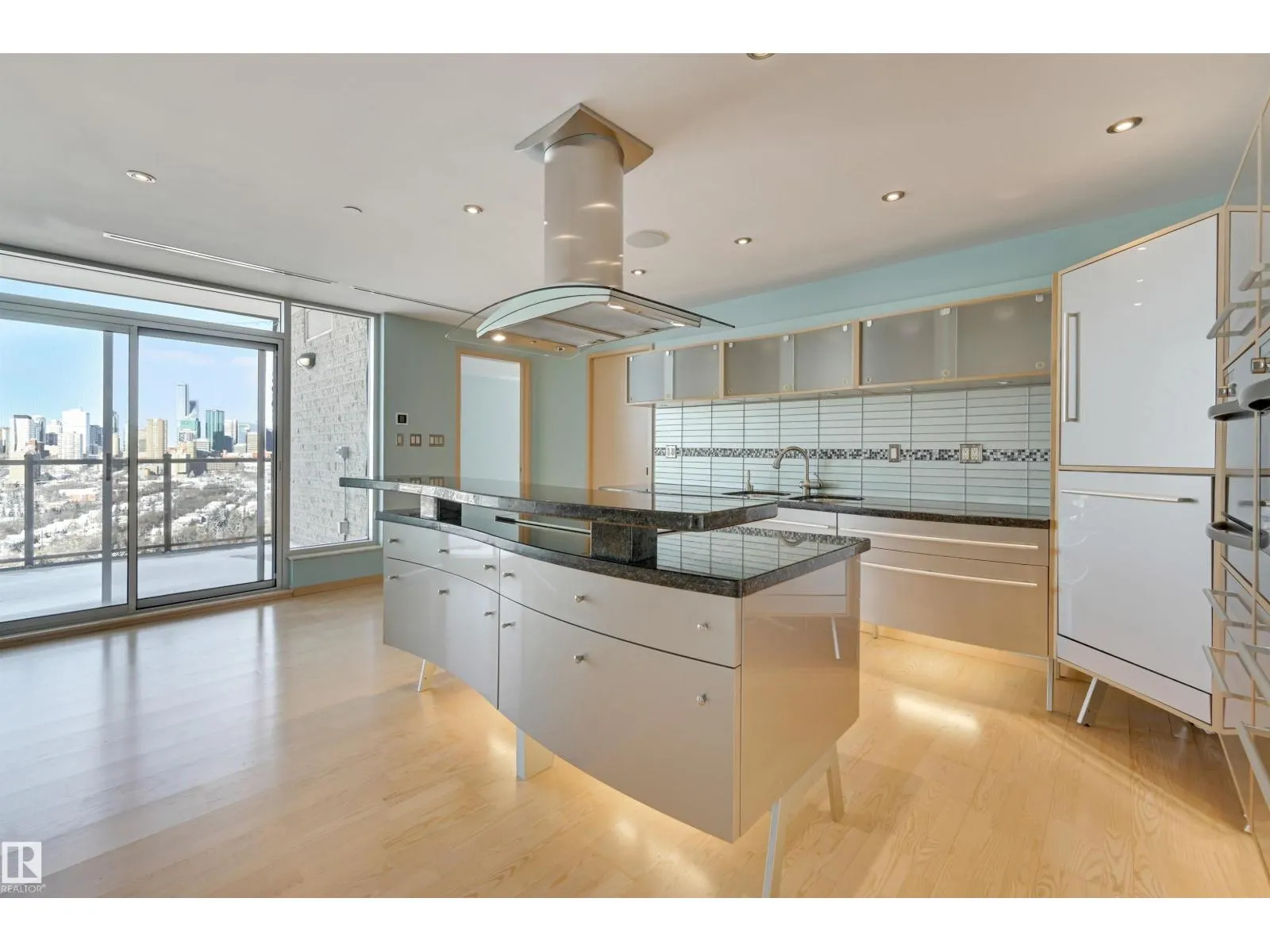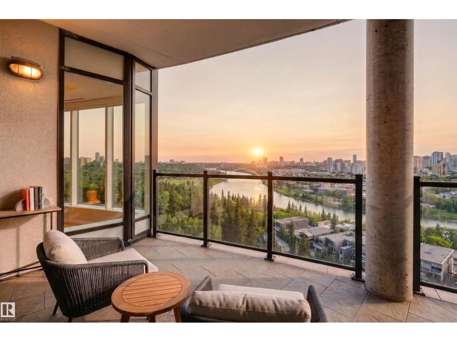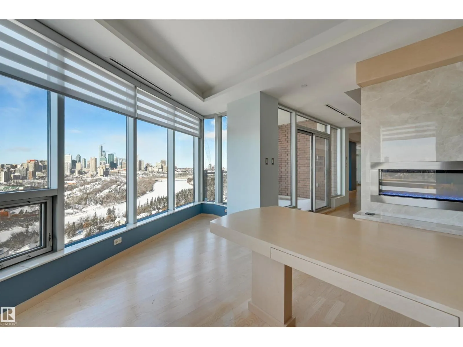 Situated in the prestigious One River Park, this 2,772 sq. ft. residence offers an elegant lifestyle immersed in spectacular River Valley and downtown views. The experience begins as your private elevator opens into a sprawling living space suitable for grand-scale entertaining. The sleek Snaidero kitchen features granite counters and Miele appliances. Host in the spacious dining room, complete with a custom bar and dual Sub-Zero wine fridges, or retreat to one of two balconies to take in the jaw-dropping skyline. Each of the three bedrooms is a private sanctuary with a recently renovated ensuite; the primary suite features his-and-her closets with high-end built-ins. A luxurious office and media room add to the sophisticated layout. This immaculate suite is rounded out by a whole-home sound system and a rare, private 4-car garage plus a 5th stall and storage room. Enjoy an on site concierge, guest suite, and fitness studio. A true one-of-a-kind showpiece overlooking the cityâs finest views. (id:27476)